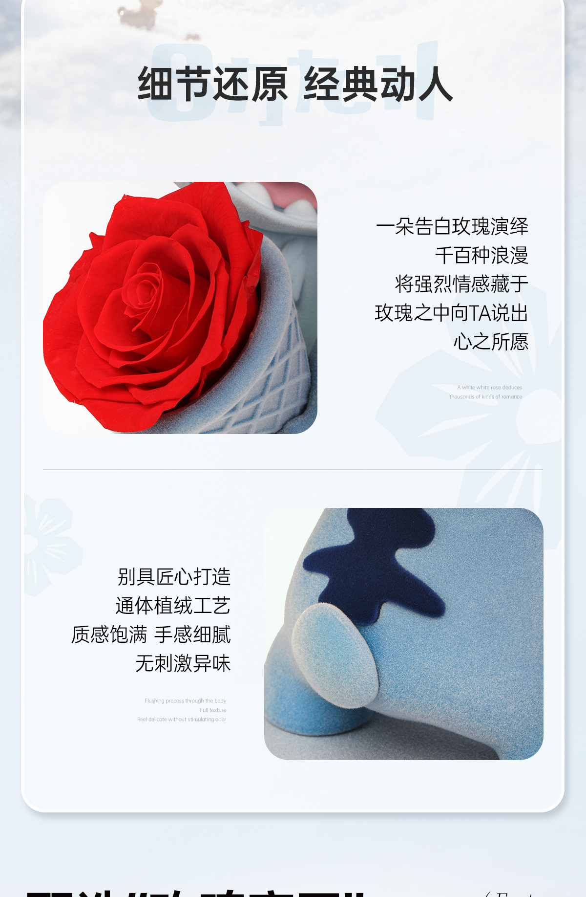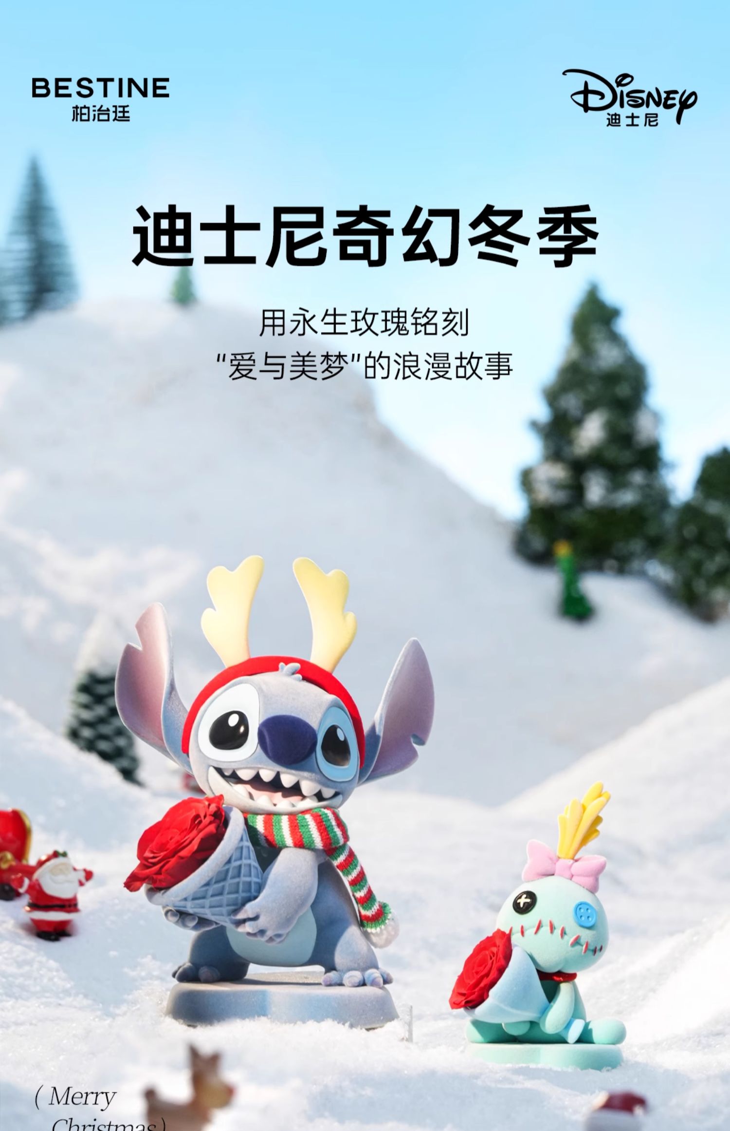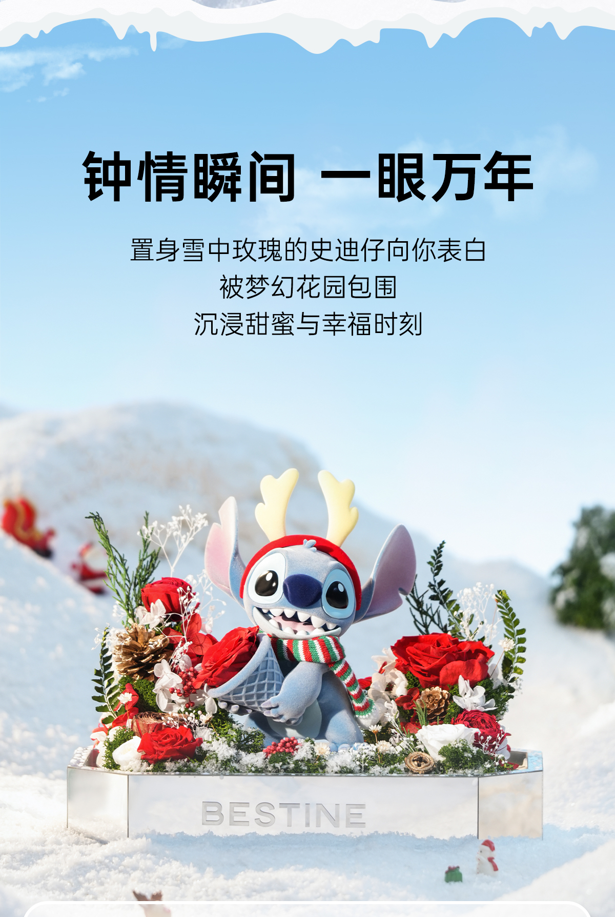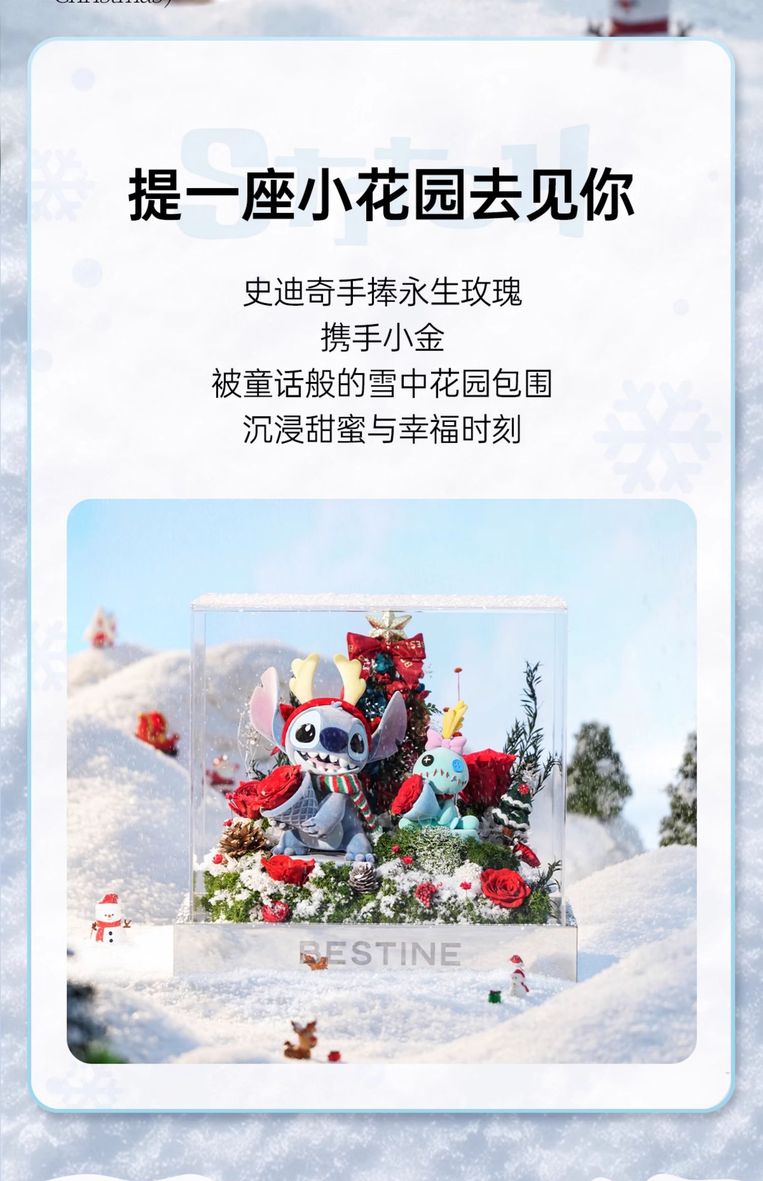 VBEINGS花语 圣诞礼物迪士尼史迪仔永生花史迪奇玫瑰花摆件花束生日礼物