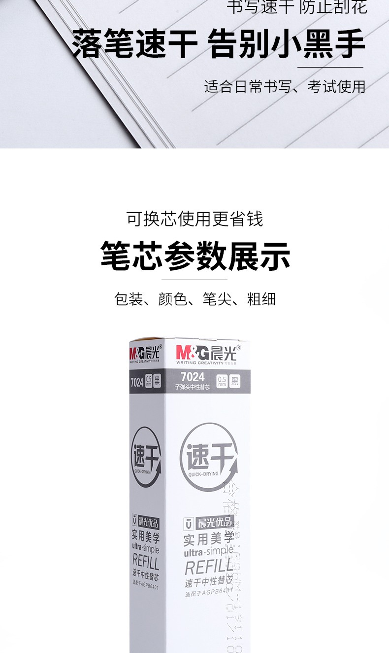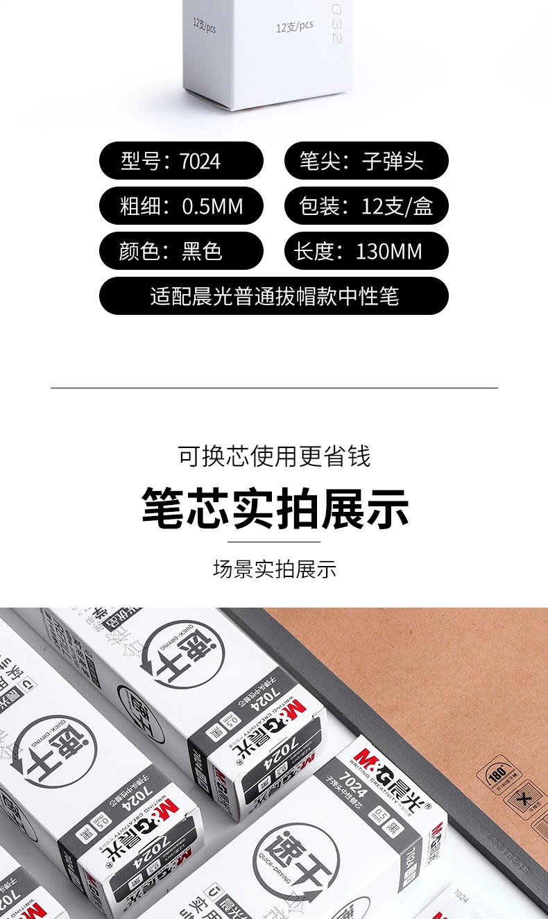 晨光速干中性笔替芯7024A/黑色