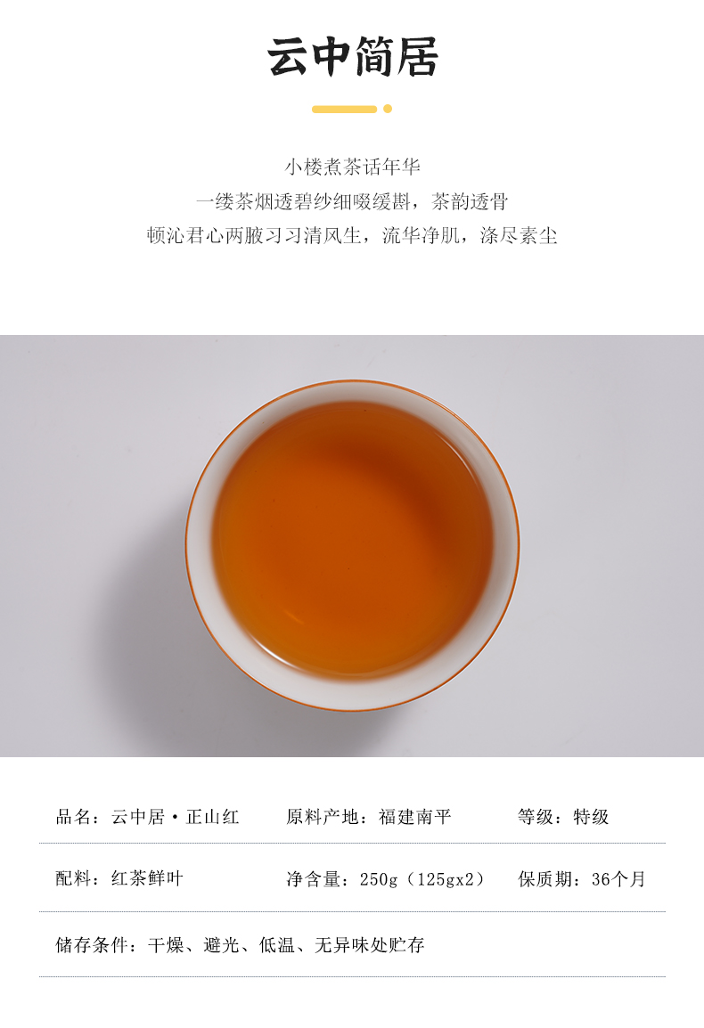 云中居云醉系列特级正山红茶礼盒装250g(125g×2)