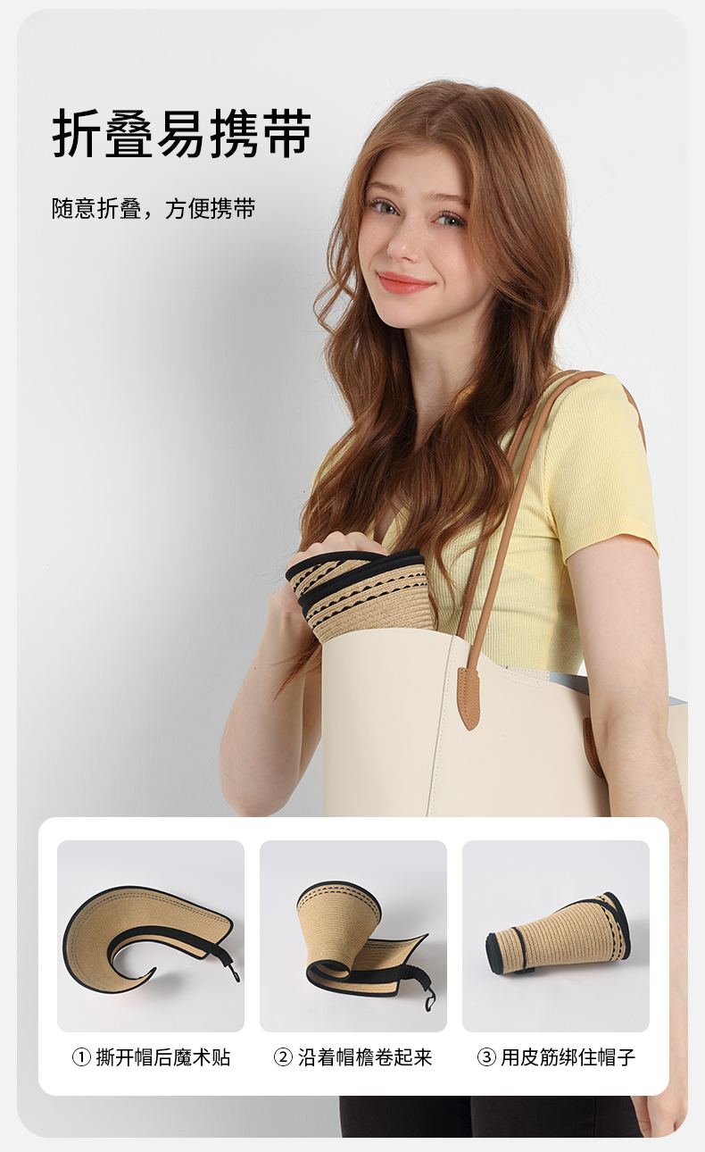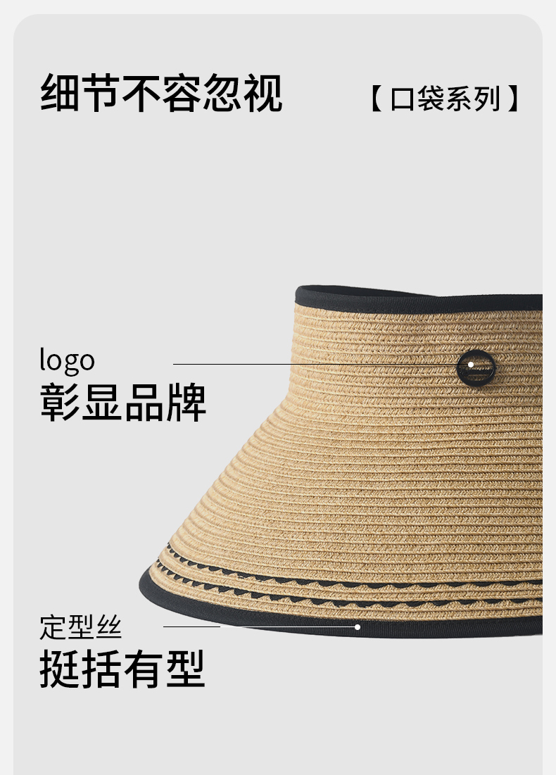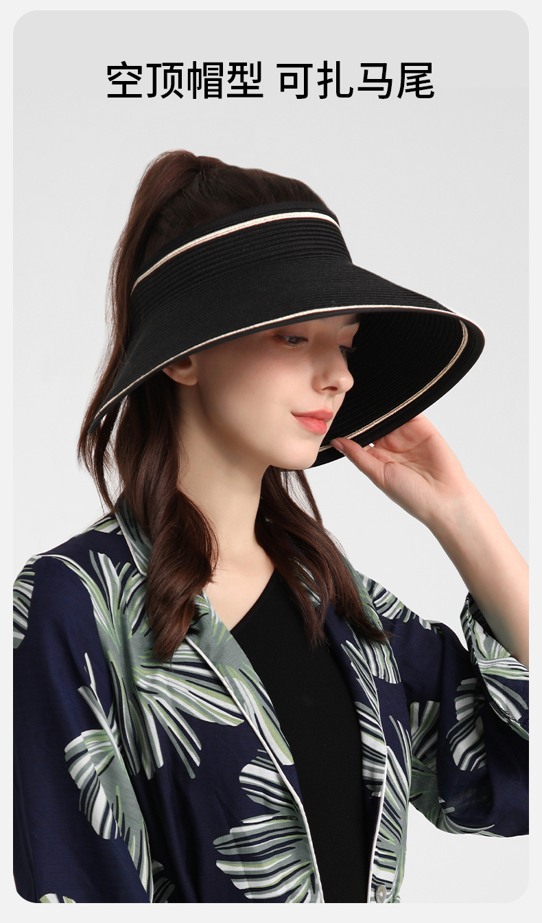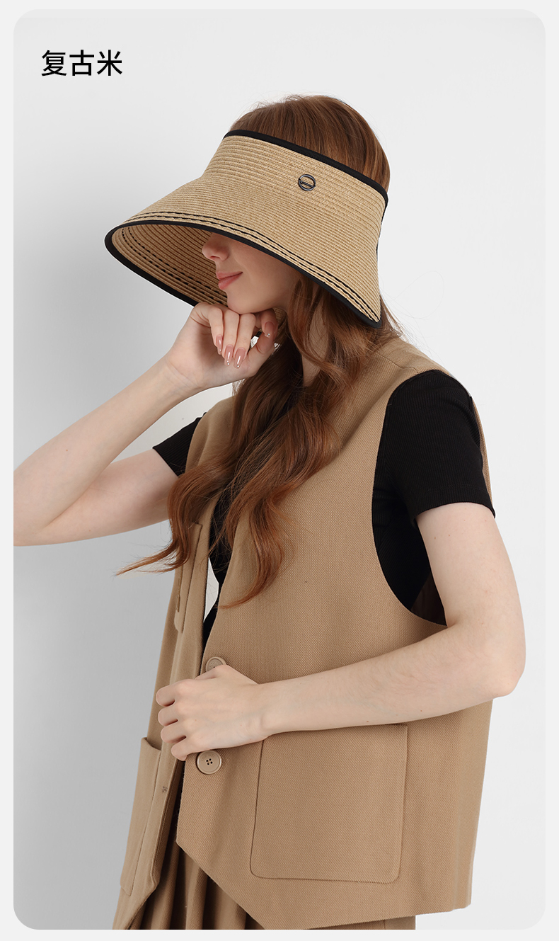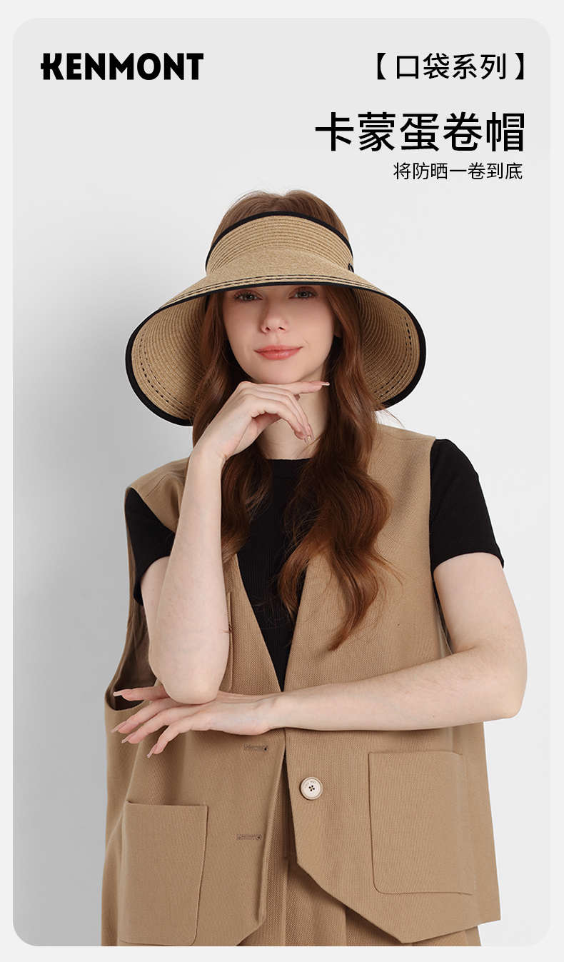 乔妈专属 卡蒙赫本度假风花边法式空顶防晒大檐帽轻薄可巻折