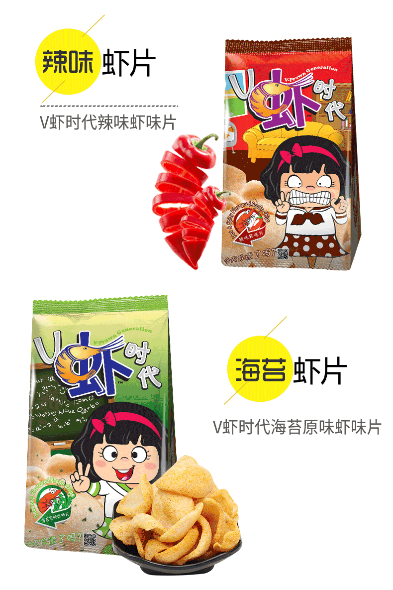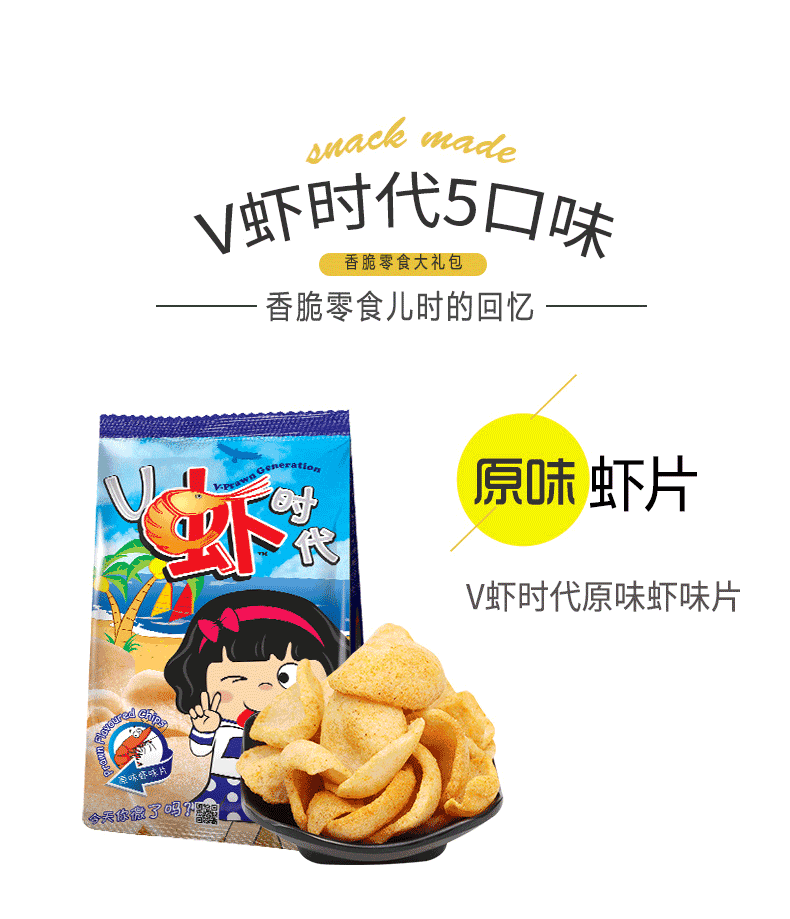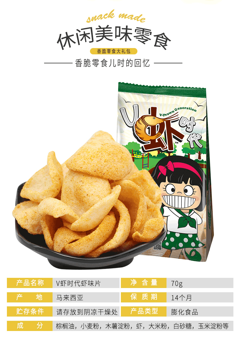 V虾时代 海苔味虾味片70g/袋 膨化零食