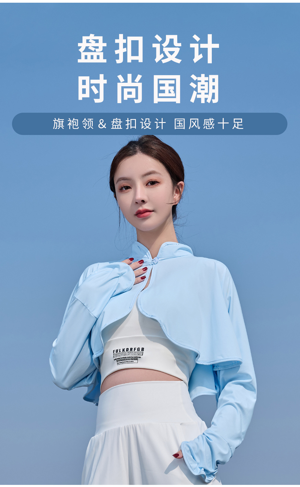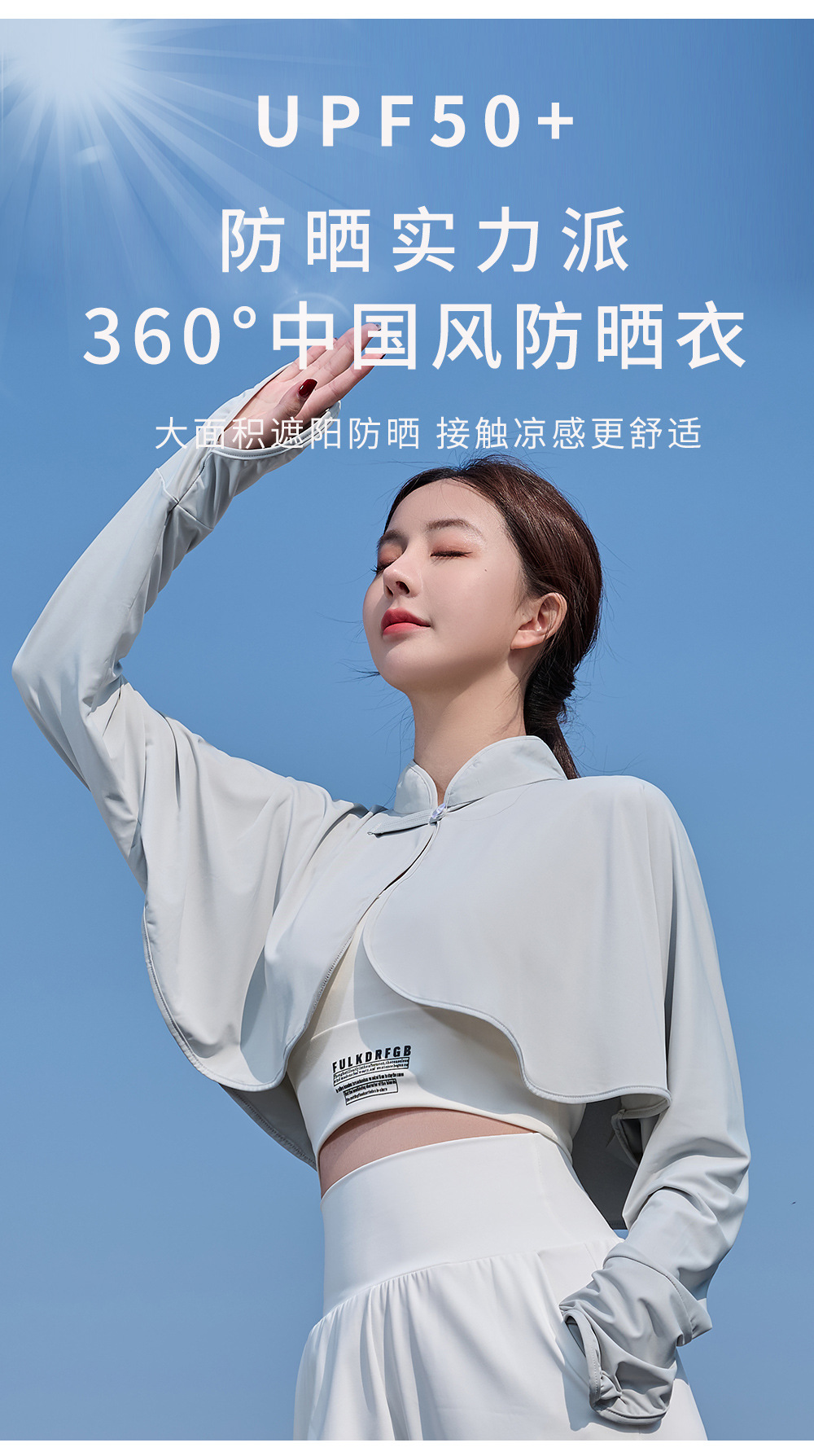 中国风披肩防晒衣女夏季锦纶冰丝凉感透气防紫外线薄款外套防晒服