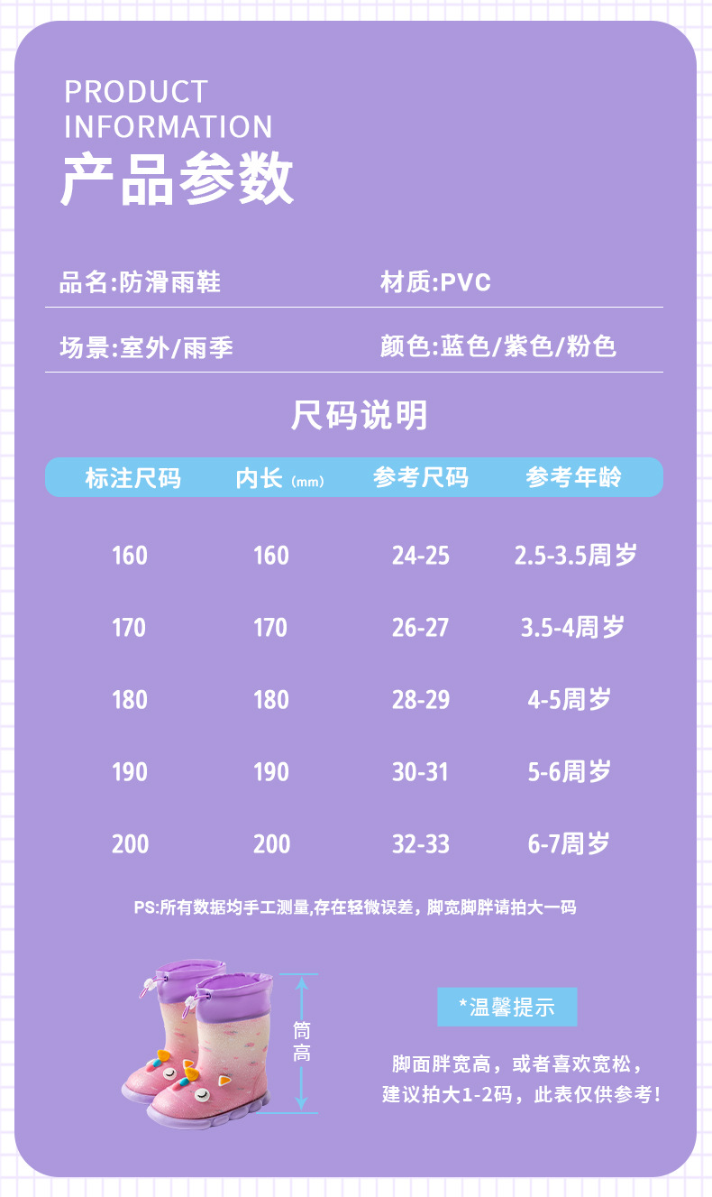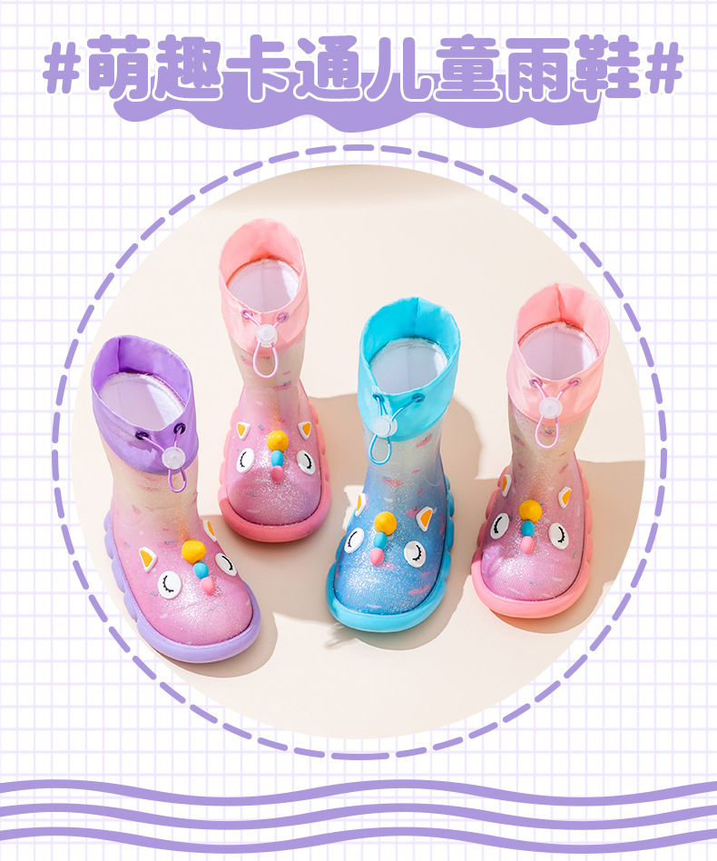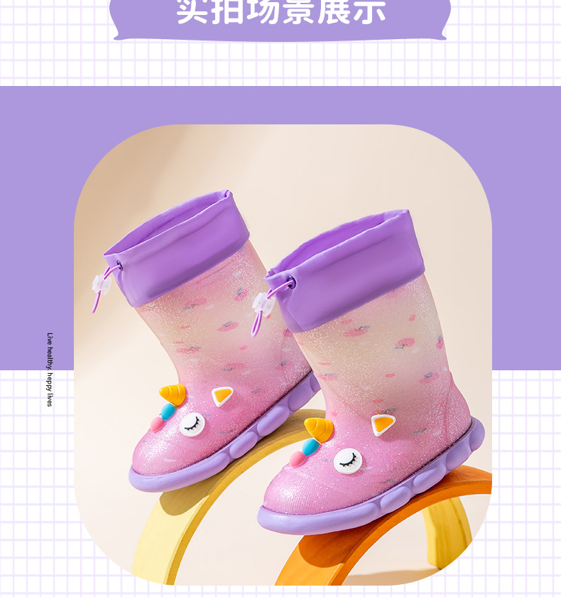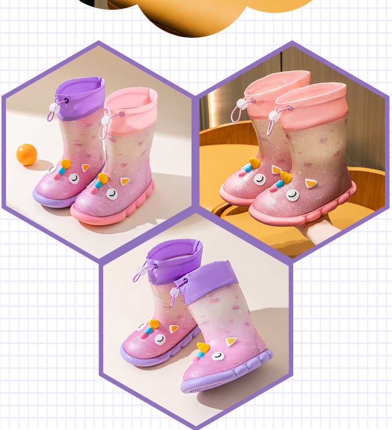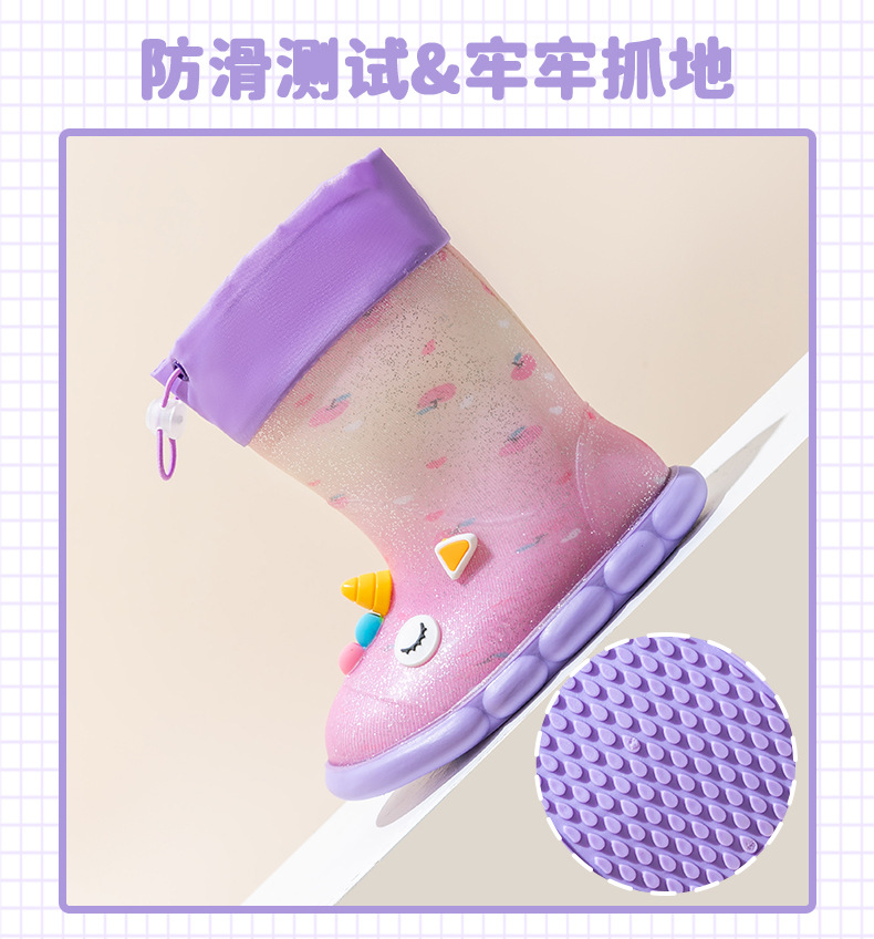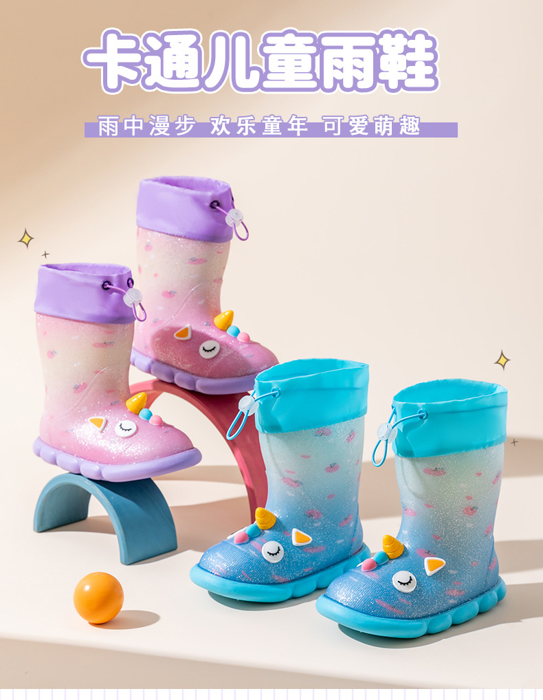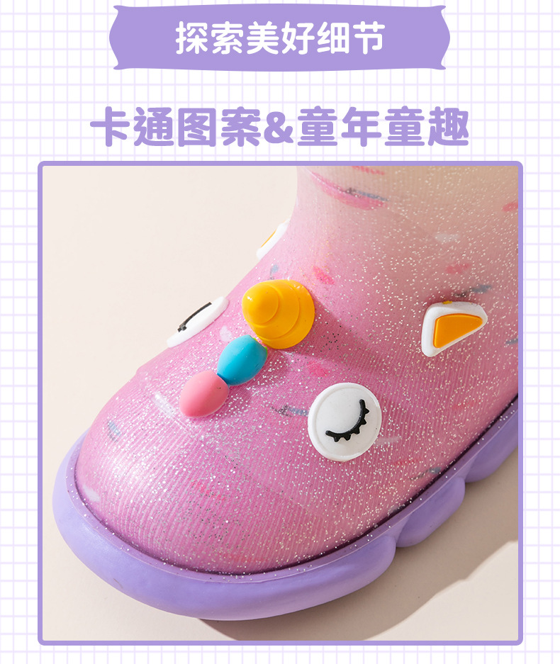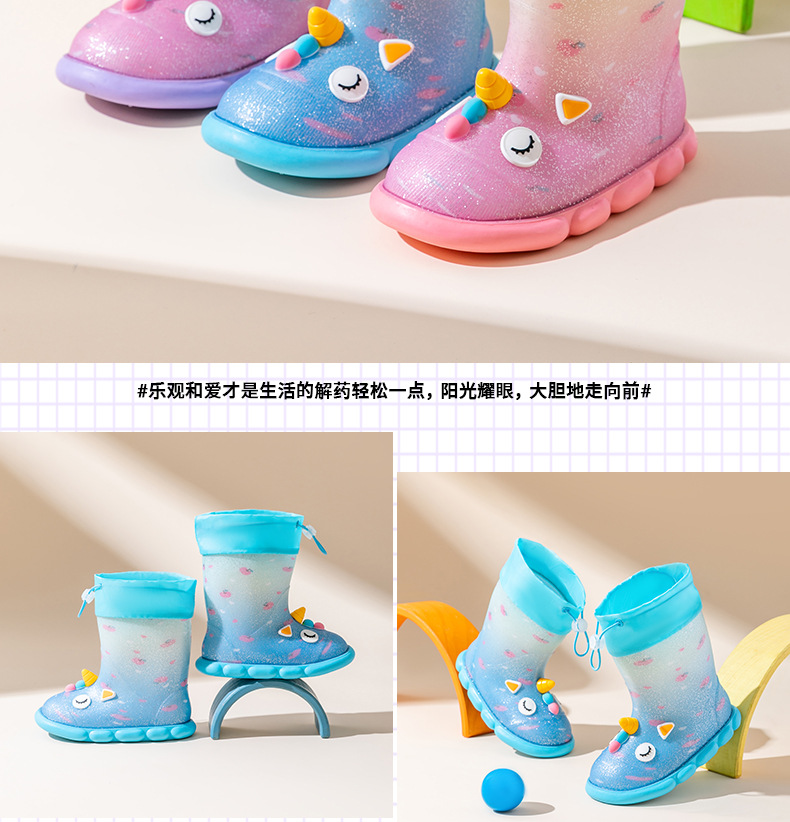 【春季上新雨鞋49.9元/双】卡通独角兽软底防水雨靴儿童户外雨鞋女童套鞋小学生束口防滑水鞋聚