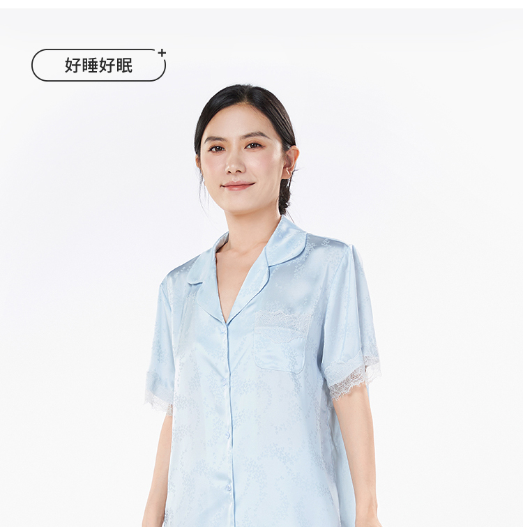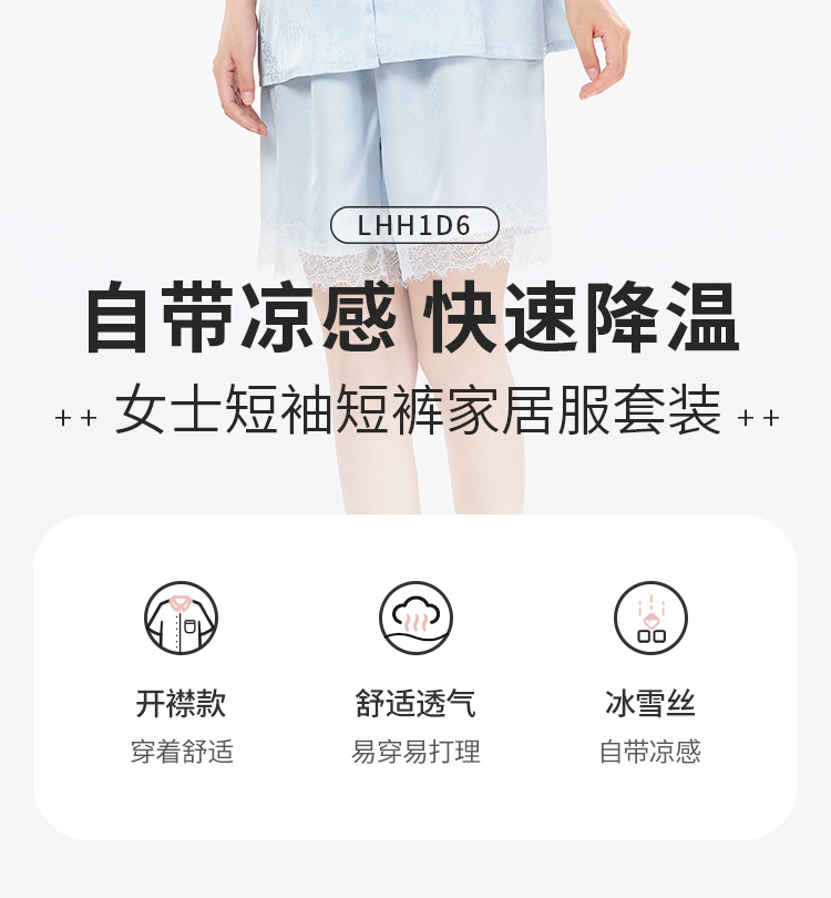 都市丽人好睡好眠女士丝质短袖套装薄冰雪丝提花短袖类LHH1D6