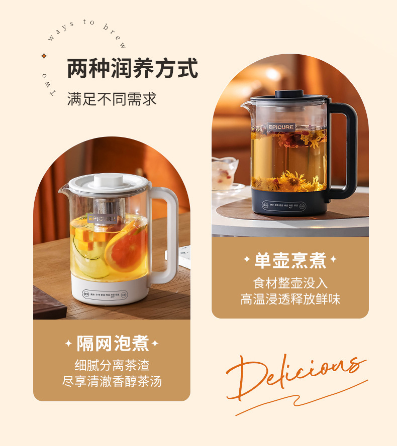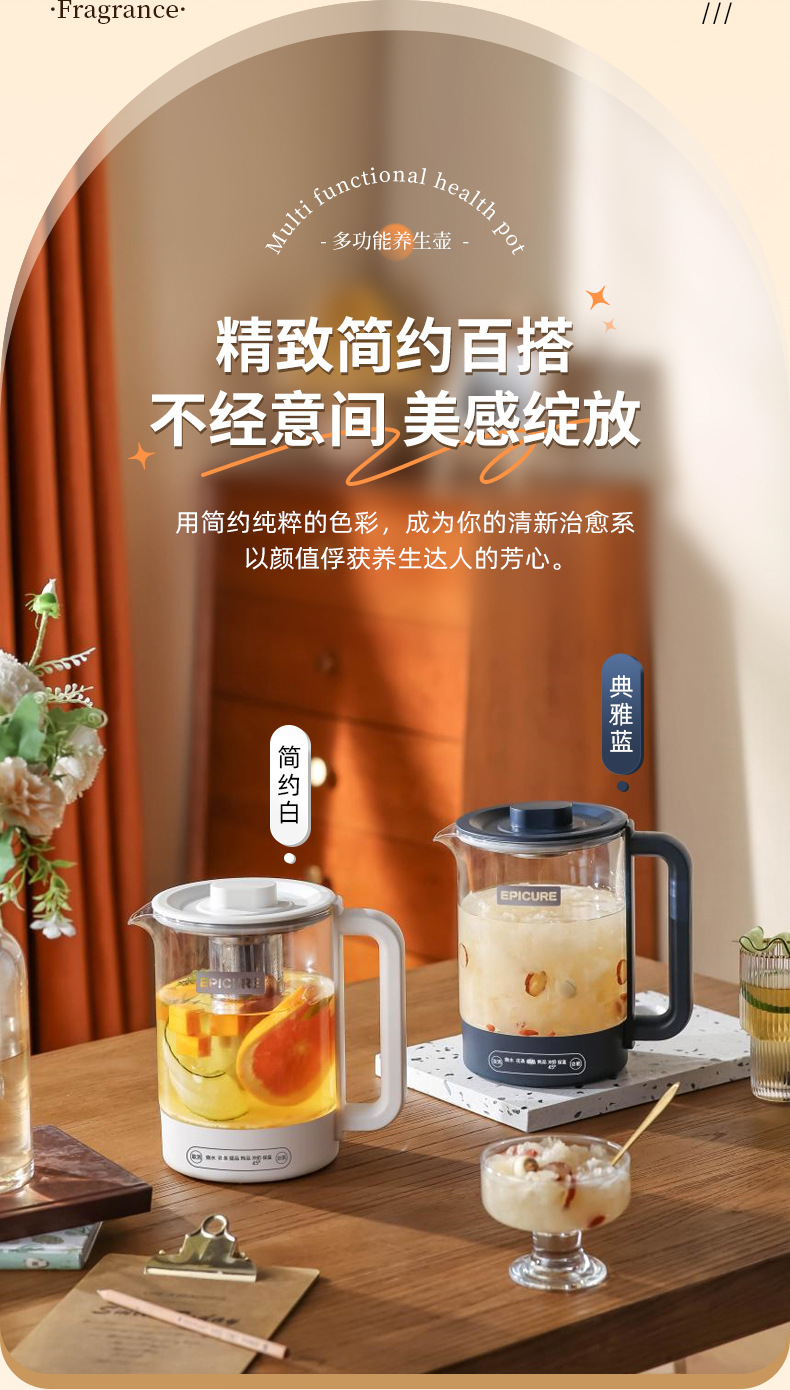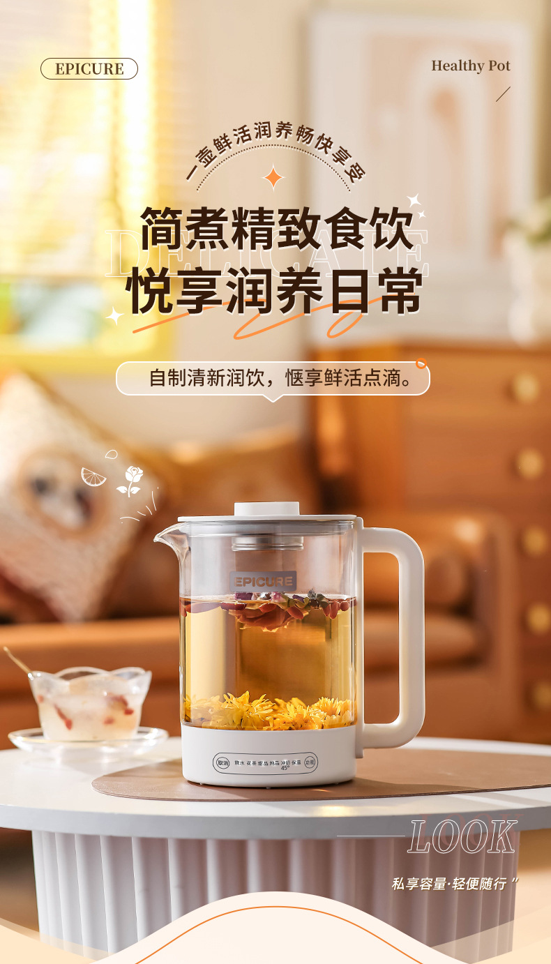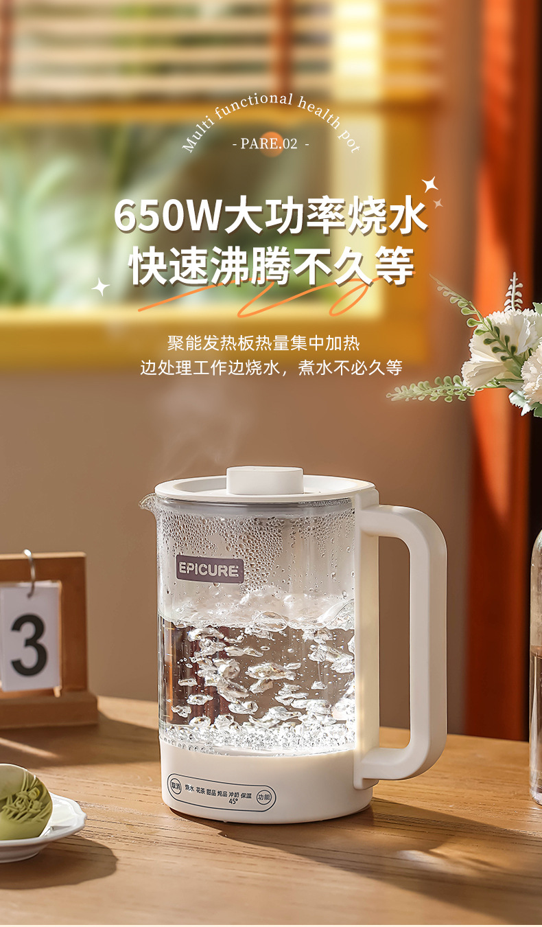 【精选】morningso多功能智能电热玻璃养生壶1.5L 家用会客 聚冷聚热 不易破裂
