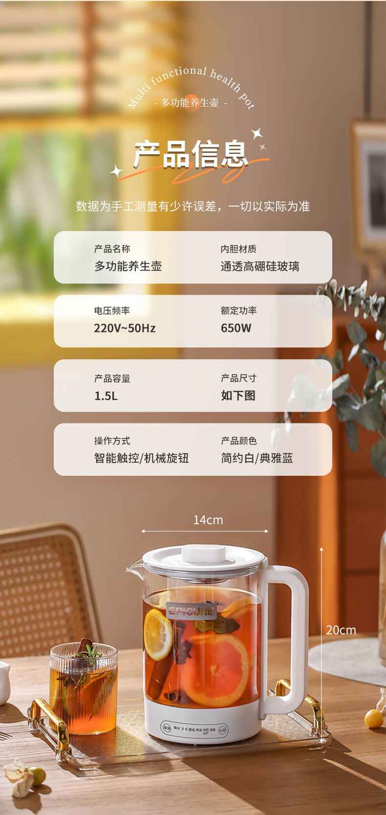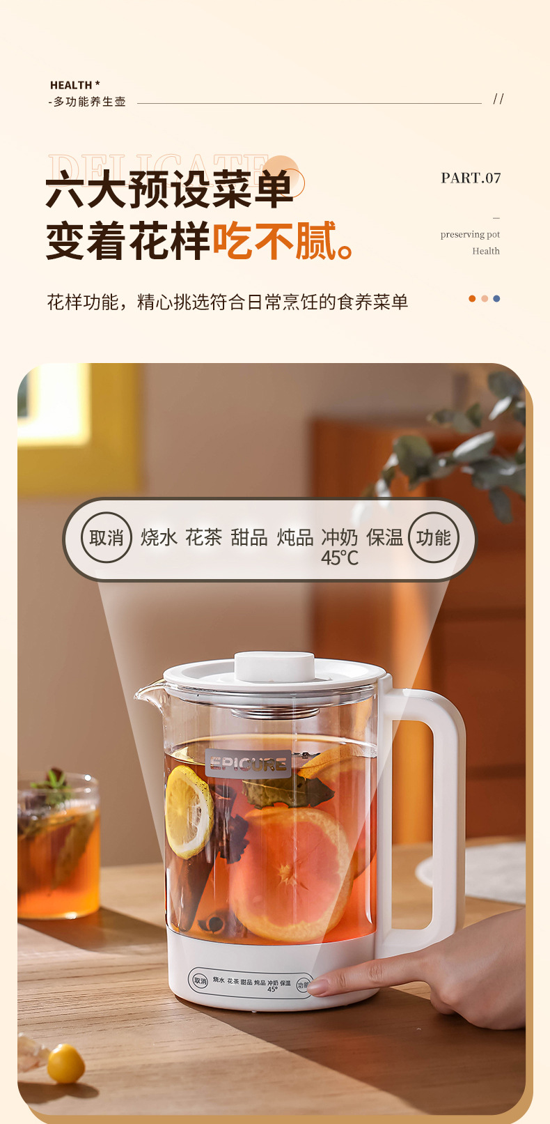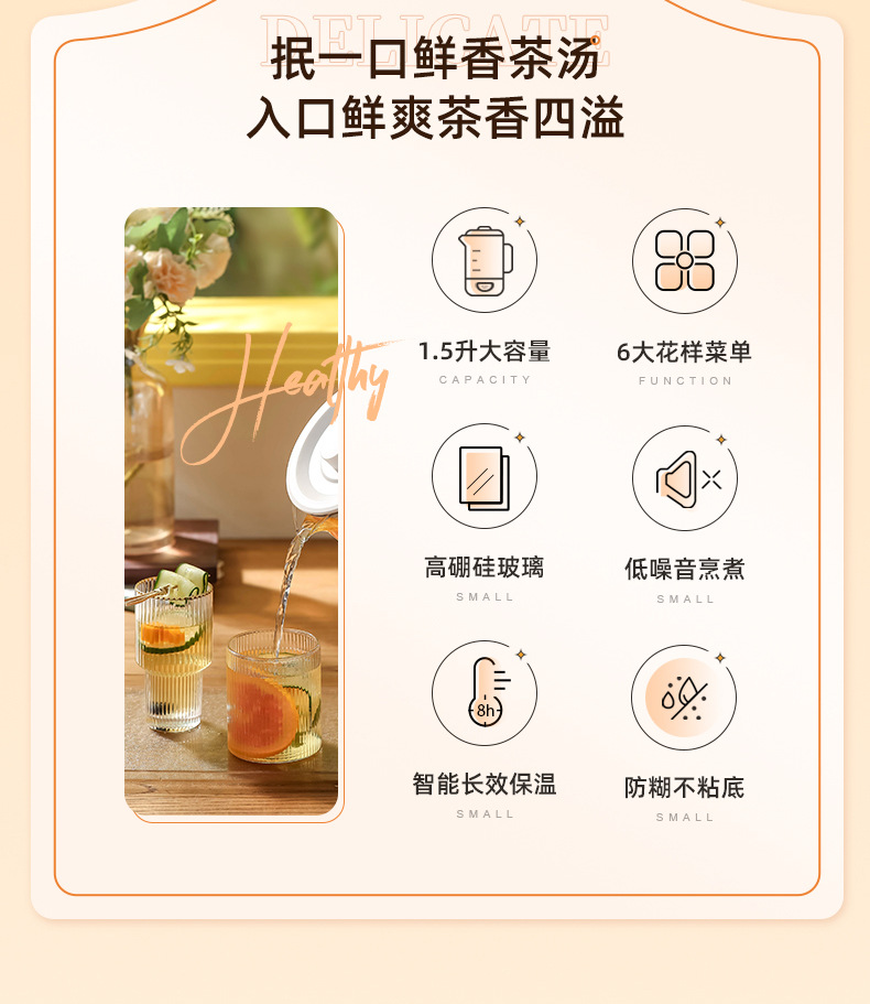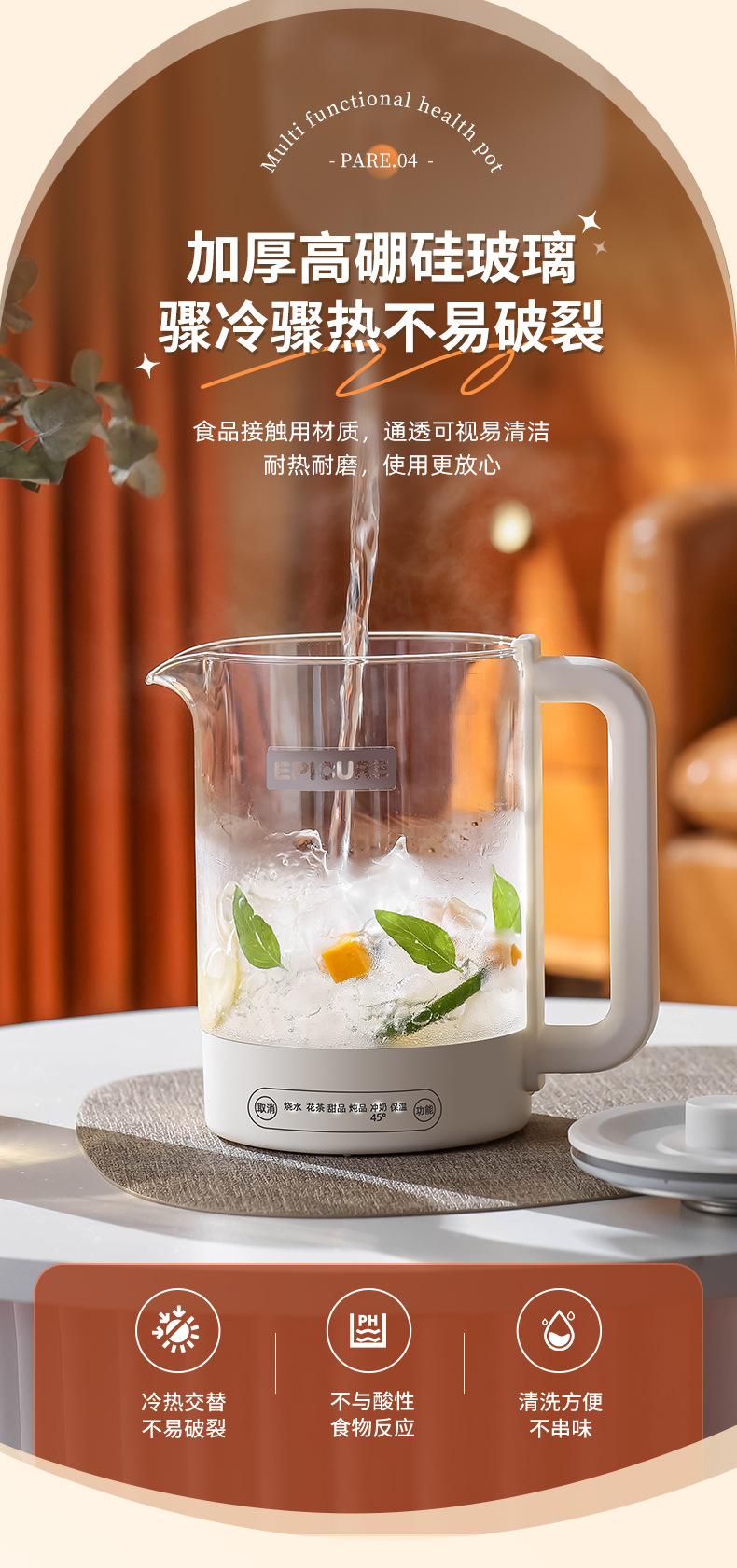 【精选】morningso多功能智能电热玻璃养生壶1.5L 家用会客 聚冷聚热 不易破裂