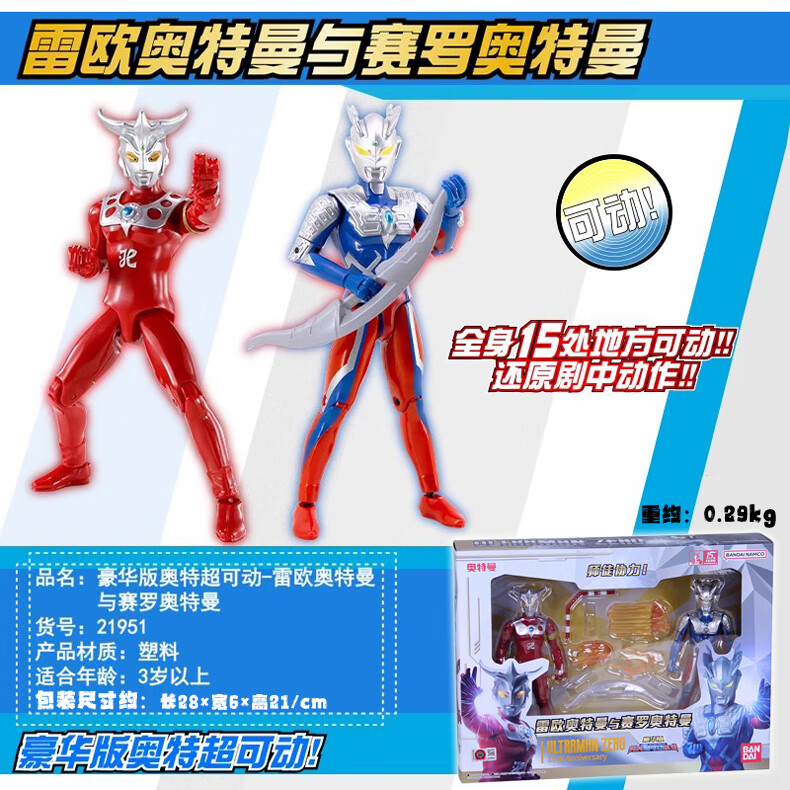 万代奥特曼21951 豪华版奥特超可动系列 雷欧奥特曼与赛罗奥特曼