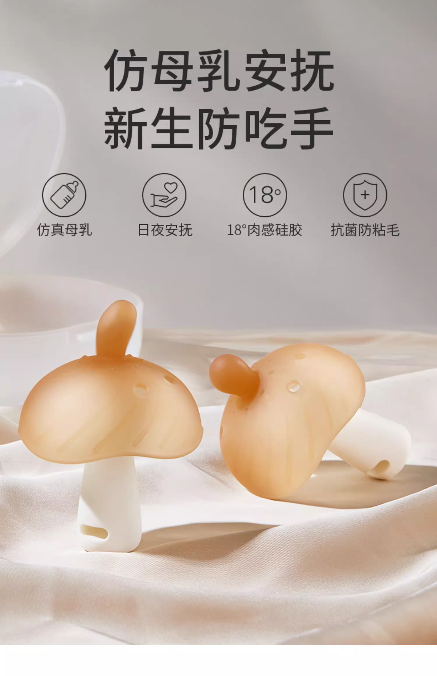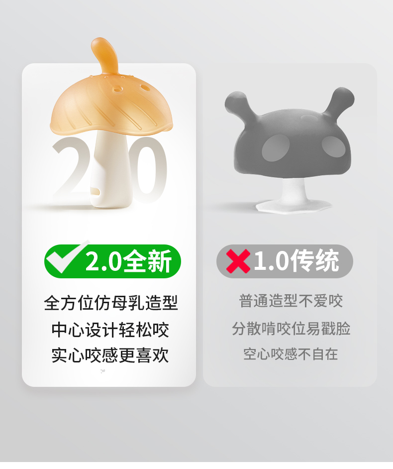 科巢牙胶婴儿小月龄防吃手蘑菇口欲期牙咬胶磨牙棒安抚宝宝0一1岁6月