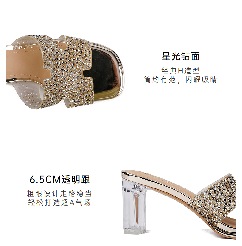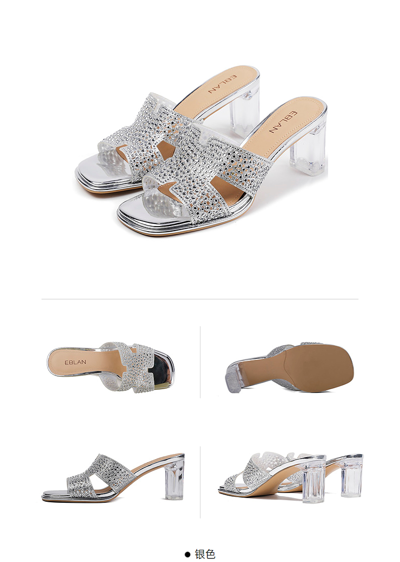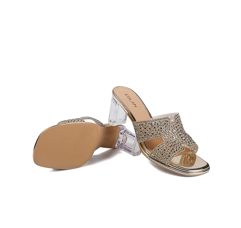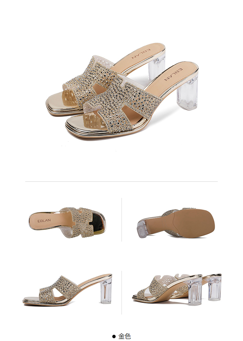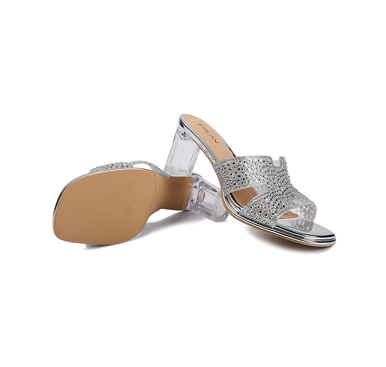 伊伴夏季H造型星光钻面凉拖透明高跟凉鞋B25350112