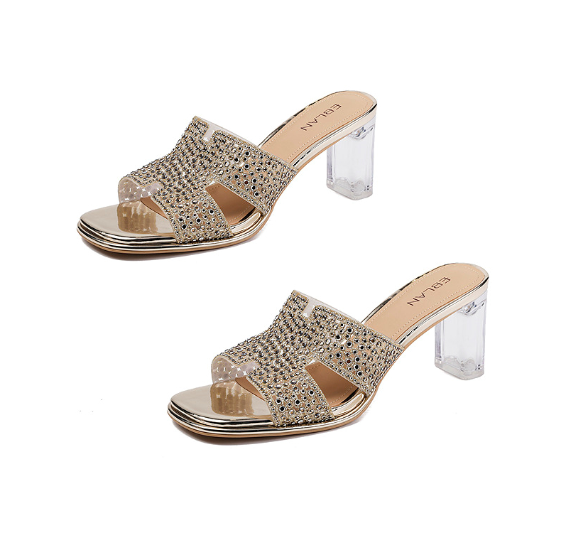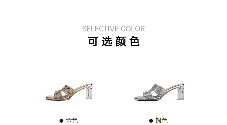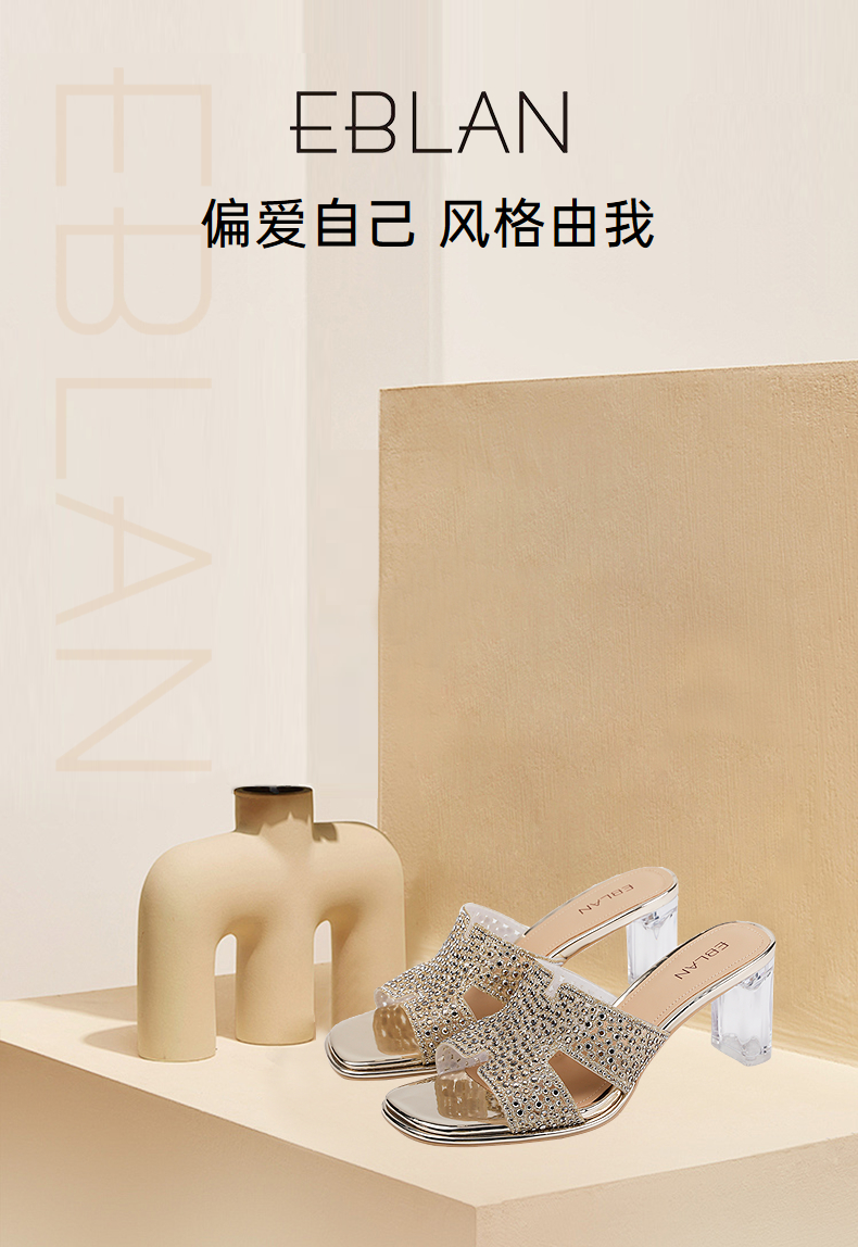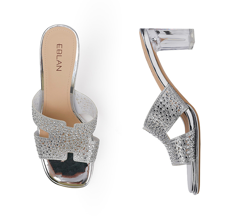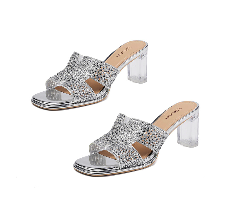 伊伴夏季H造型星光钻面凉拖透明高跟凉鞋B25350112
