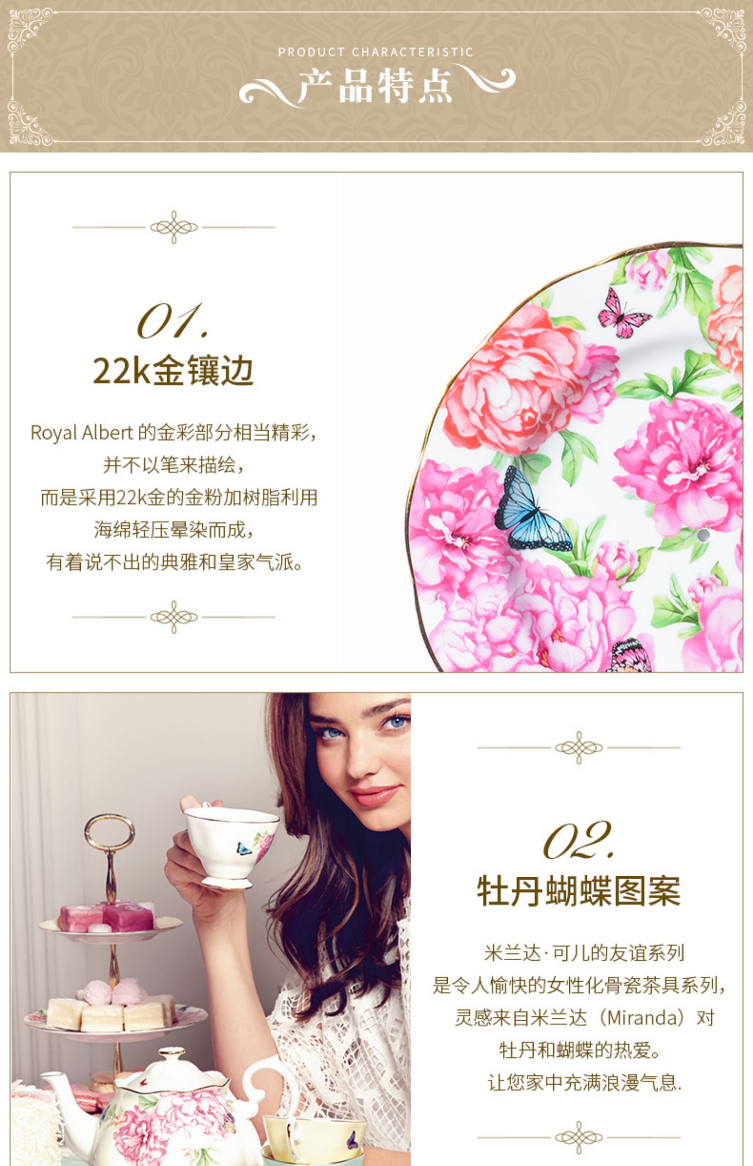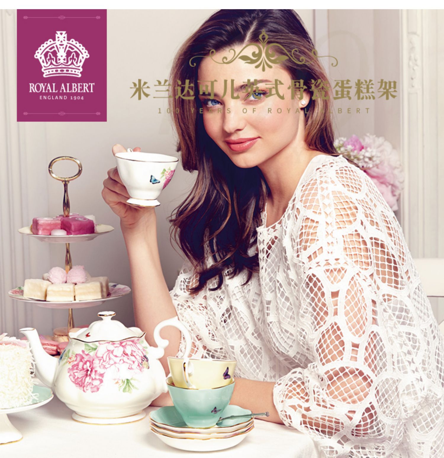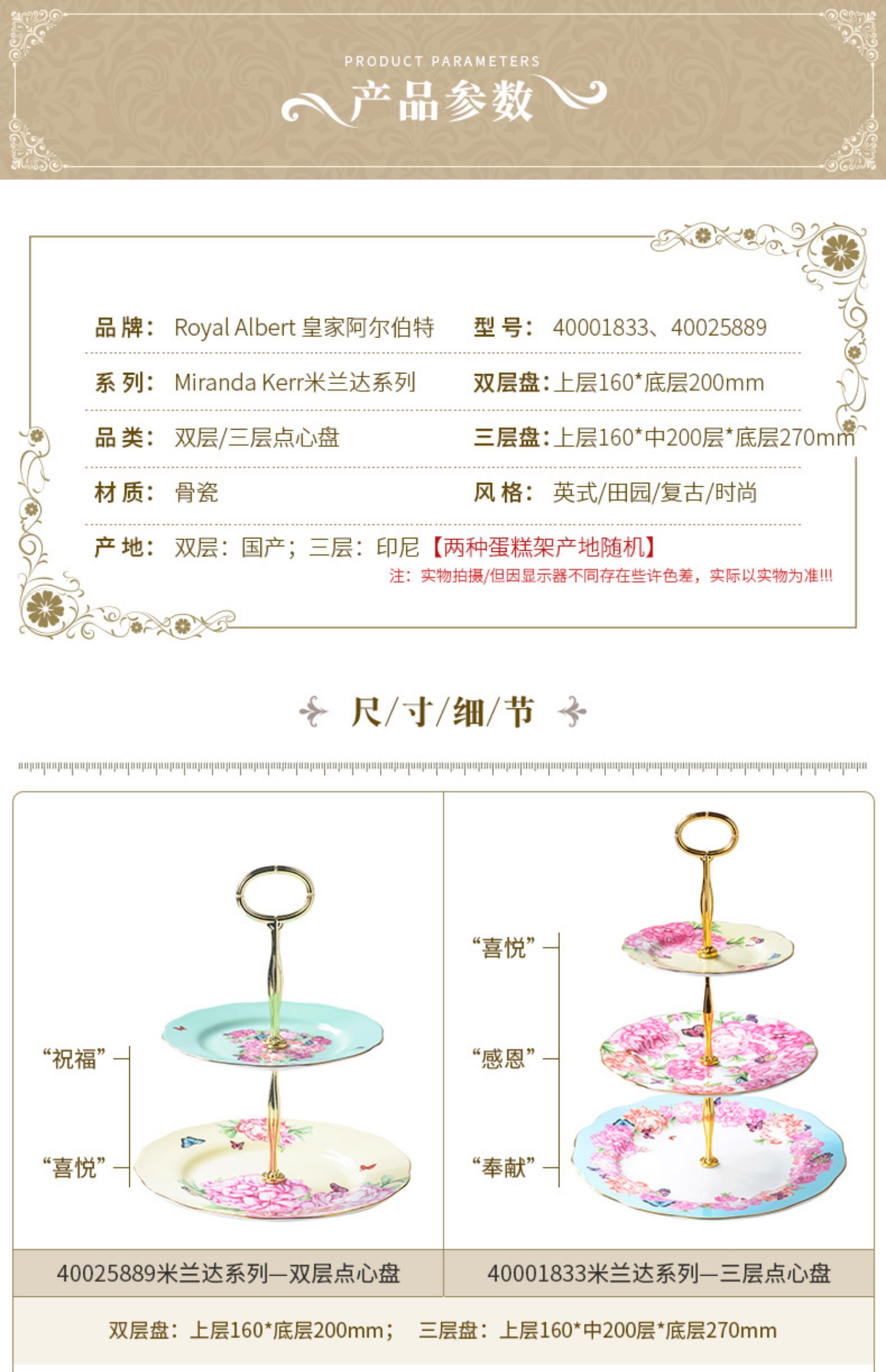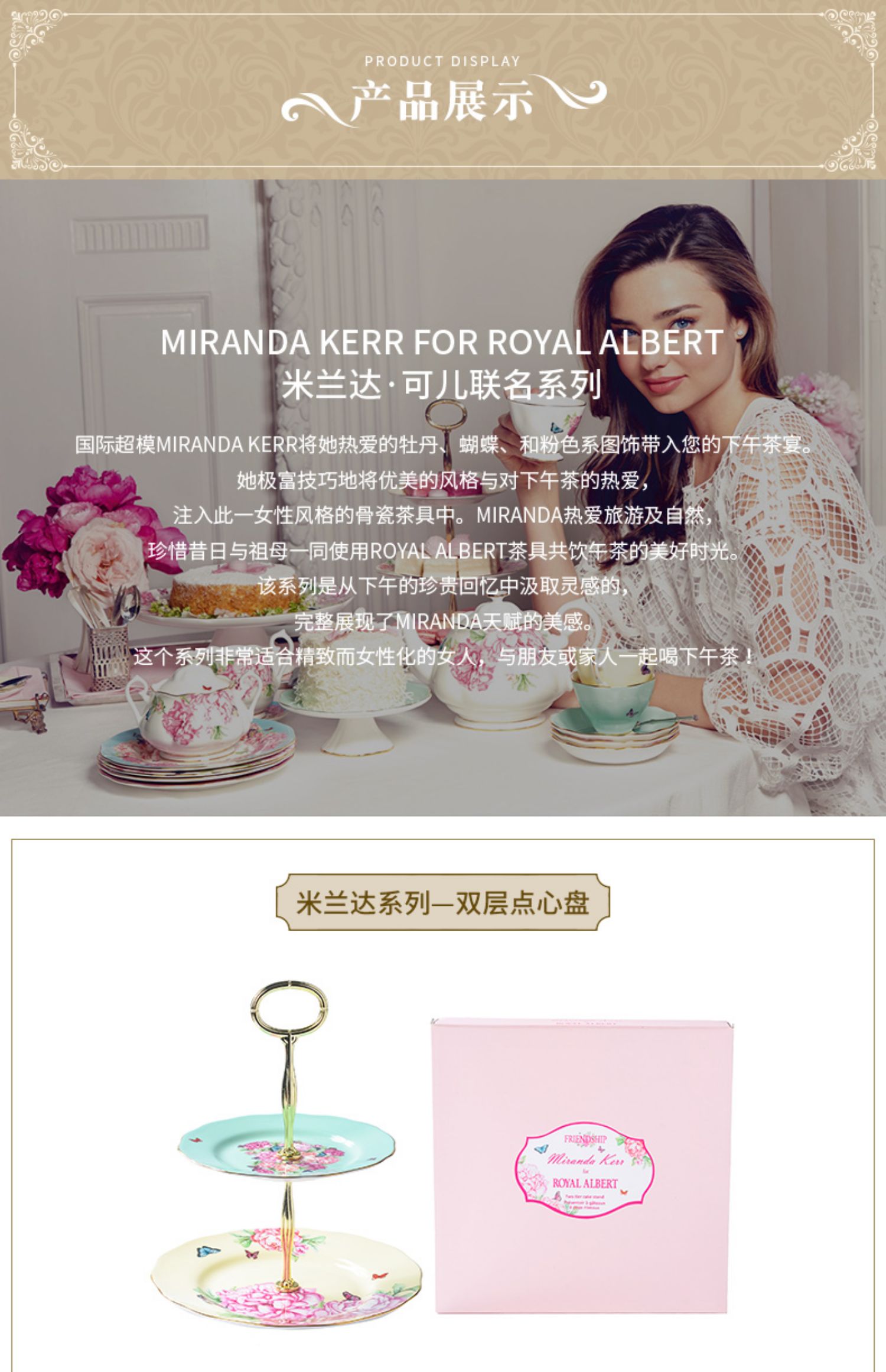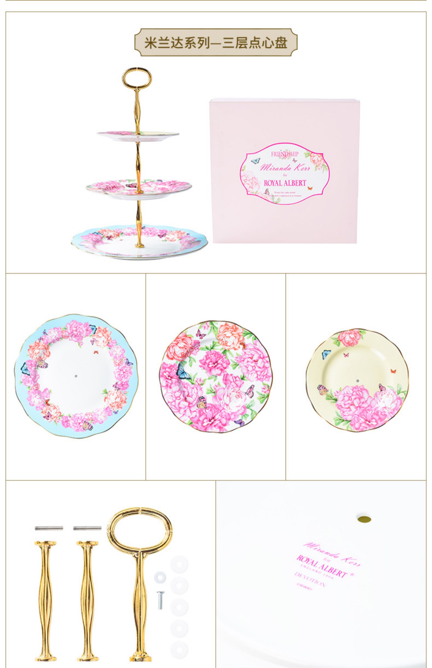 Royal Albert皇家阿尔伯特米兰达联名款骨瓷蛋糕架双层点心盘欧式