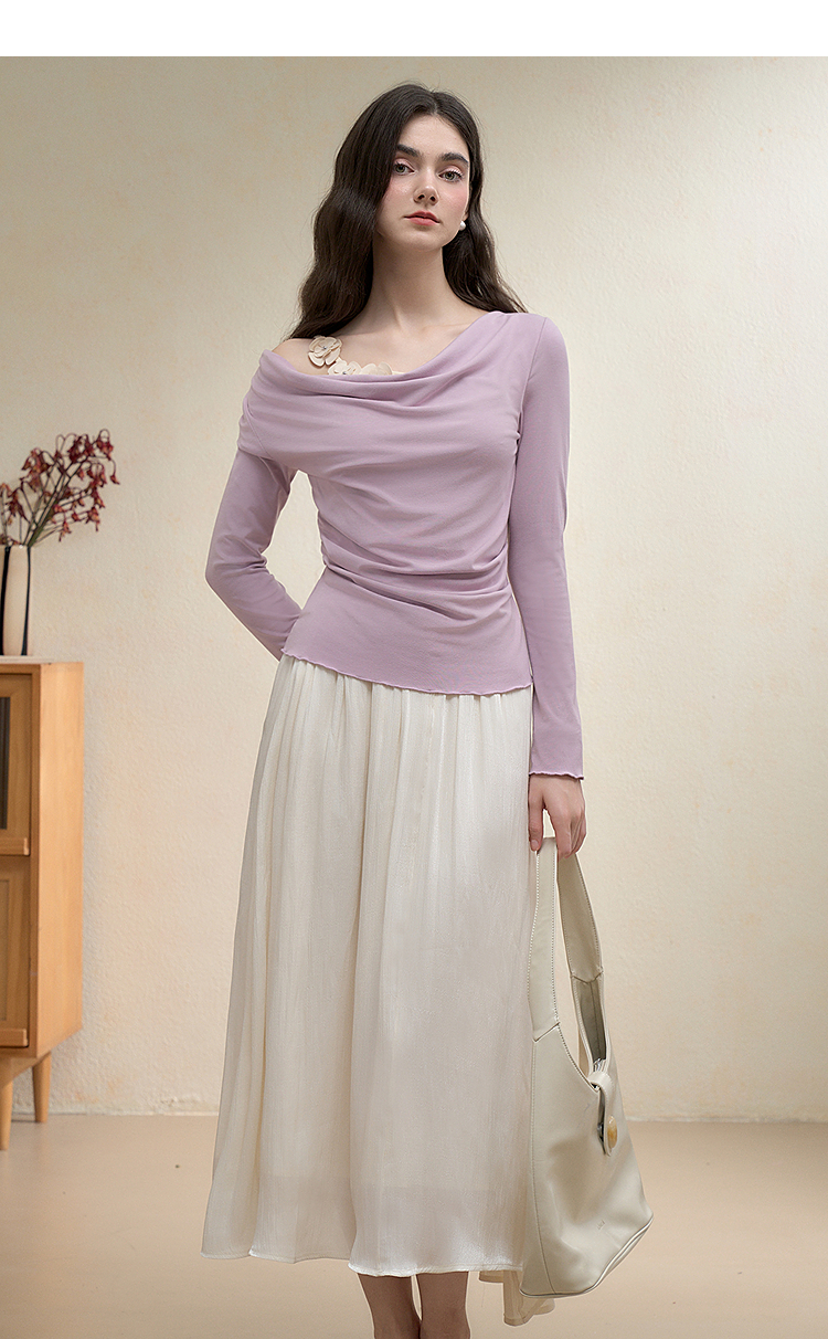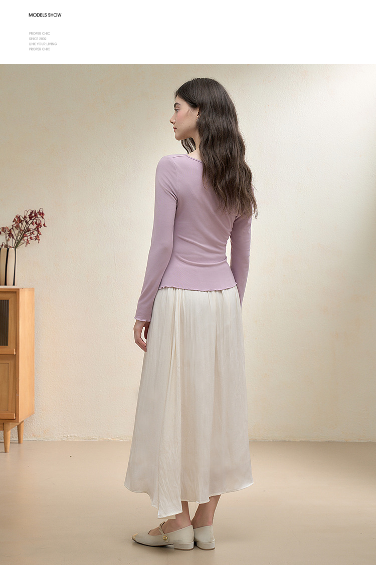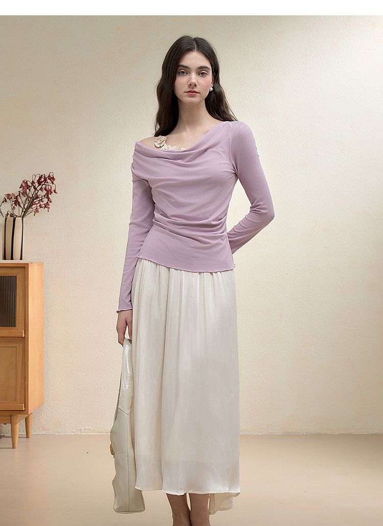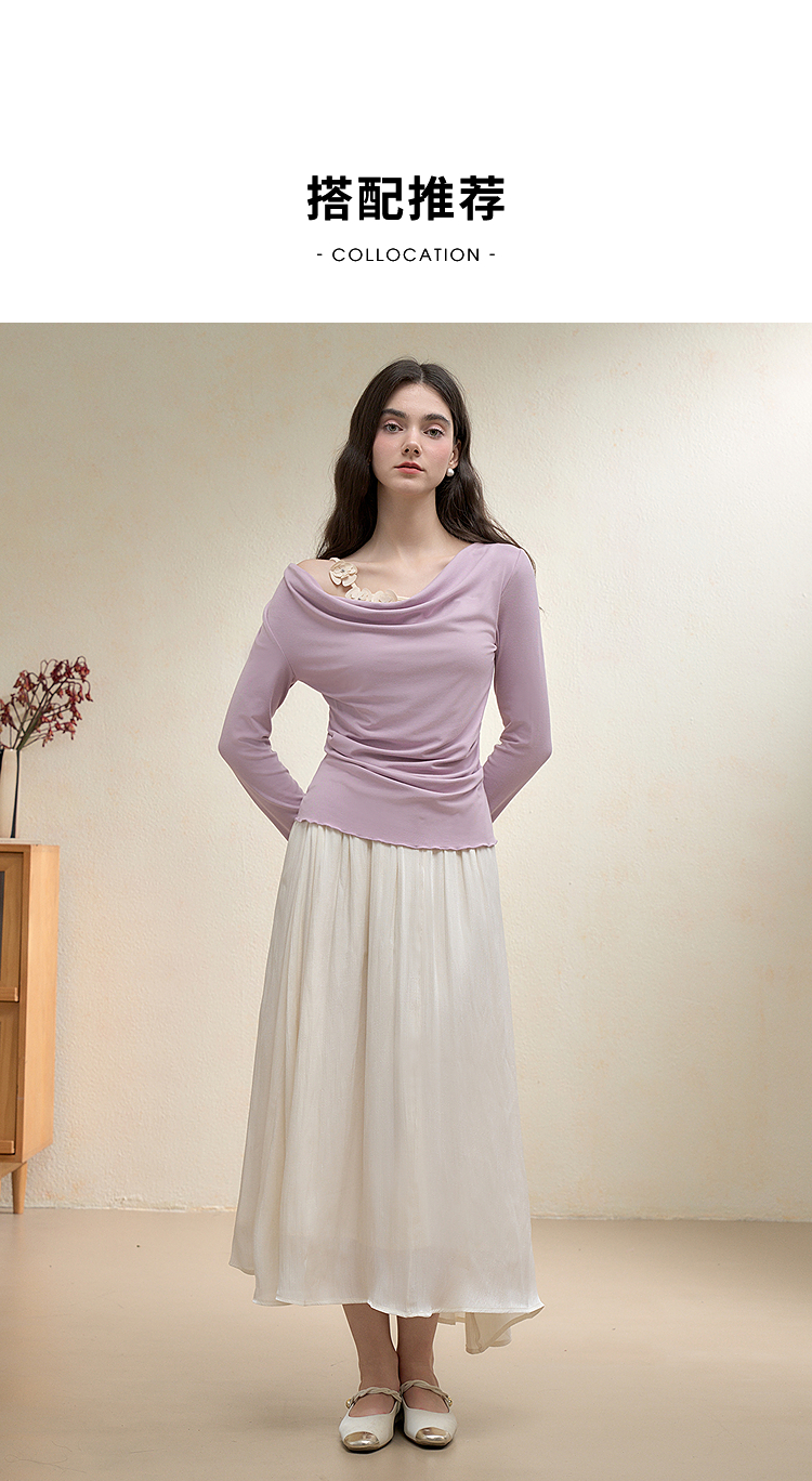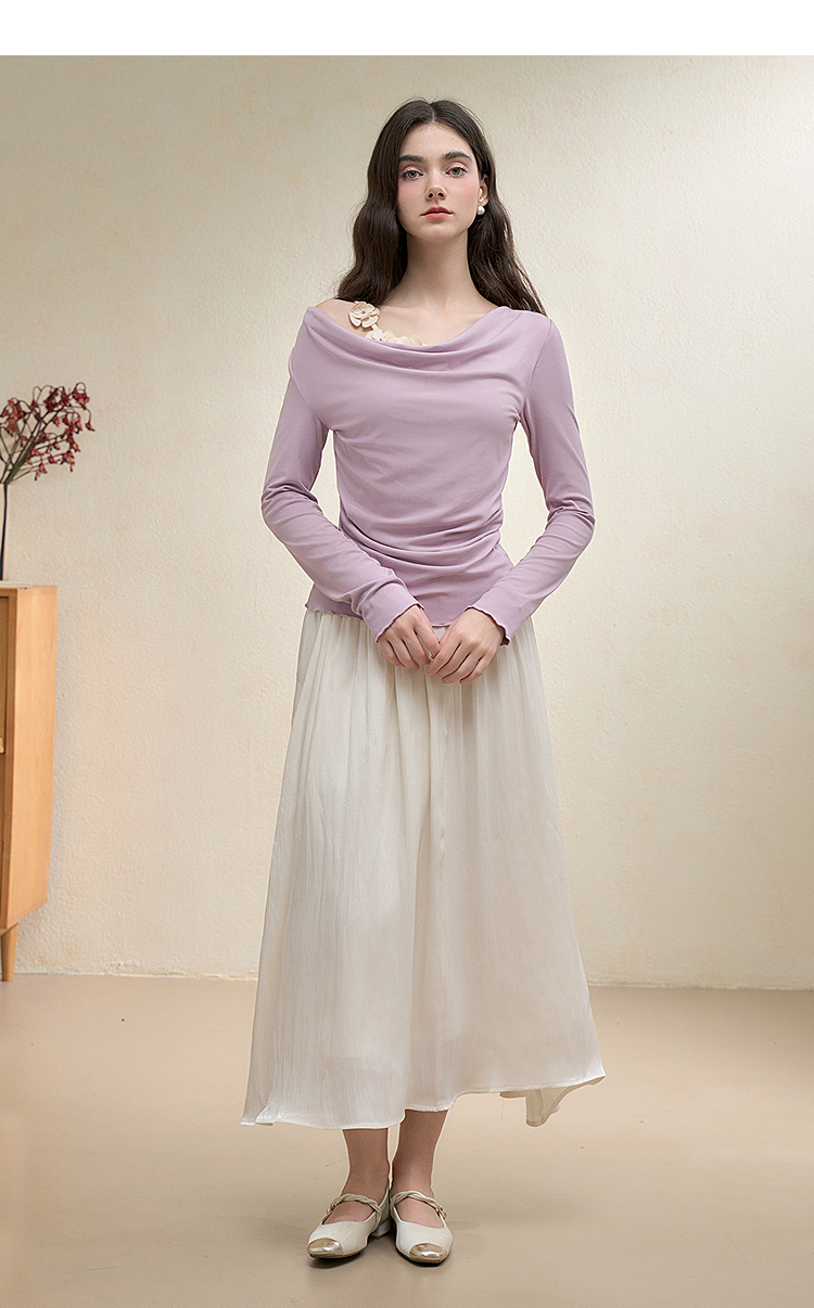 【限时秒杀】西遇法式温柔套装女秋季新款编织花朵荡领T恤半身裙两件套V3051249/V2951254
