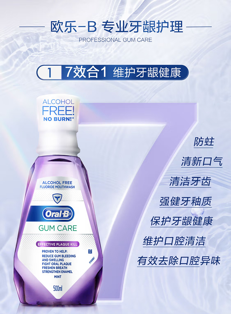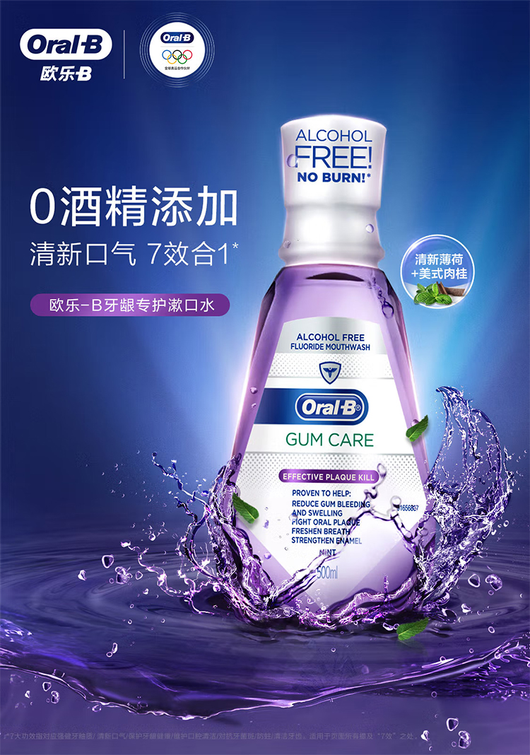 欧乐B漱口水便携男女清新口气护龈口腔清洁进口对抗牙菌斑250ml*2瓶