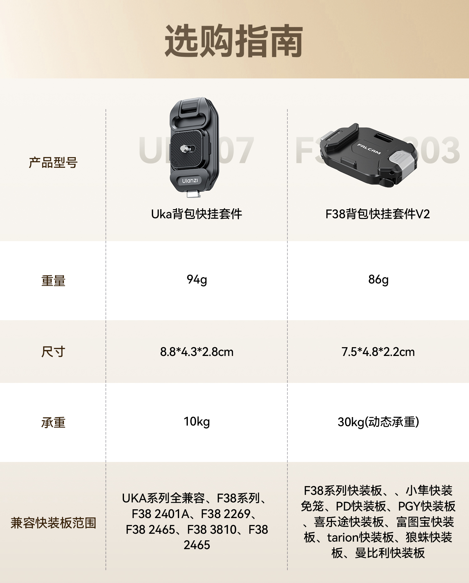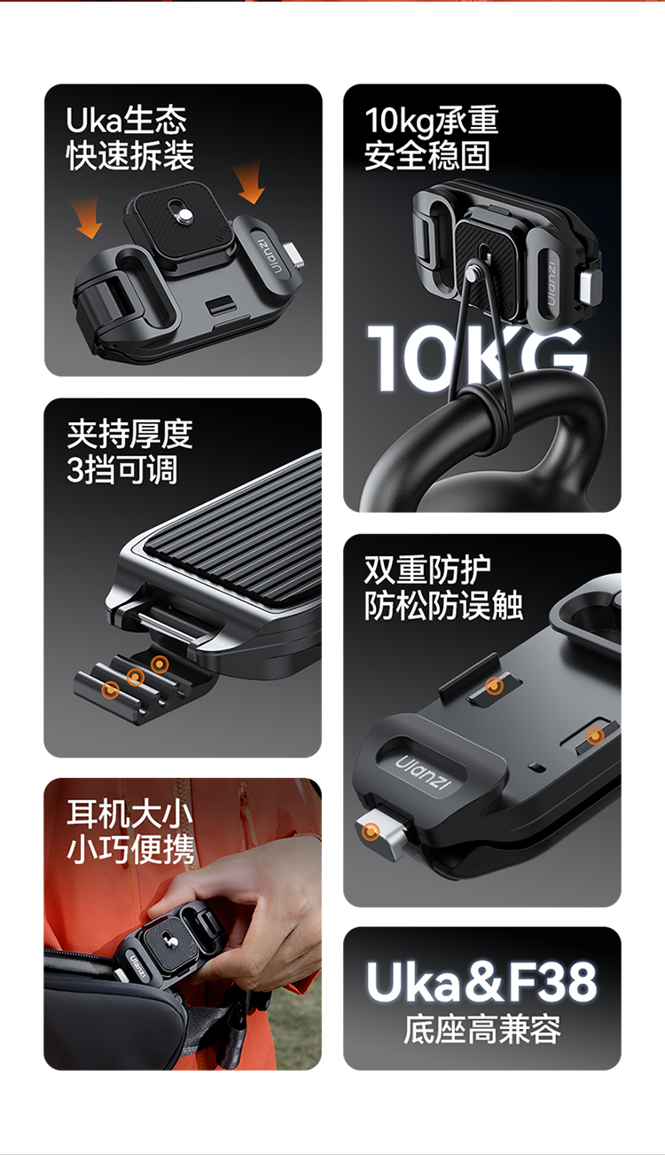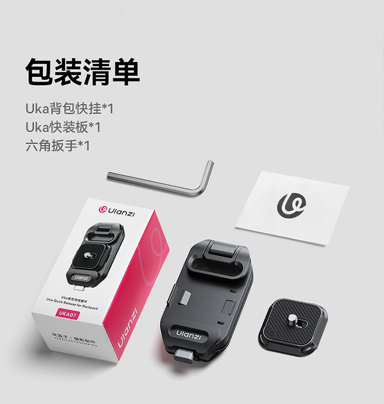 Ulanzi优篮子Uka07背包快挂套件F38快装套件微单反相机通用肩带快拆系统板稳定器滑轨转换底座摄像机拓展配件