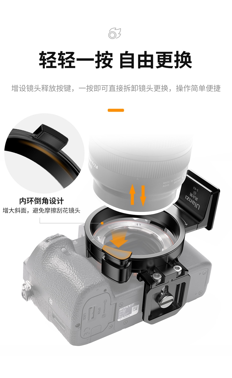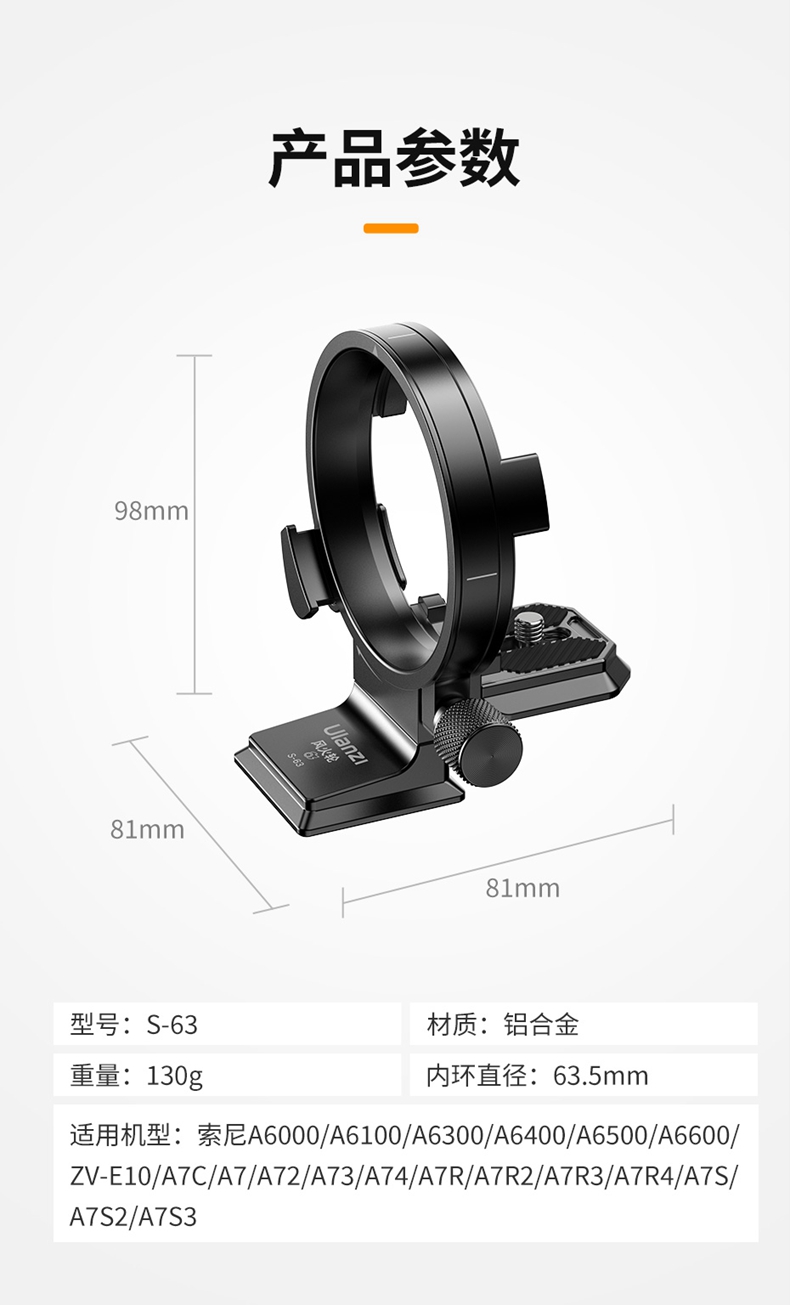 Ulanzi优篮子 S-63风火轮相机环适用索尼A7M4/A6400/ZVE10相机A系列通用阿卡快装板摄影机金属配件