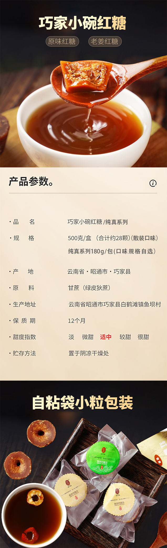 云南小碗红糖 香甜不腻 手工古法制作 独立装小粒 纯真系列 家庭实惠装