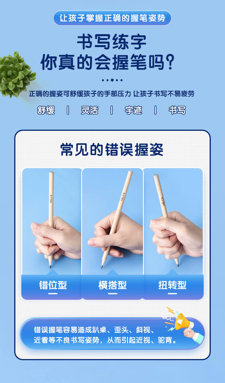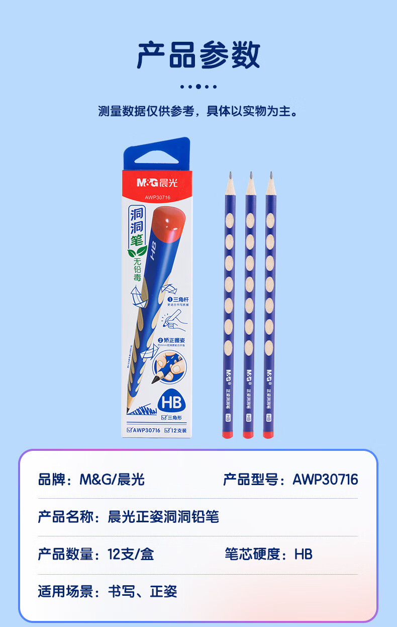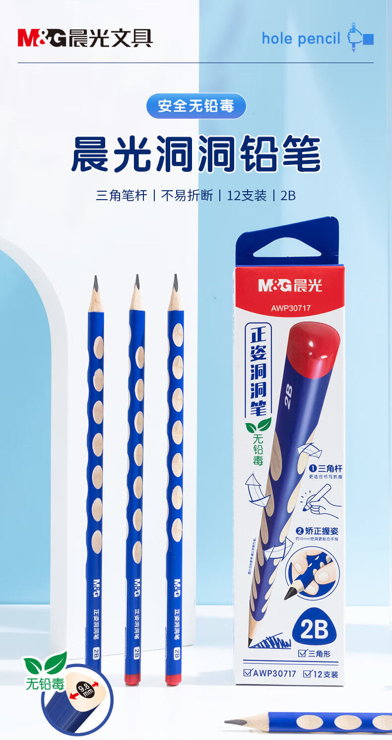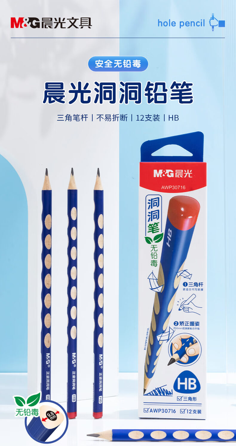 晨光2B/HB三角形洞洞铅笔 小学生练字铅笔儿童正姿矫姿三角木杆铅笔 12支/盒