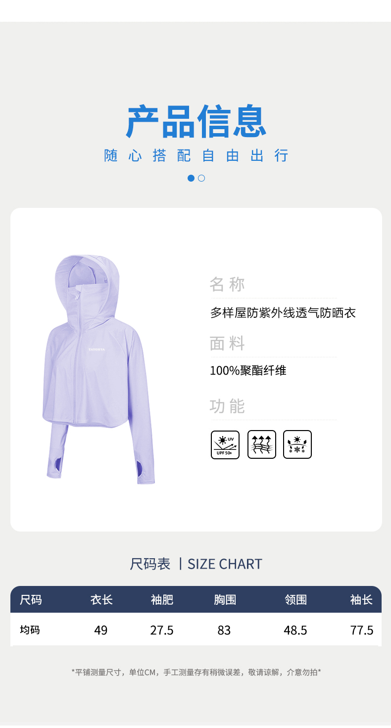 【多样屋专柜】多样屋夏季护颈防晒防紫外线透气防晒衣/轻烟灰