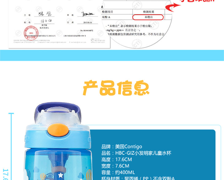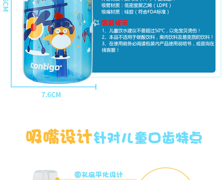 【已下架】积分购 | 康迪克儿童防漏吸管杯 美国Contigo不含双酚A(不支持无理由退换)[福利品]