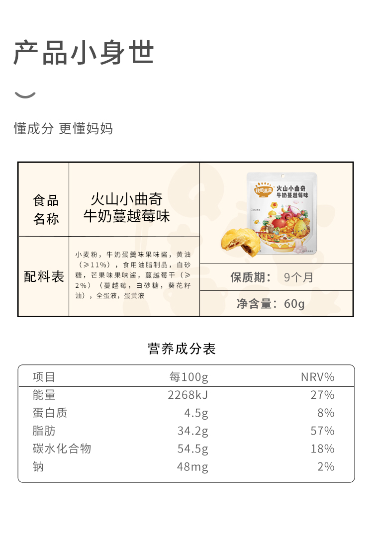 【99元任选7件】火山小曲奇*1 牛奶蔓越莓夹心 60g/每袋,叠加店铺满赠,不叠加店铺满减和会员折扣