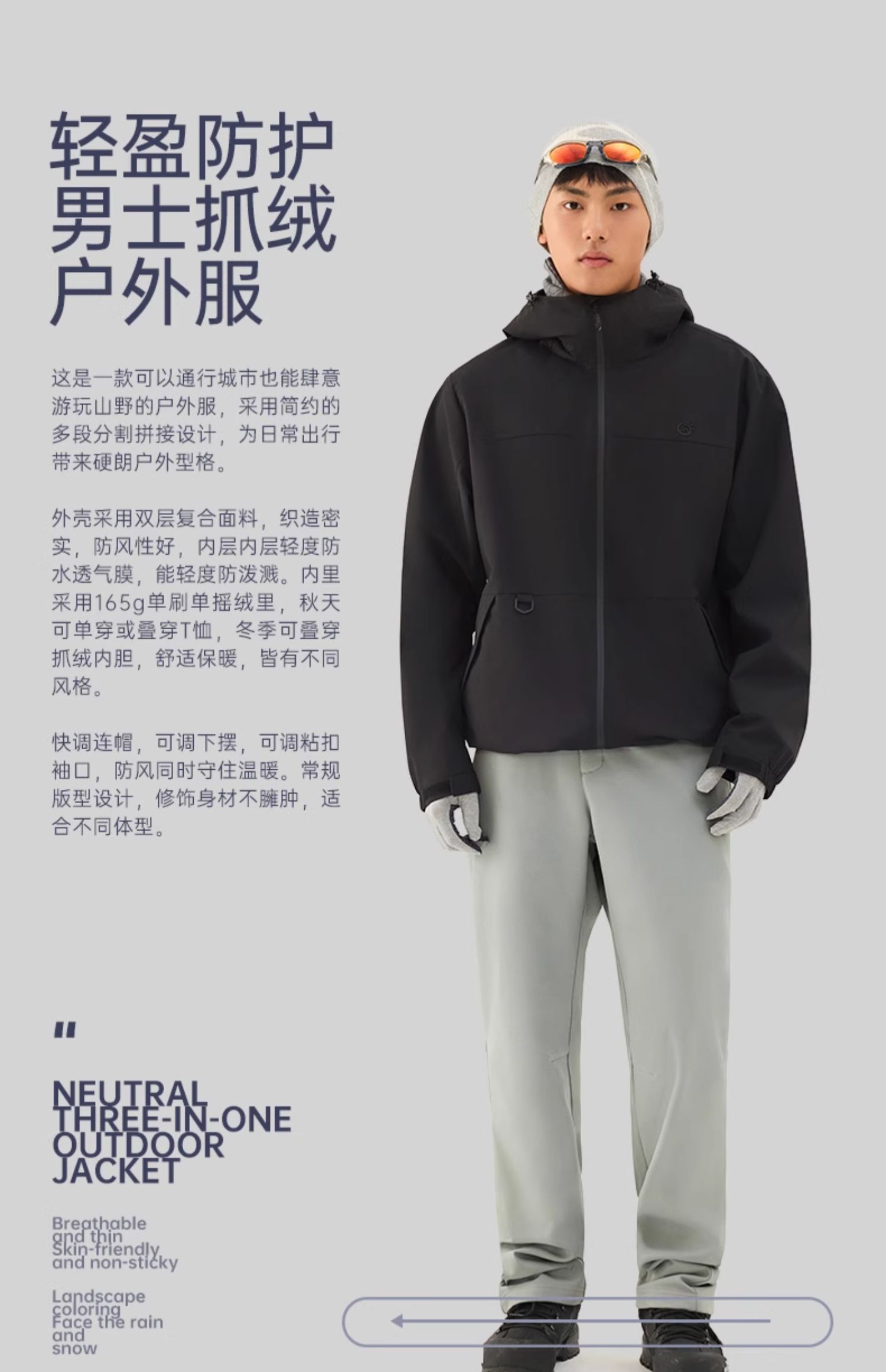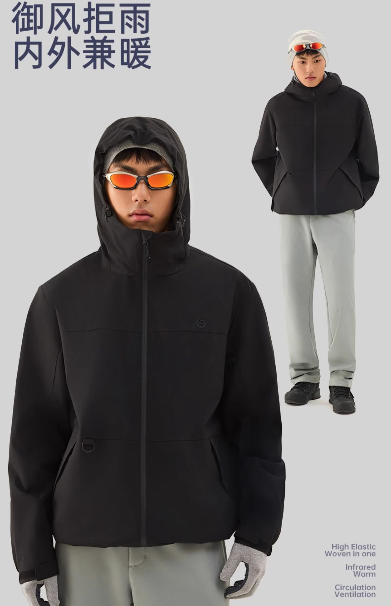 TECTOP/探拓户外服男软壳衣加绒防风防泼水透气徒步登山连帽外套