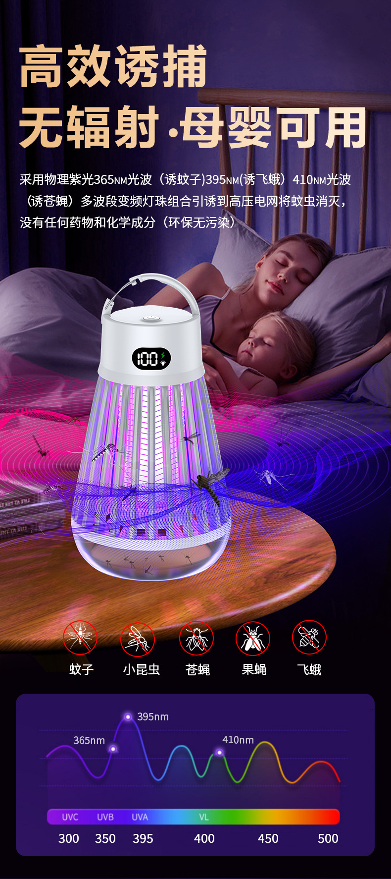 【高效诱捕!多功能灭蚊灯】2024新款静音多功能灭蚊灯二合一便携式家用灭蚊器户外露营灯,全面捕杀 360°无死角诱蚊。