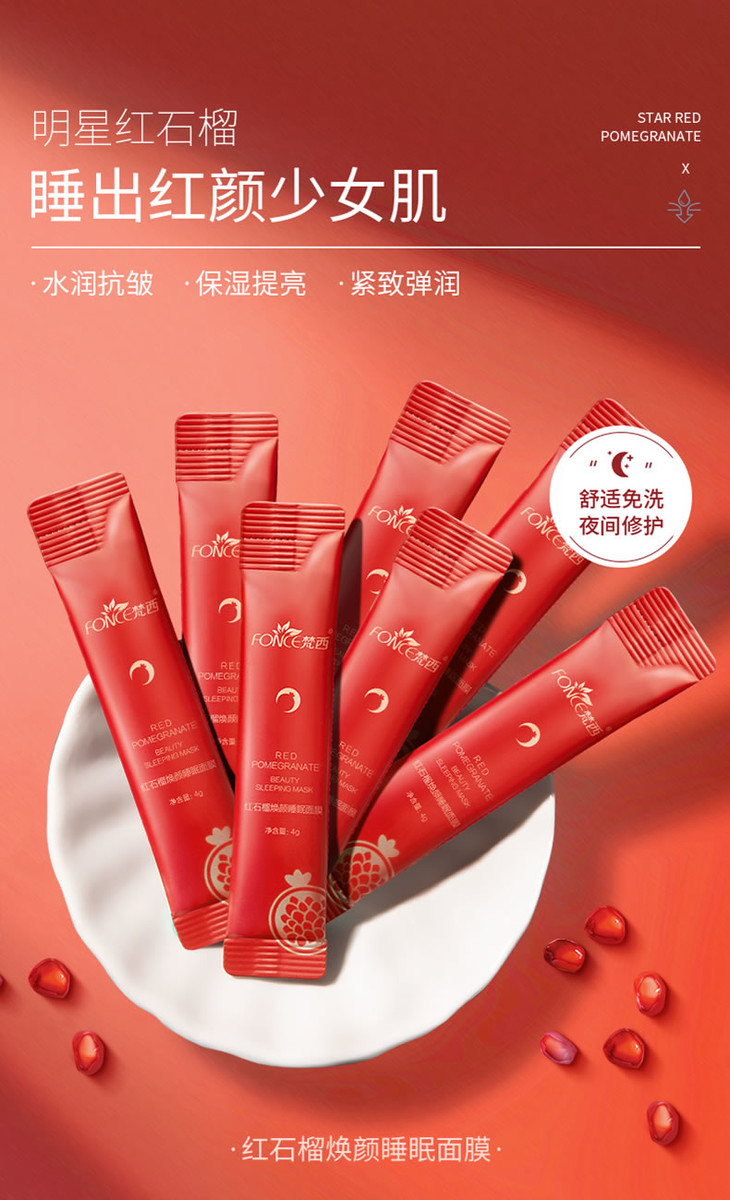 【金币兑换】梵西红石榴睡眠面膜夜间免洗补水保湿修护提亮肤色改善暗沉面膜