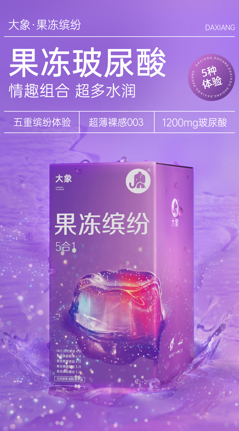 【双旦狂欢·钜惠来袭】 【新品上市】大象果冻缤纷五合一20只玻尿酸套套 情趣组合 超多水润