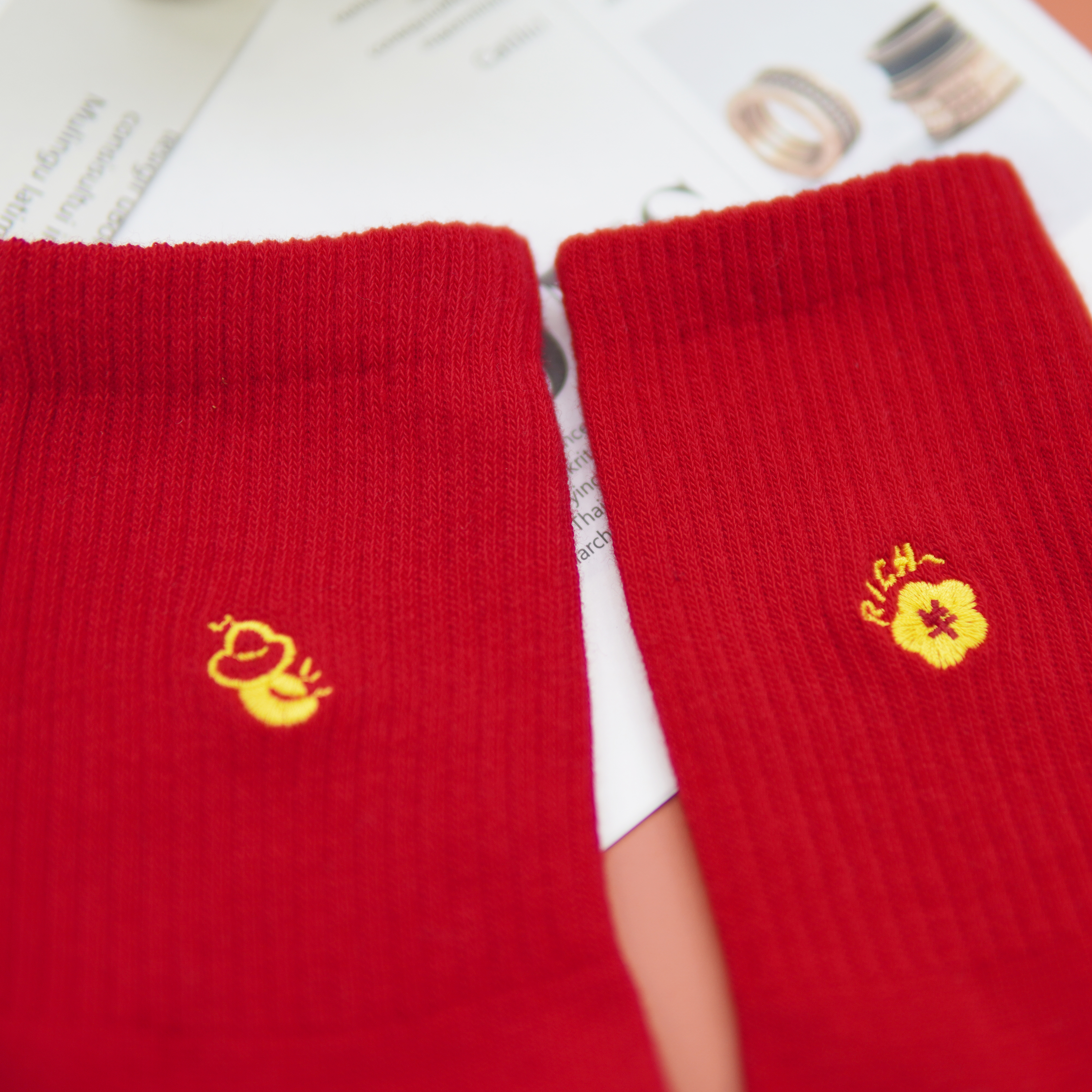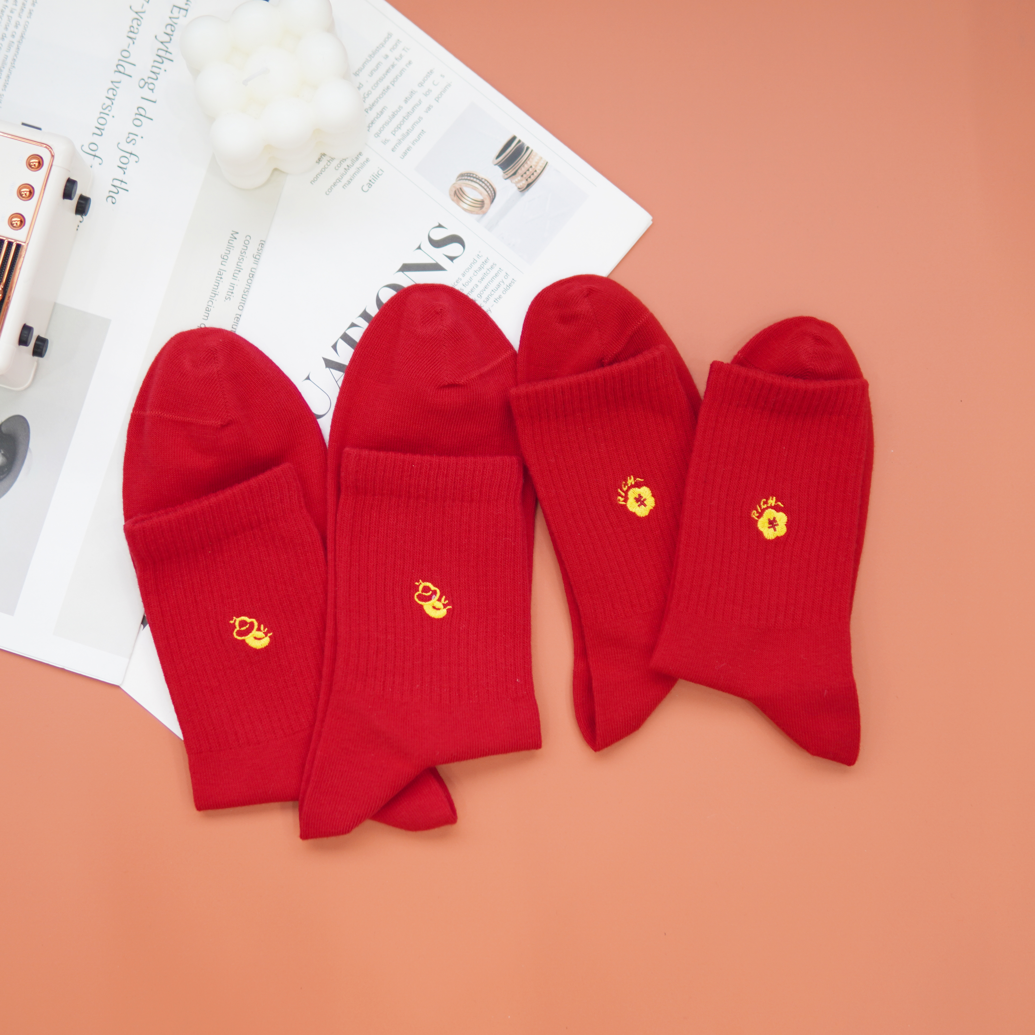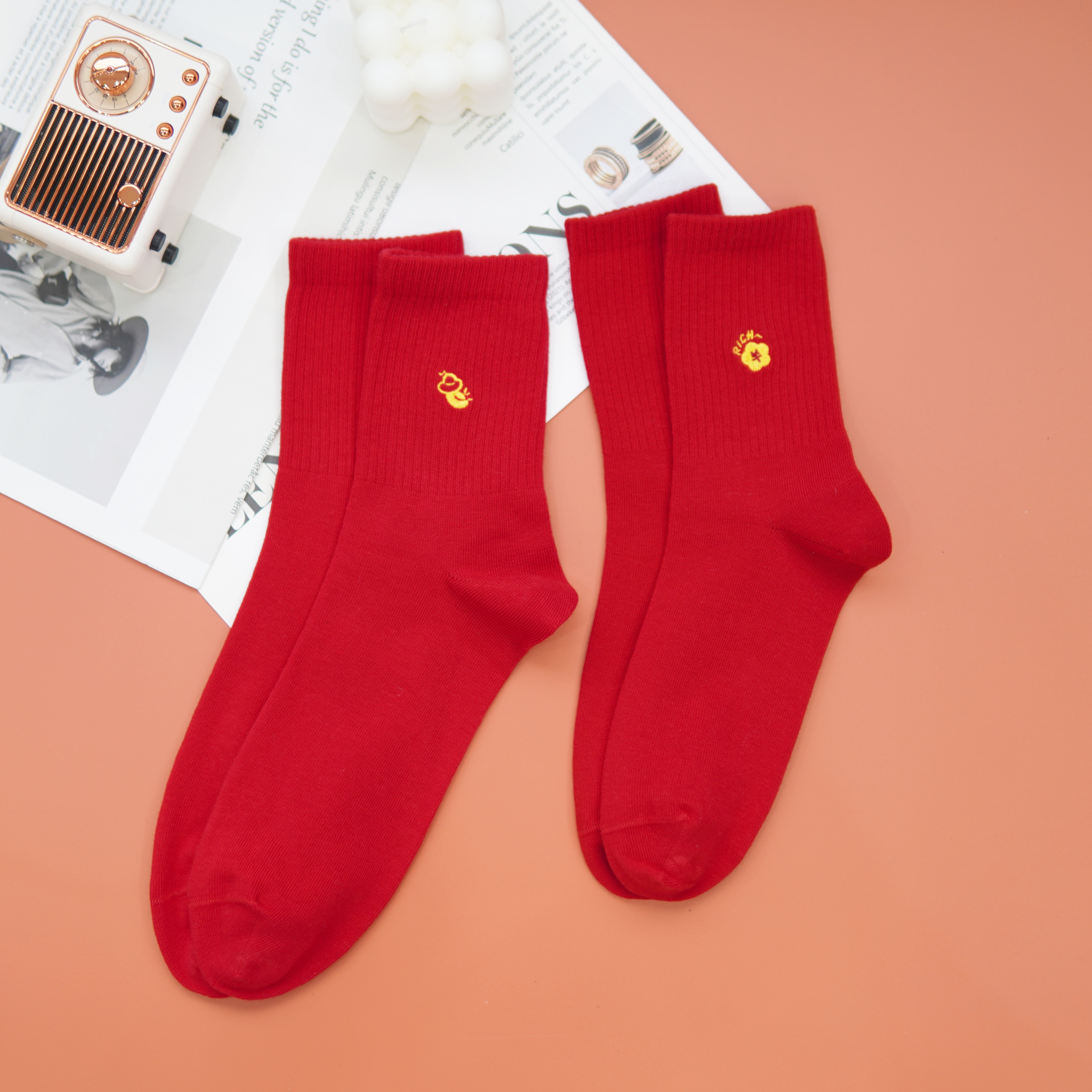 【2双装】男士/女士新年红袜子本命年鸿运袜AB版中筒四季棉袜【6双6折 2522208/2521208】