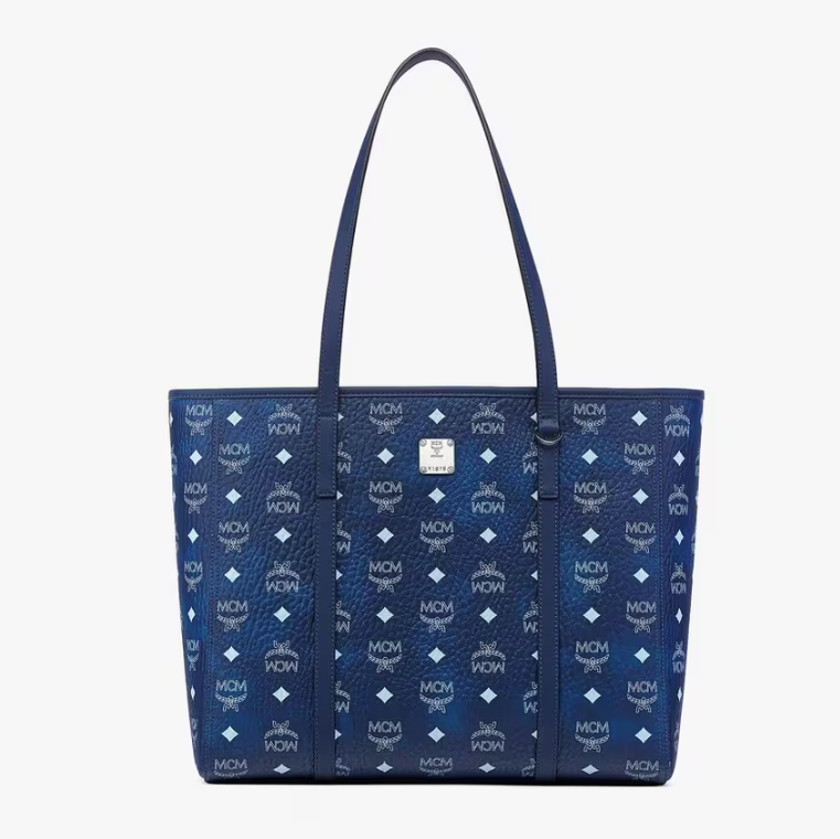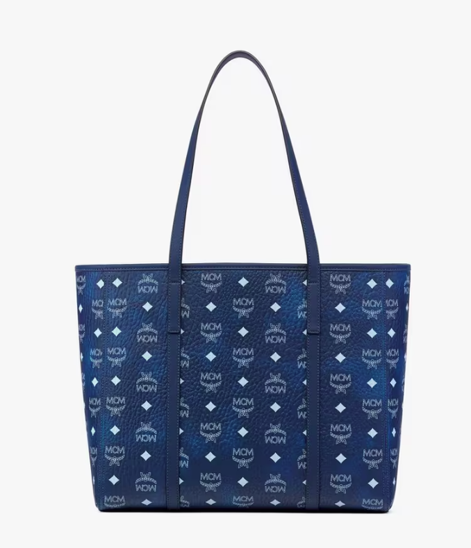 这款Toni购物袋采用蓝色Visetos人造革制成,并饰有柔软的皮革细节,将精致美学与实用功能融于一体。
