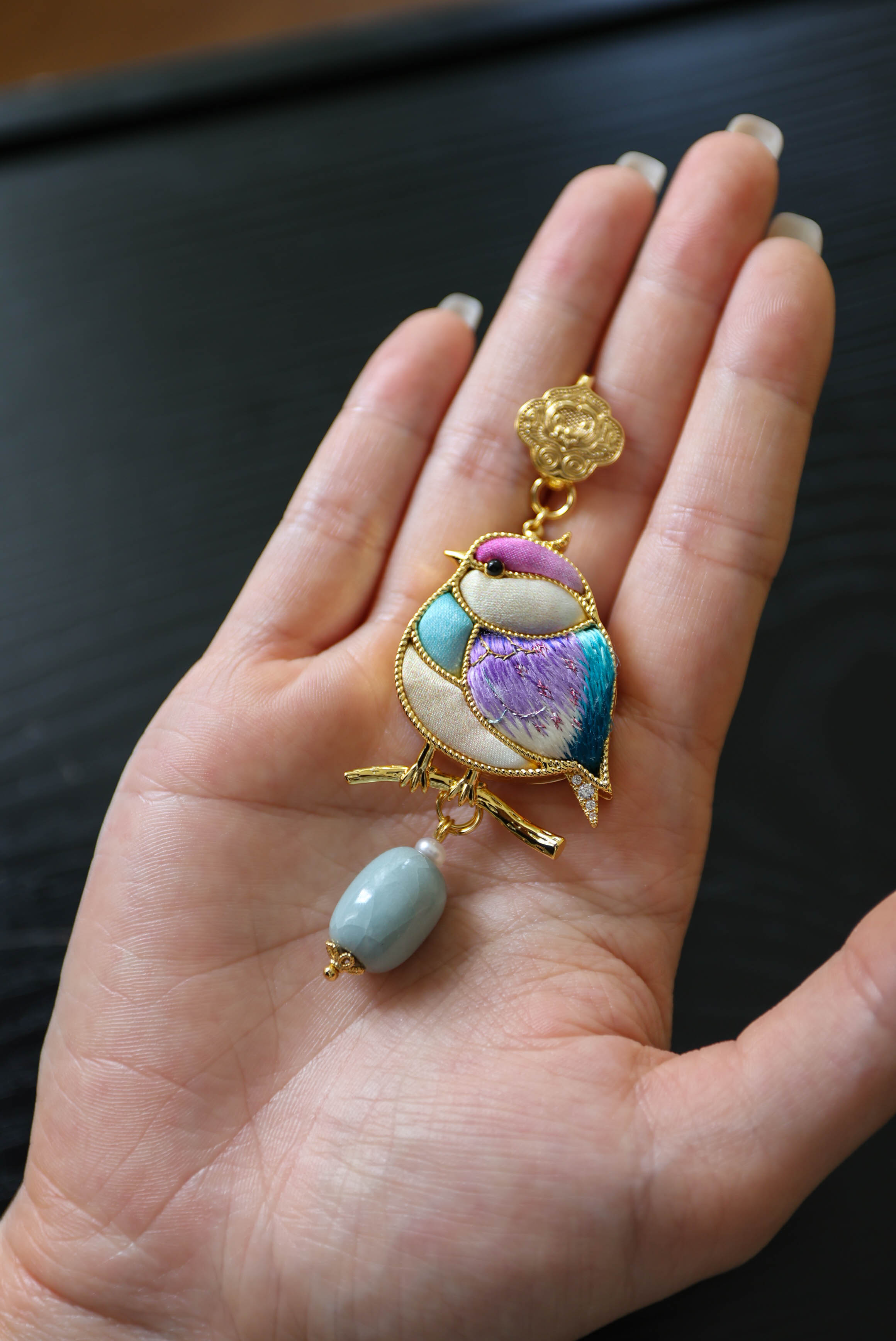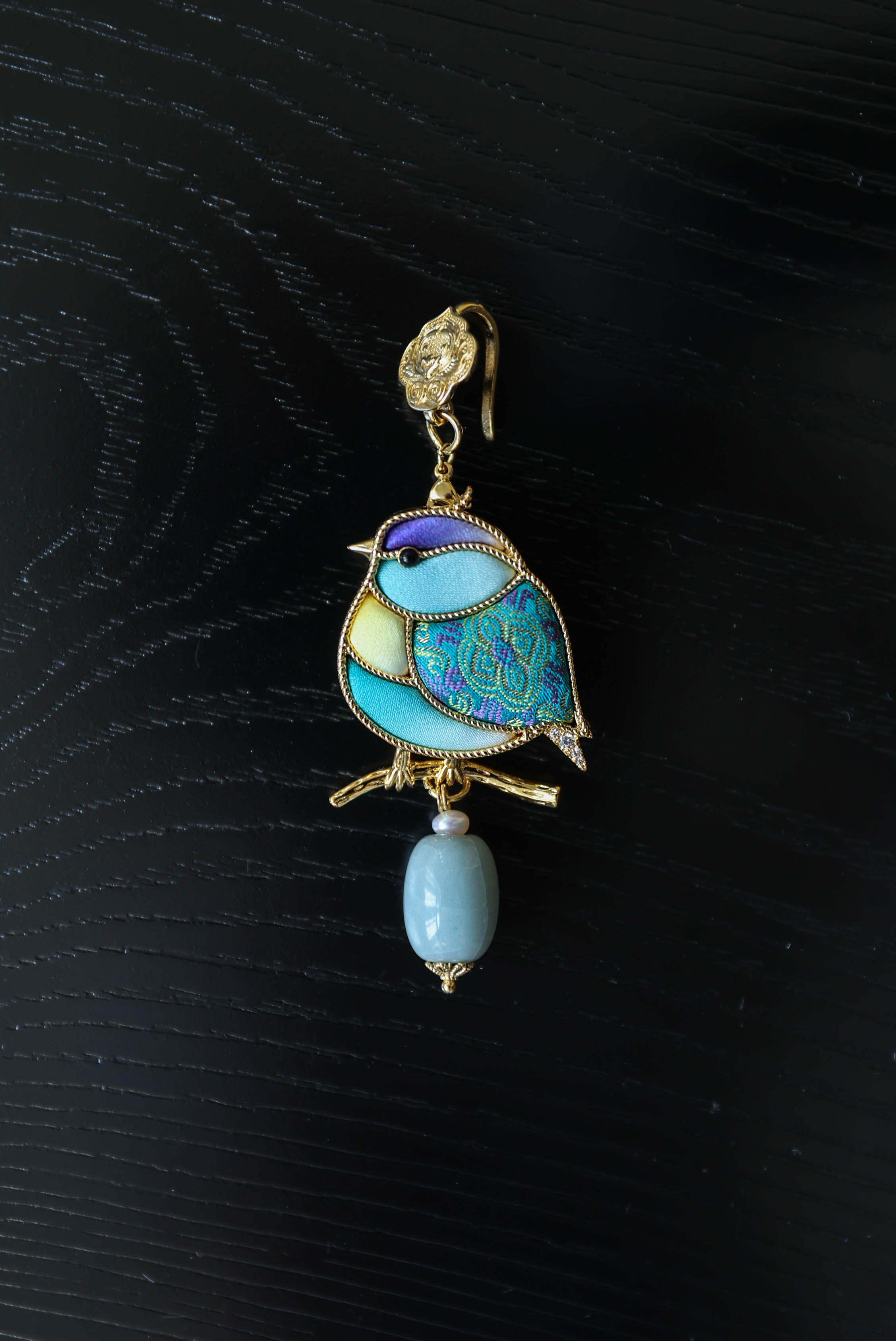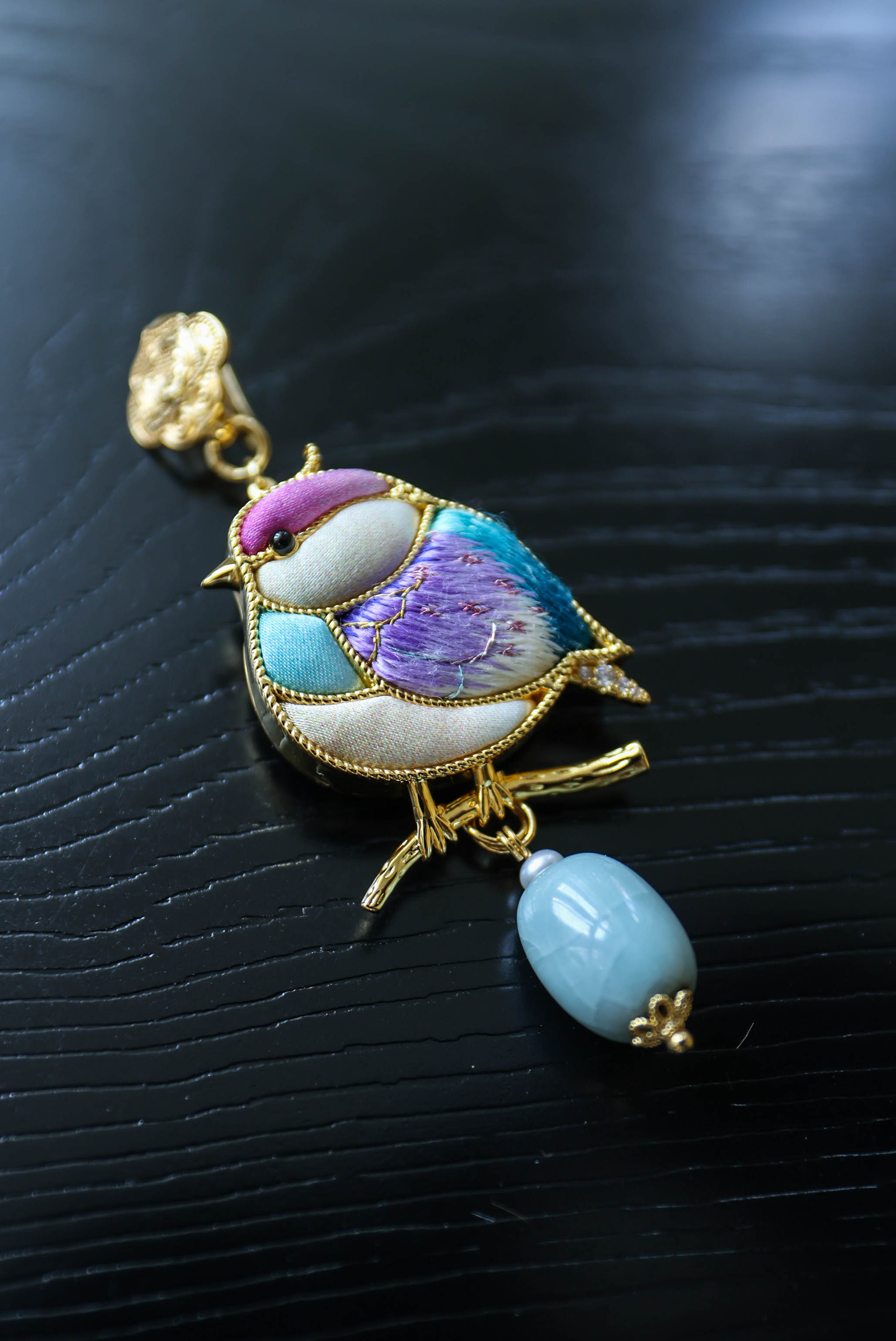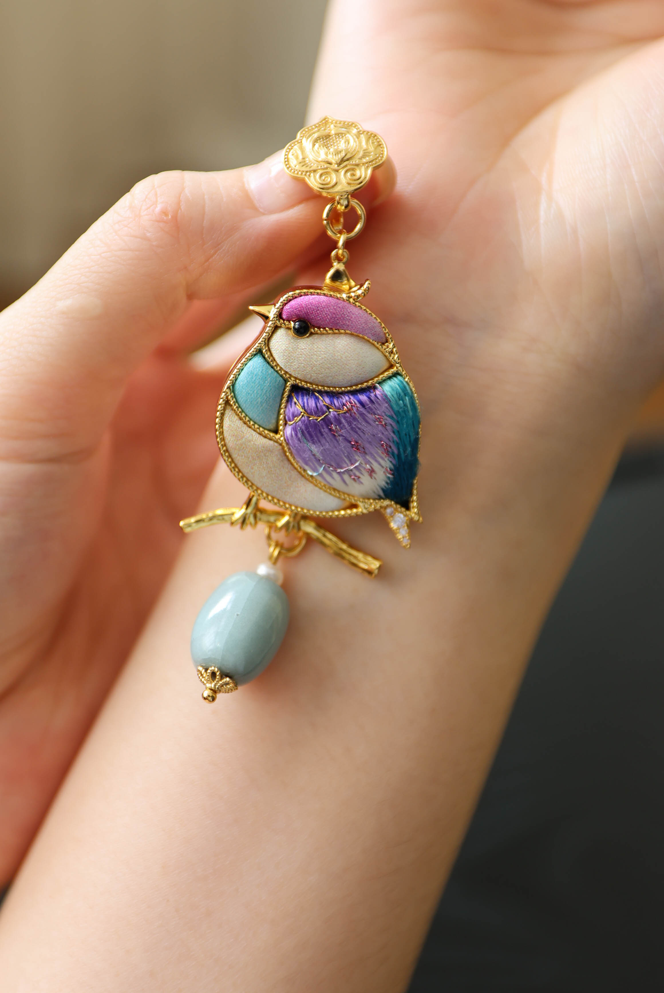 本系列胸针全新演绎非遗盘扣工艺,以精巧丝线缠绕盘制,勾勒出灵鸟振翅、骏马奔腾的生动造型,既延续了传统盘扣的立体与细腻,更注入了现代设计的简约与灵动。我们精选天然矿物釉料,以传统非遗汝窑技艺烧制而成。其釉面莹润,开片细腻,宛然一道“雨过天青云破处”的宁静诗意,与盘扣的繁复精巧形成绝妙对比,成为整体设计的视觉焦点。