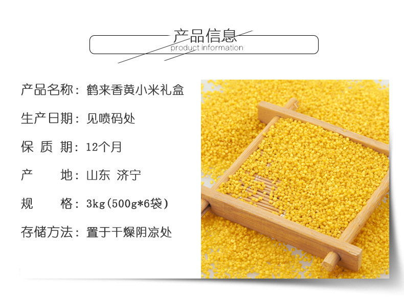 「礼盒装!真空包装」鹤来香黄小米礼盒500克*6袋新米真空包装五谷杂小米 粮油米面