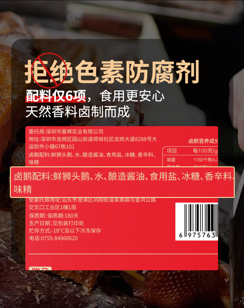【正宗潮味】喜辉 汕头澄海狮头鹅 低醇高蛋白 肉质鲜美 口感鲜嫩 香味醇厚 唇齿留香 真空无菌包装 250克/盒