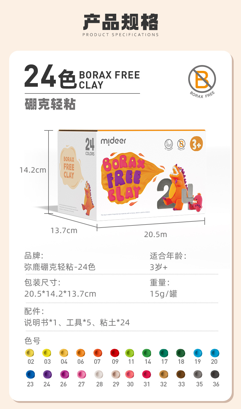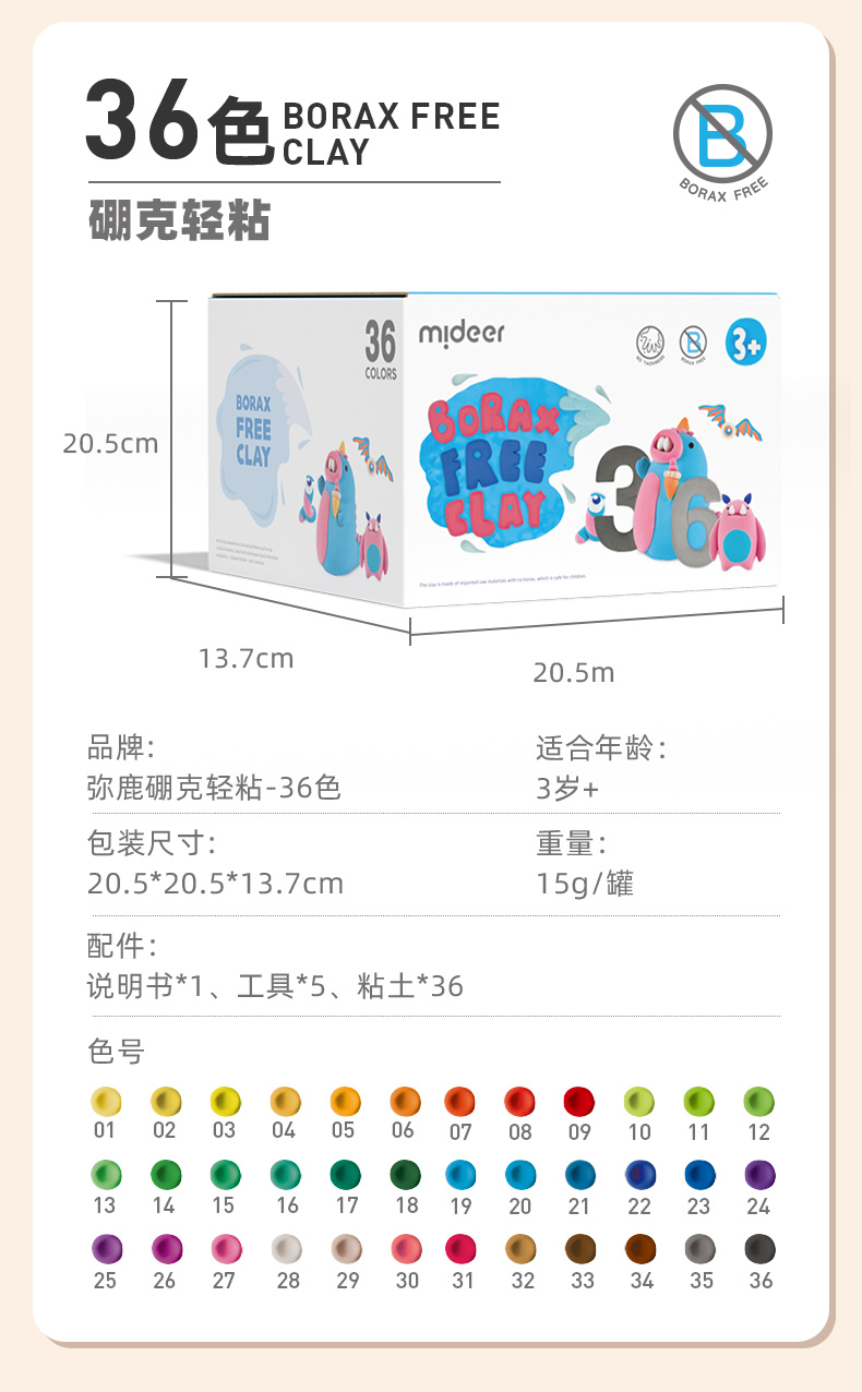 弥鹿STEAM“硼克”粘土-36色