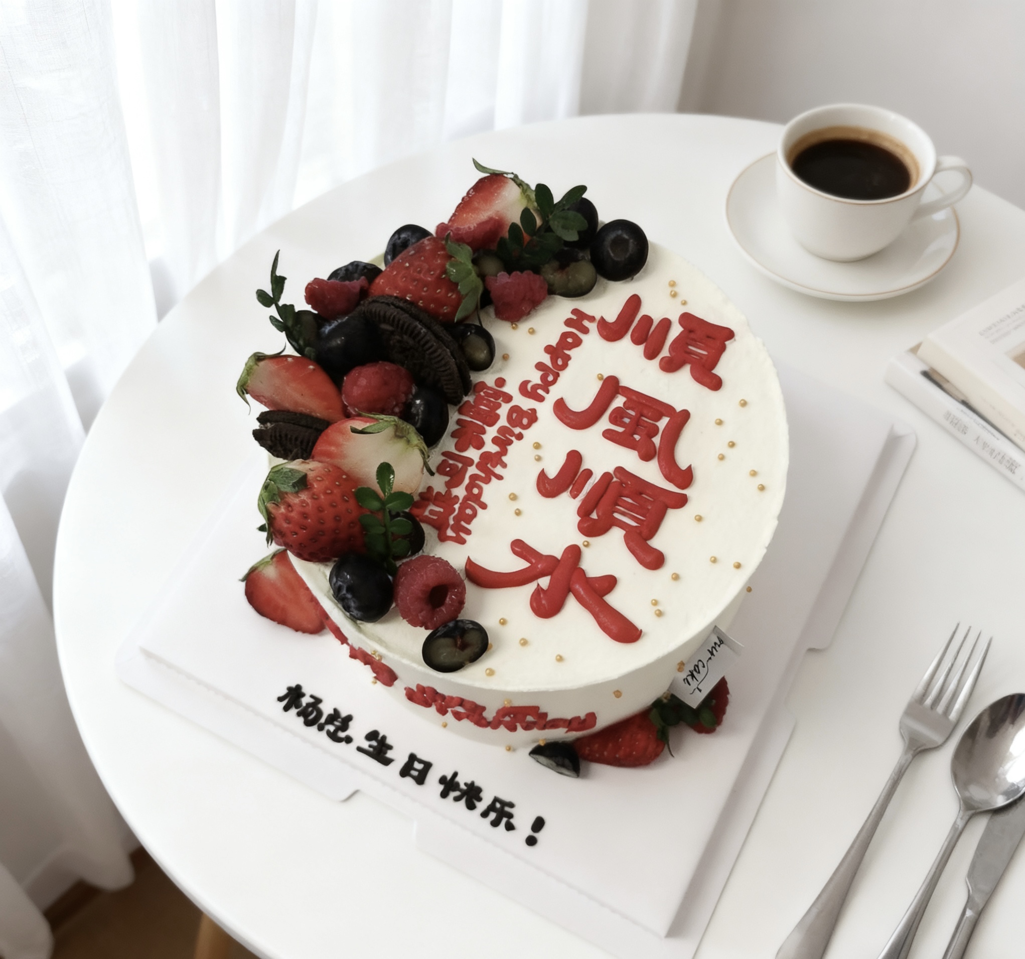 顺风顺水草莓写字蛋糕-低糖处理无添加
