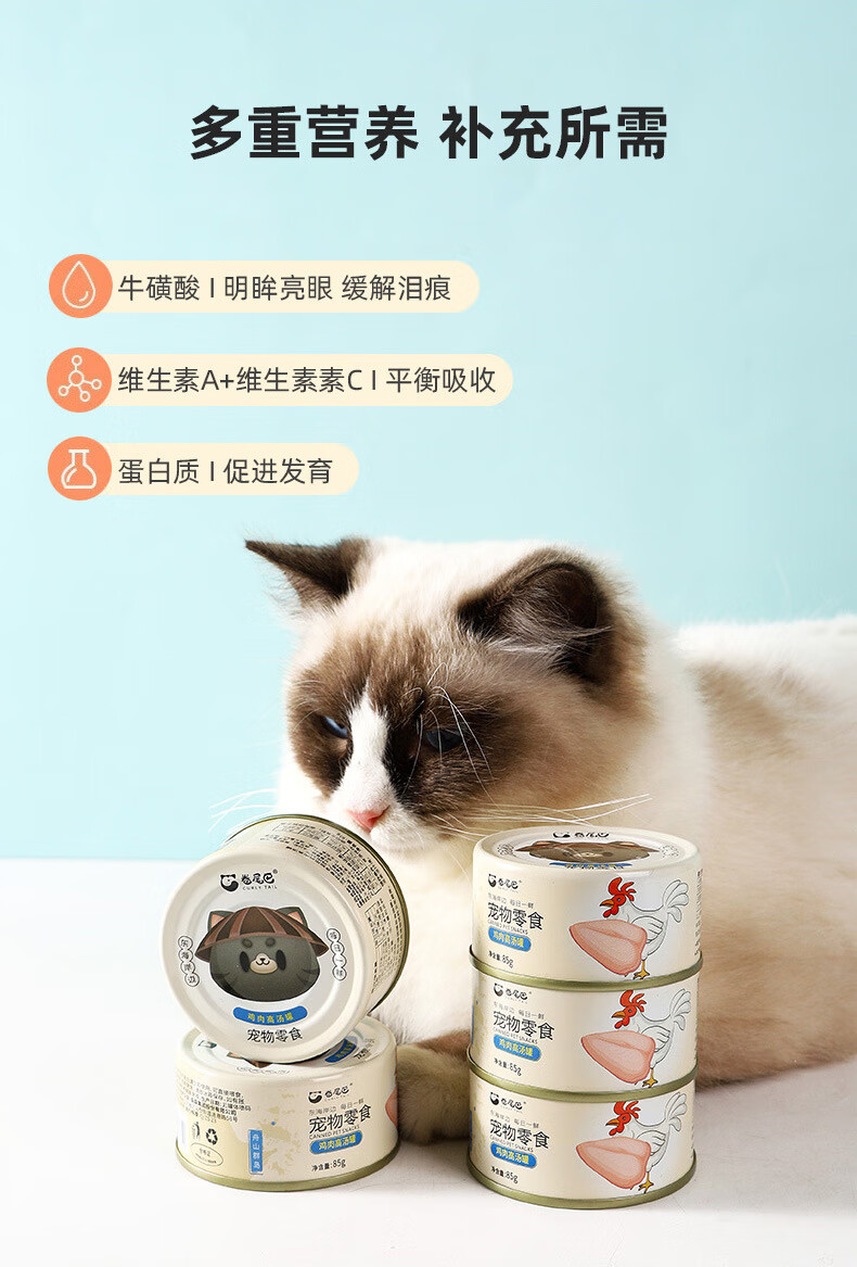 卷尾巴猫罐头幼猫猫咪增肥发腮营养猫零食鸡肉高汤罐85g/罐