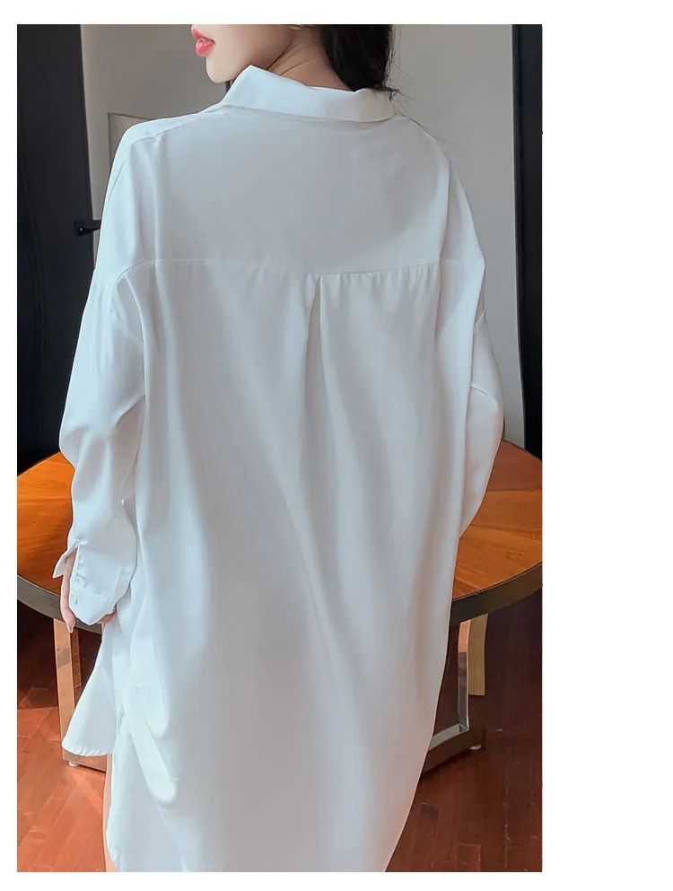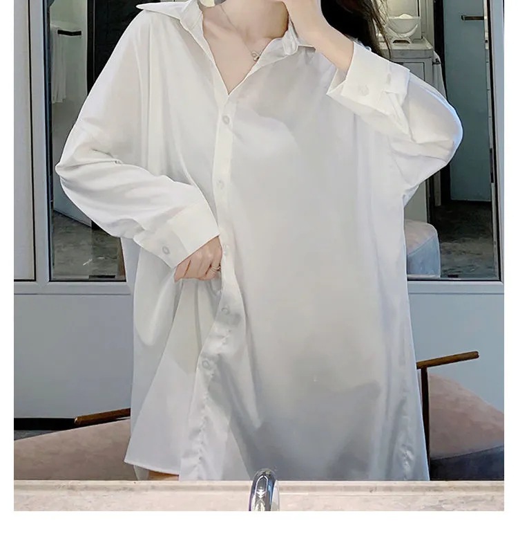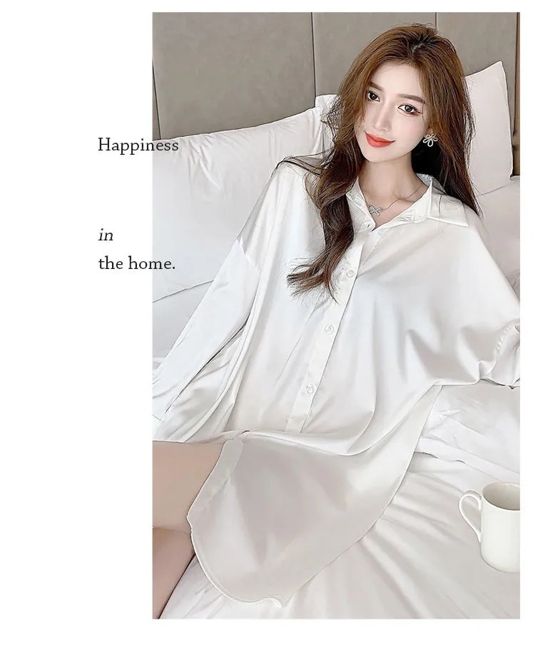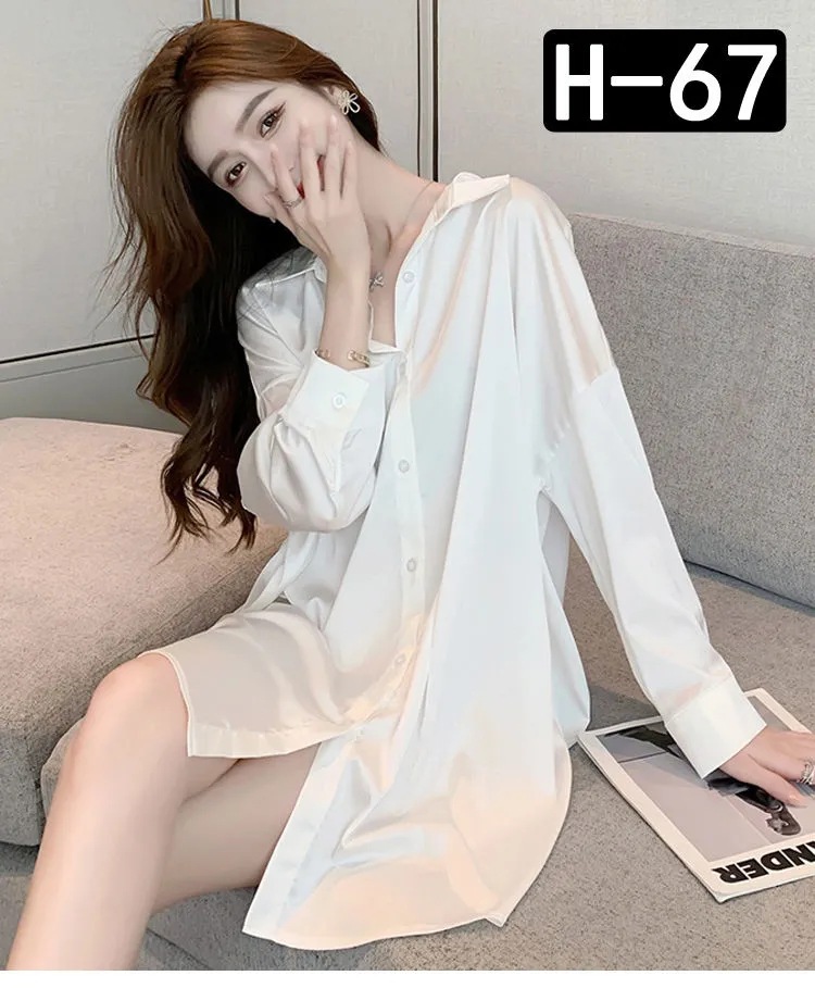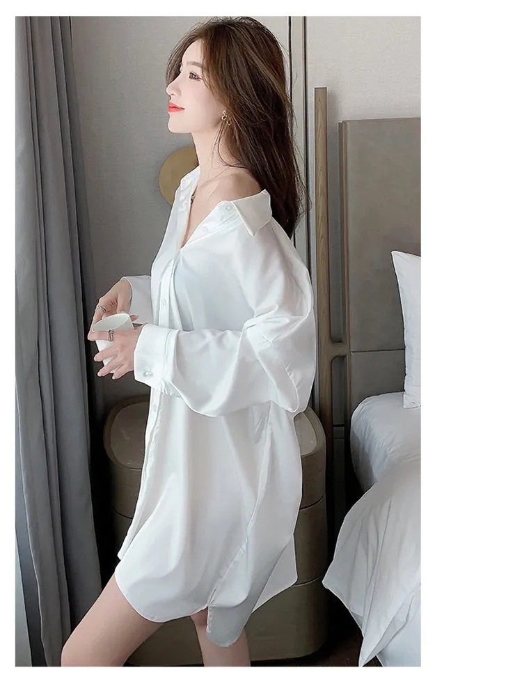 白衬衫女中长款睡衣女韩版可外穿雪纺纯欲风男友风夏季性感睡裙女