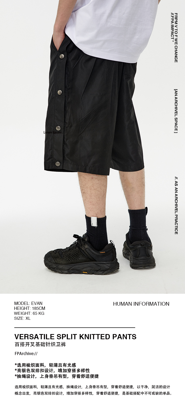 FPA(VENGETICE) 侧边排扣短裤 国潮牌夏季潮流百搭宽松五分裤男