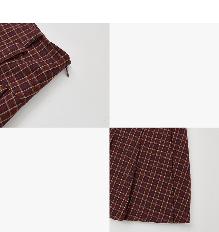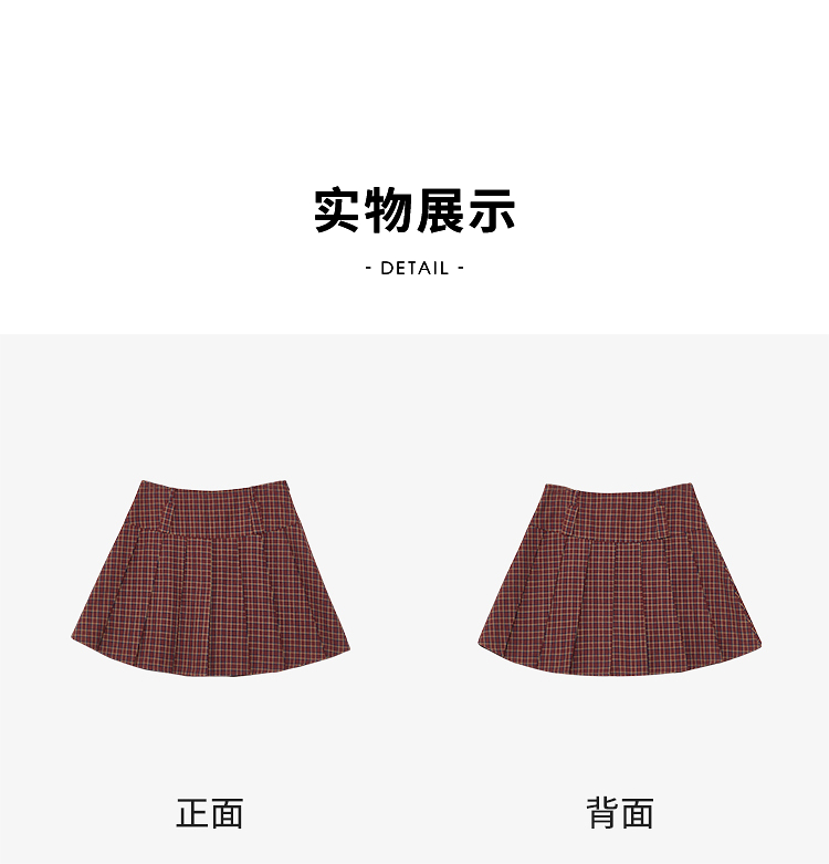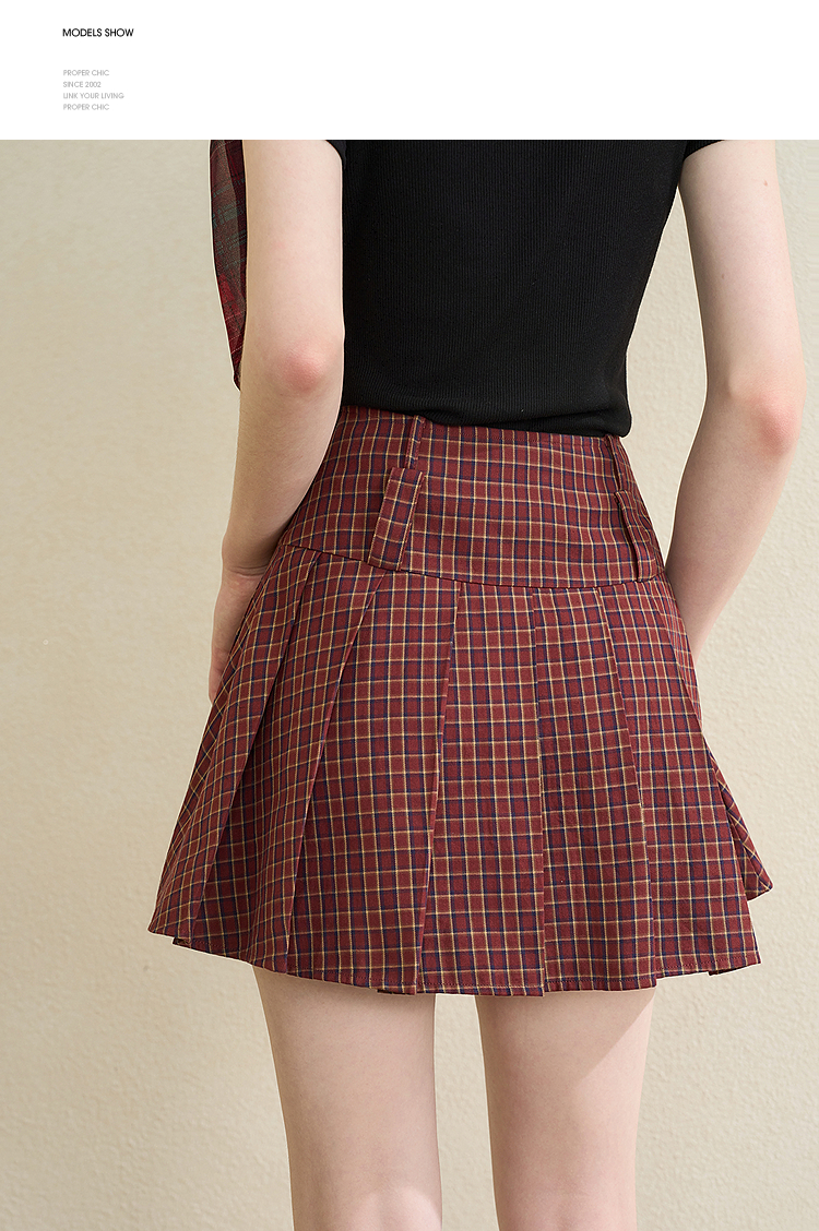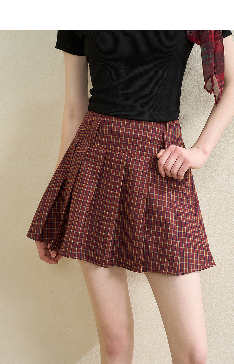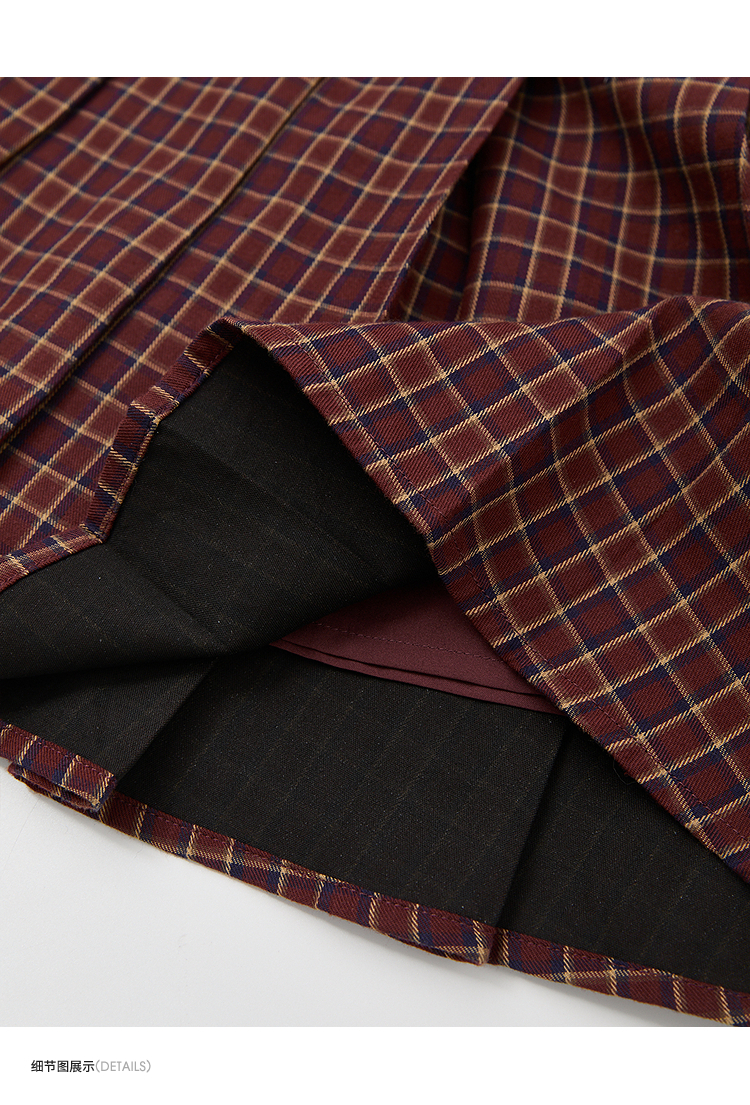 【纯棉】学院风复古红色格纹半身裙女夏季A字百褶裙V0950634
