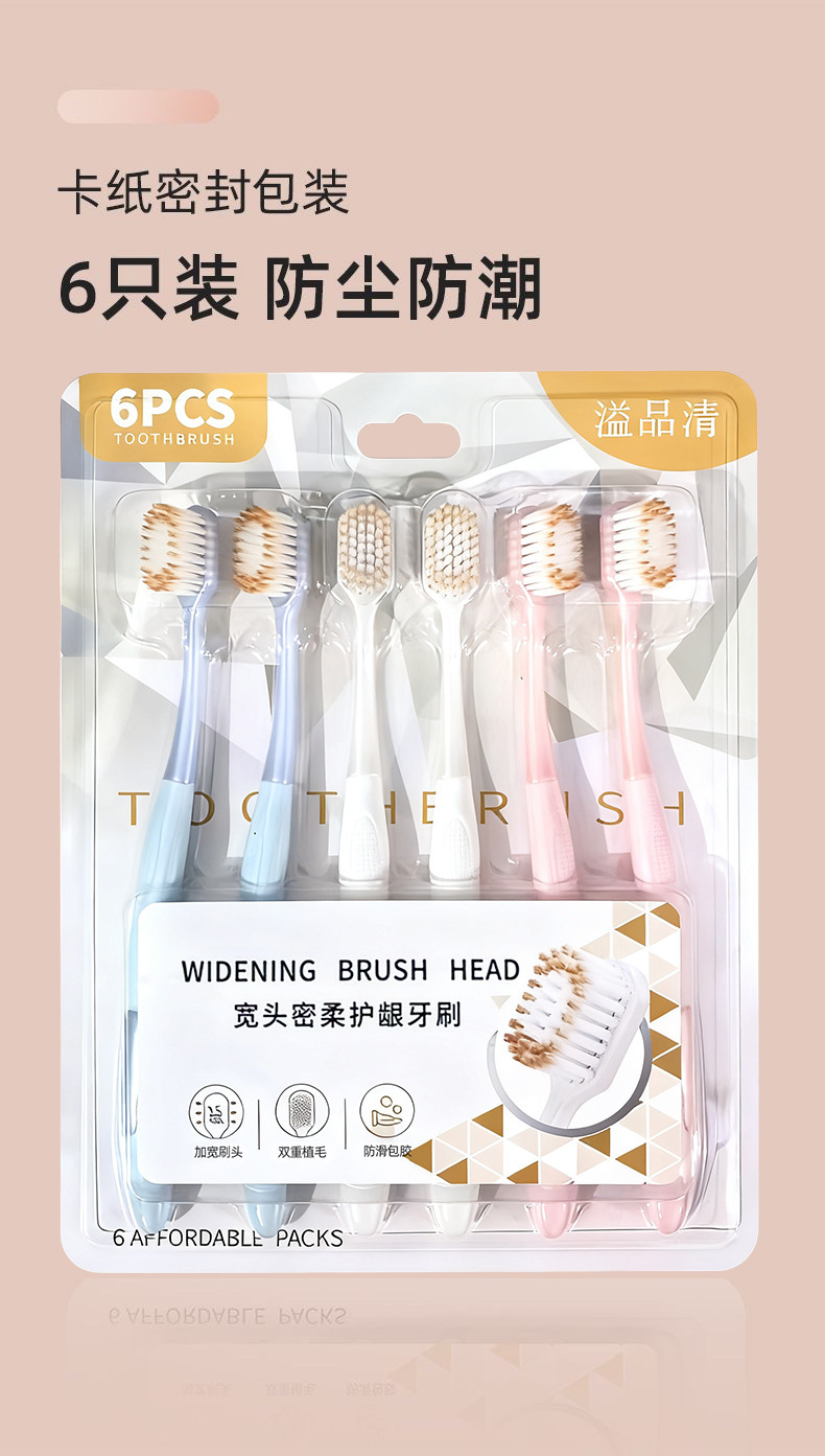 「山姆同款!新款6支装」牙刷软毛成人细软宽头旅行家庭装家用男士女士用口腔护理