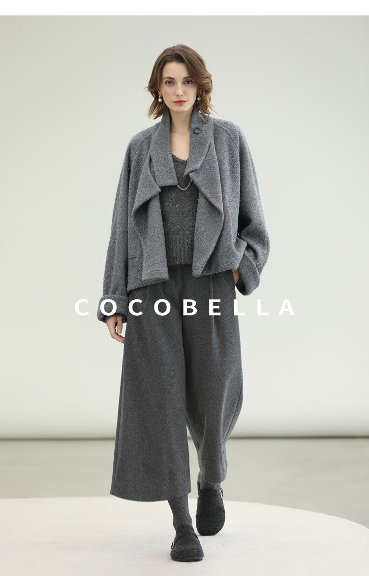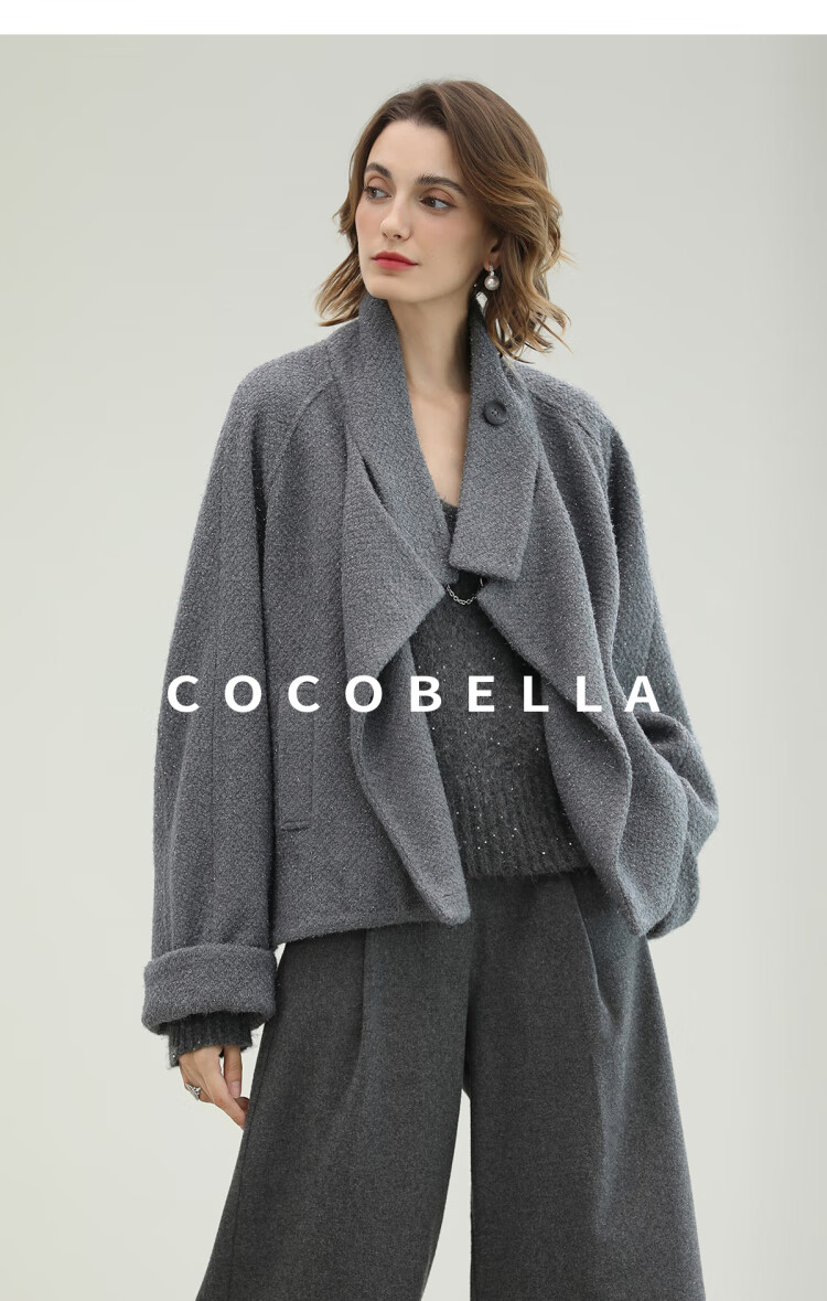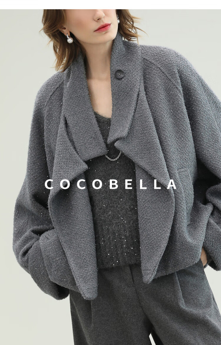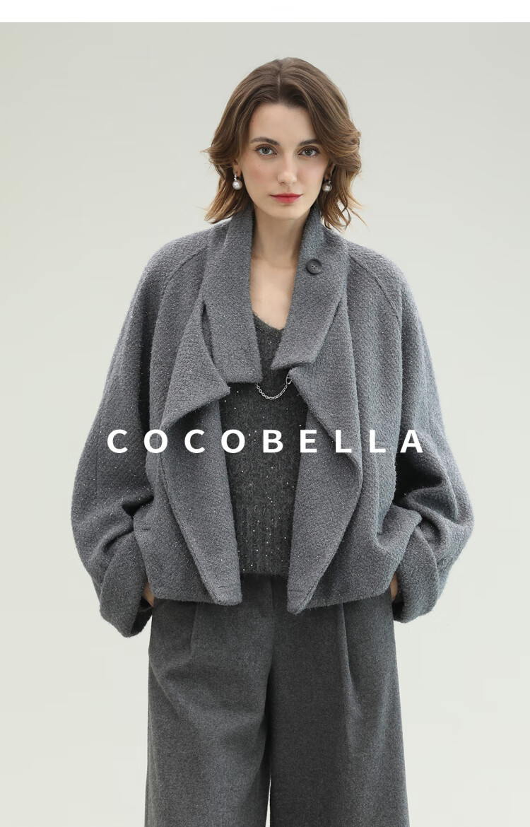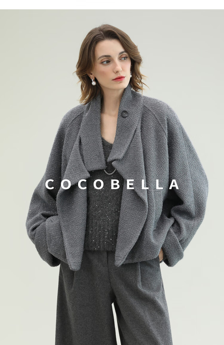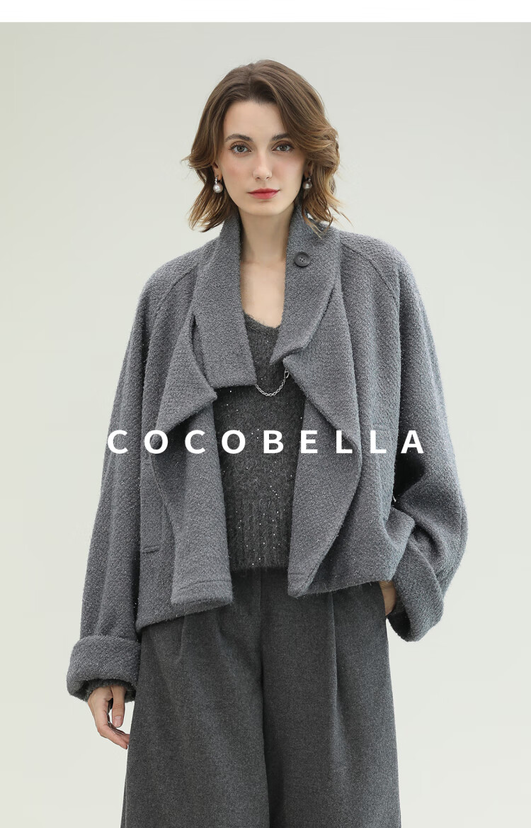 COCOBELLA气质灰短款休闲羊毛大衣25冬新款毛呢外套WL3203-2
