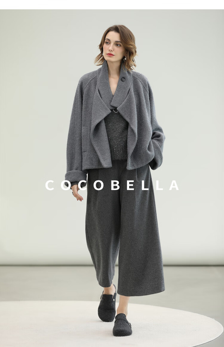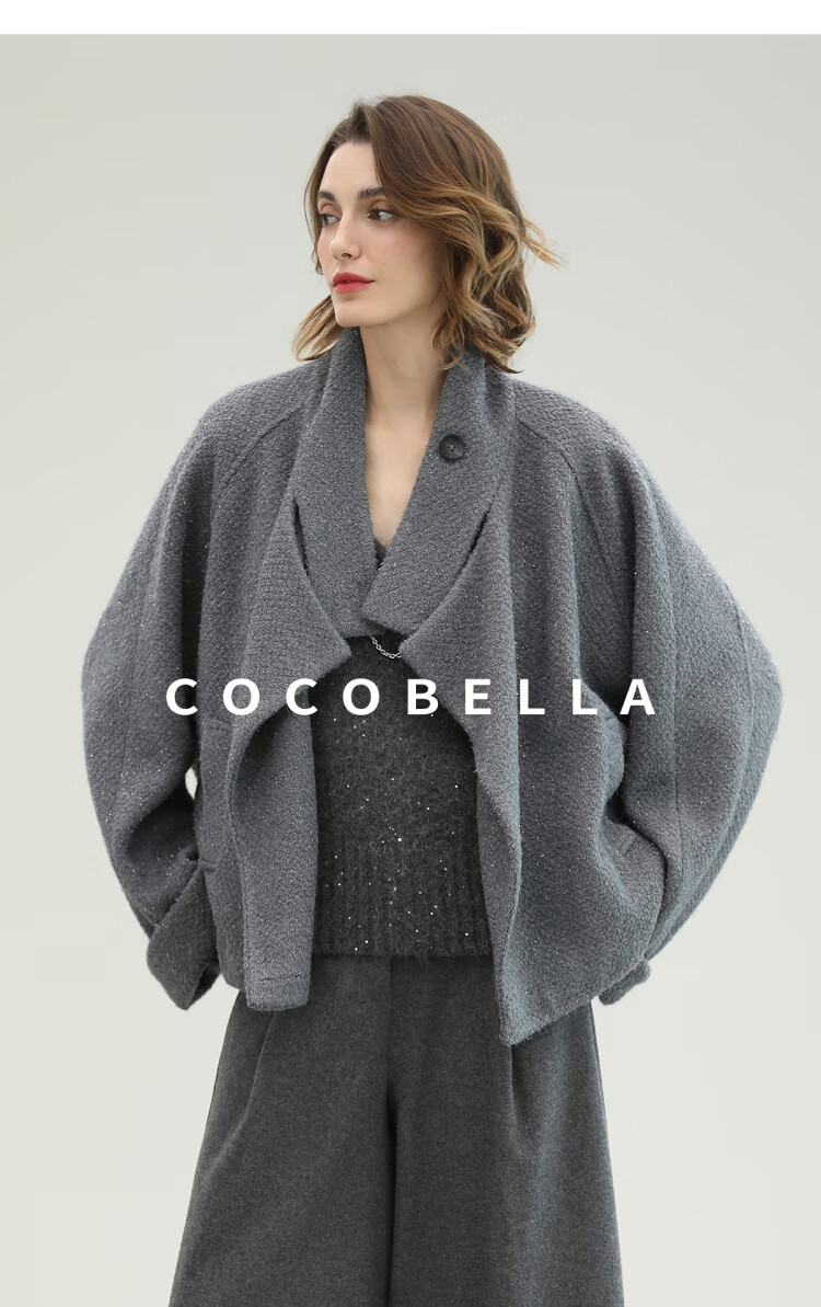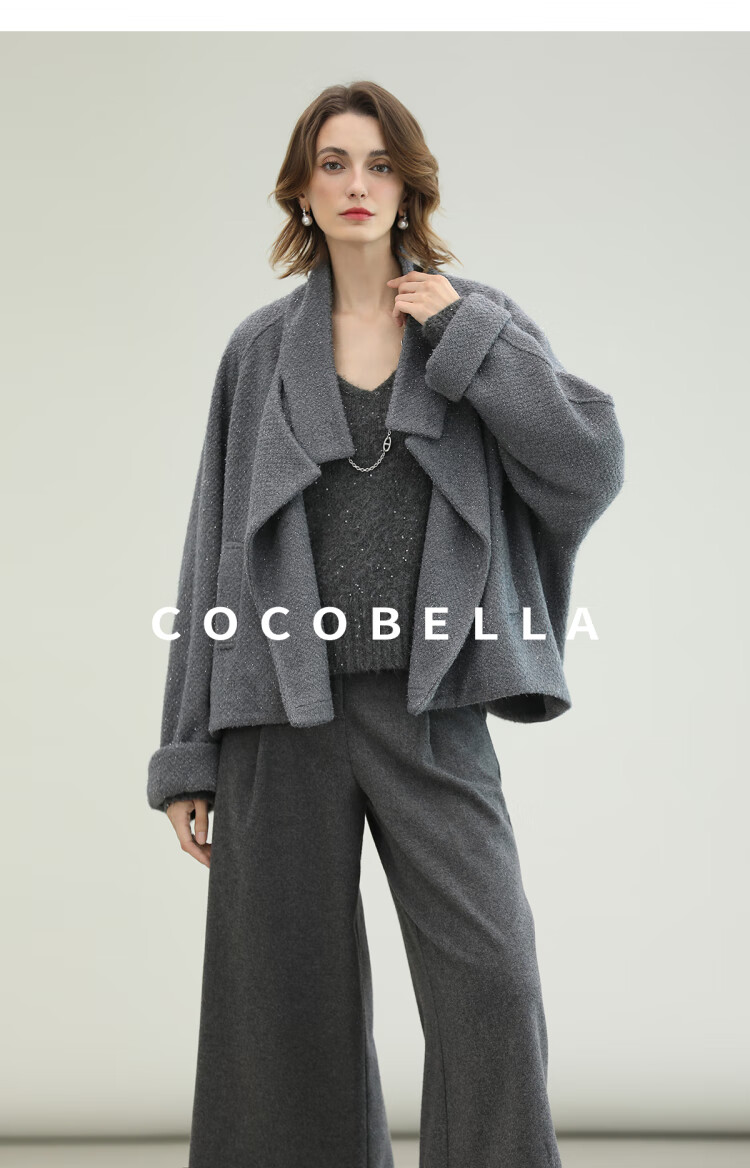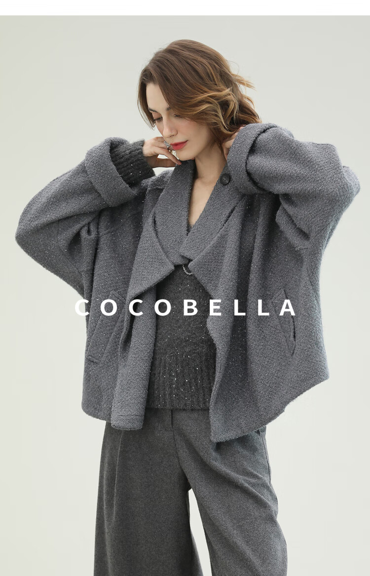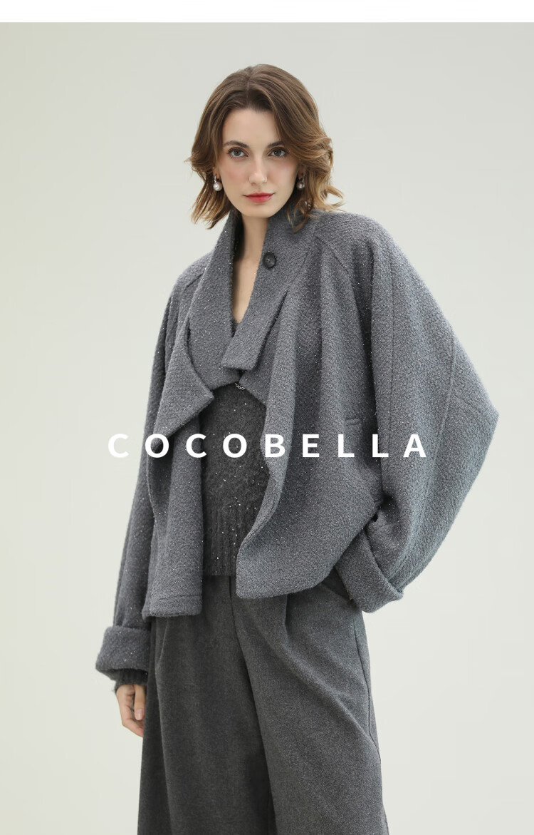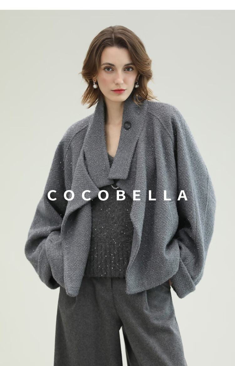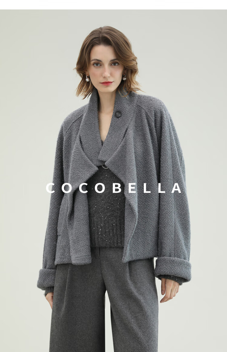 COCOBELLA气质灰短款休闲羊毛大衣25冬新款毛呢外套WL3203-2