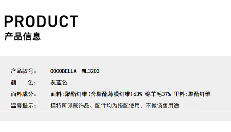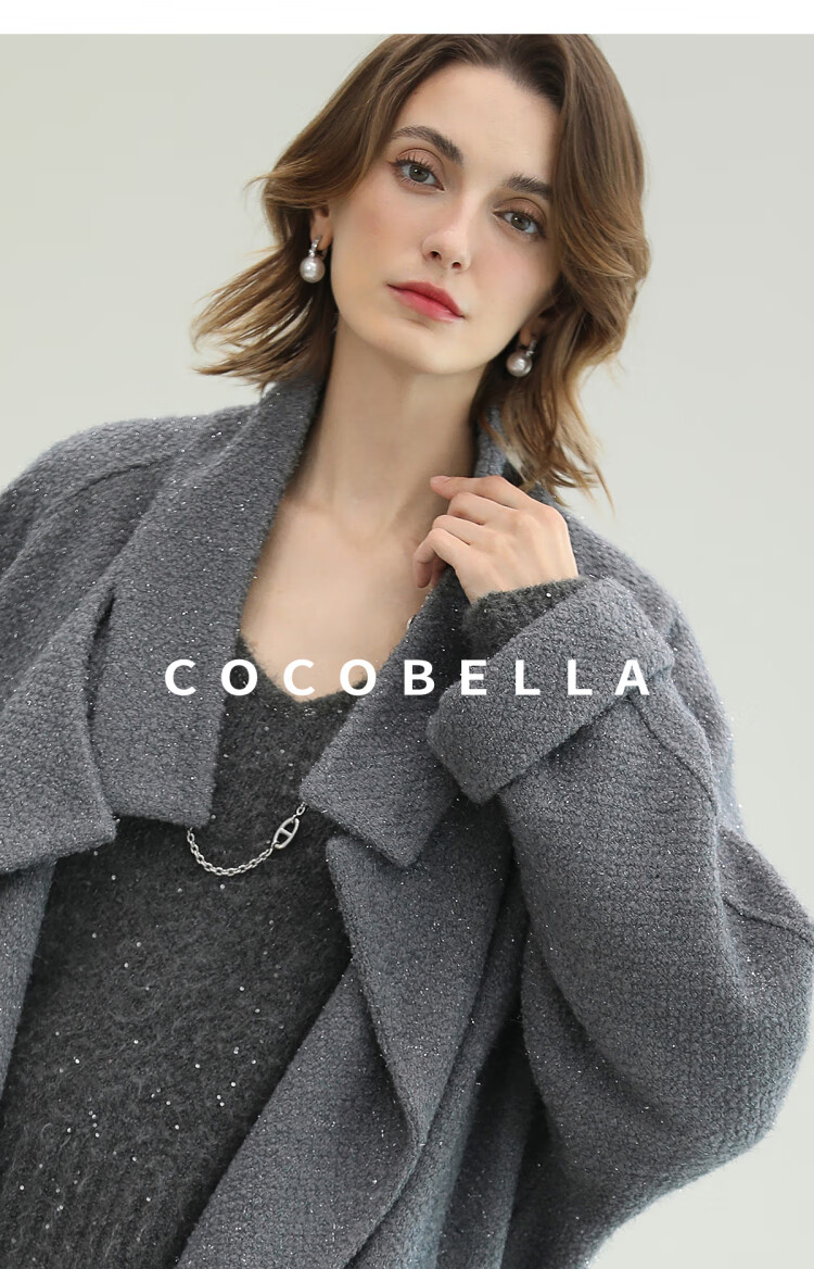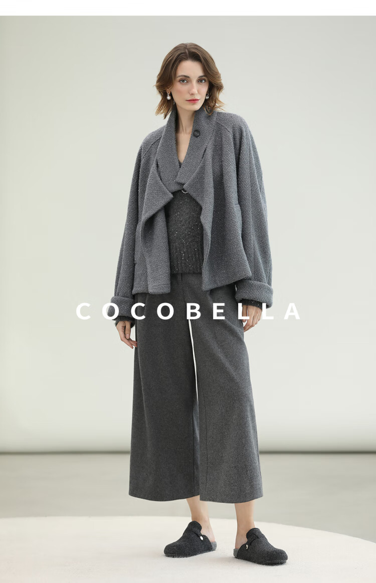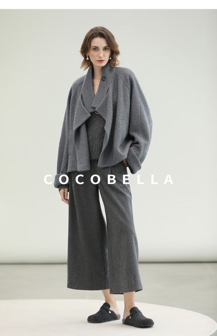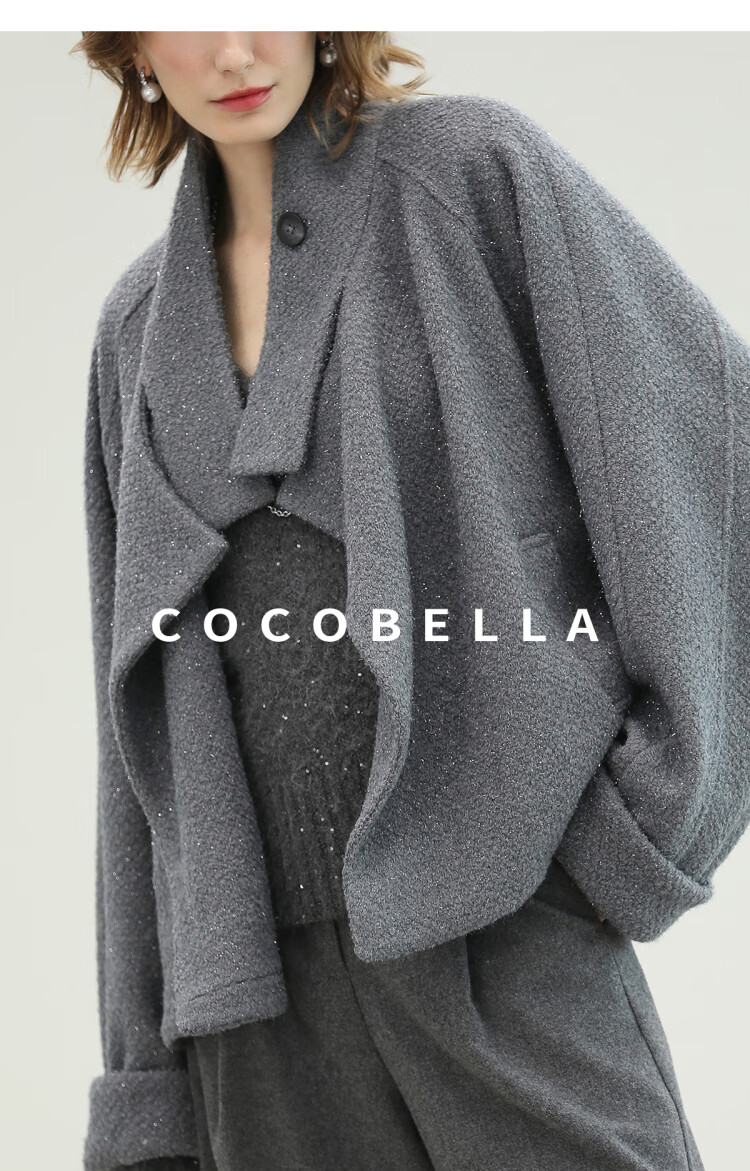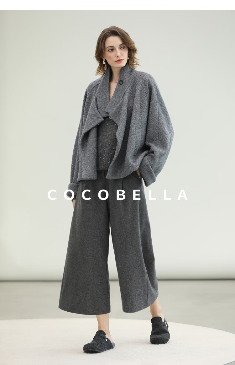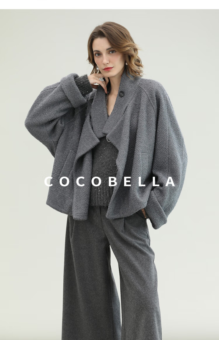COCOBELLA气质灰短款休闲羊毛大衣25冬新款毛呢外套WL3203-2
