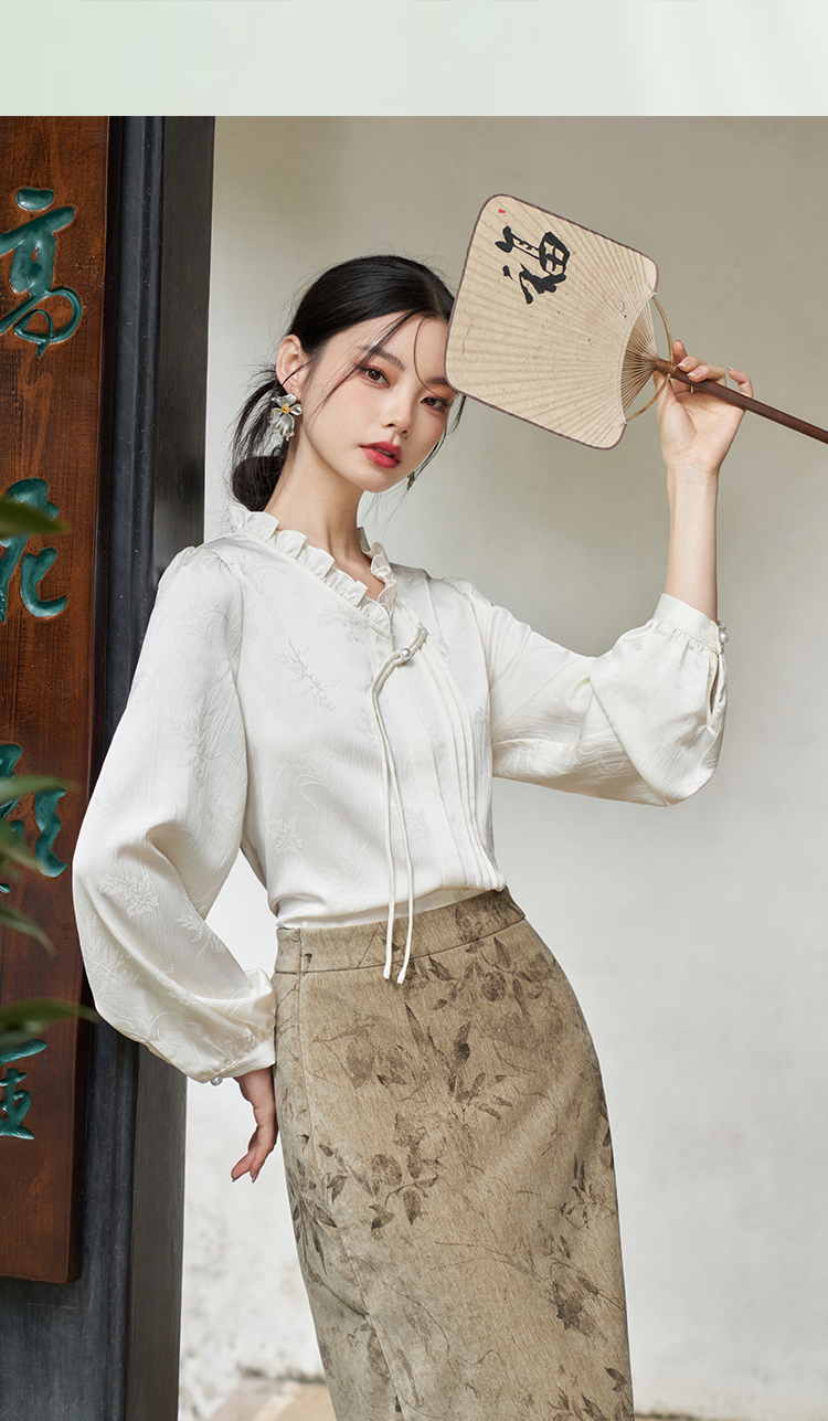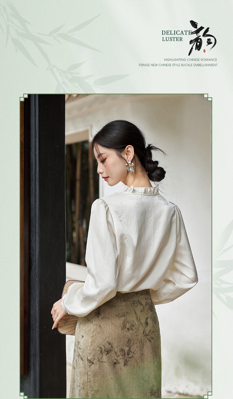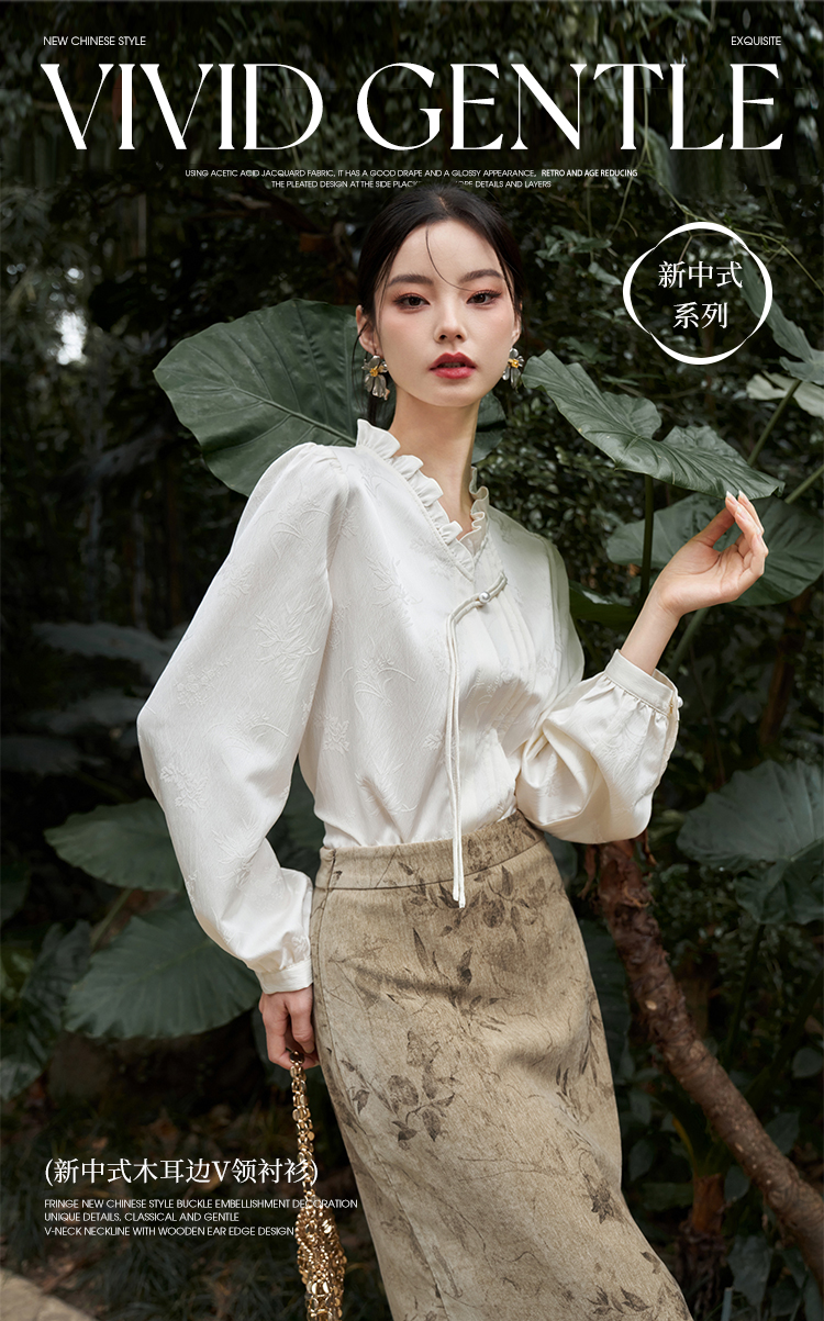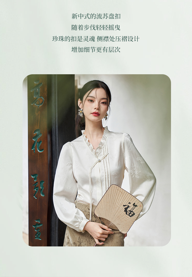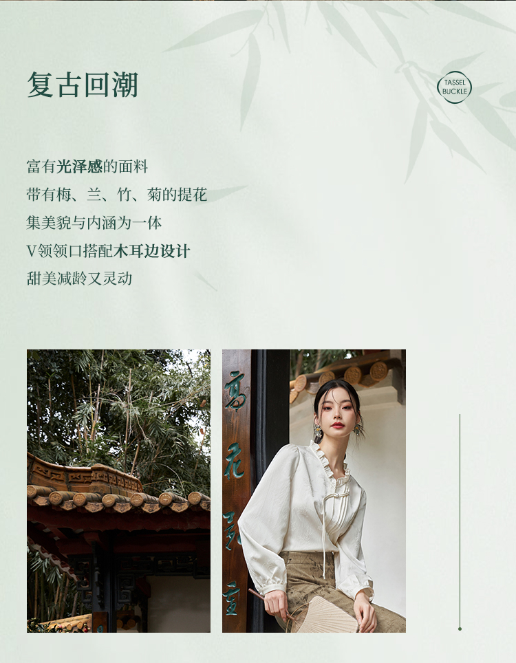 新中式国风古典垂感衬衫女新款流苏盘扣木耳边衬衣V0040956/V0240060
