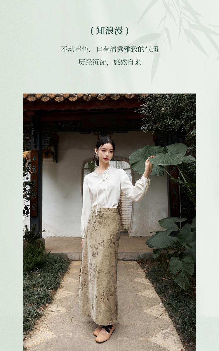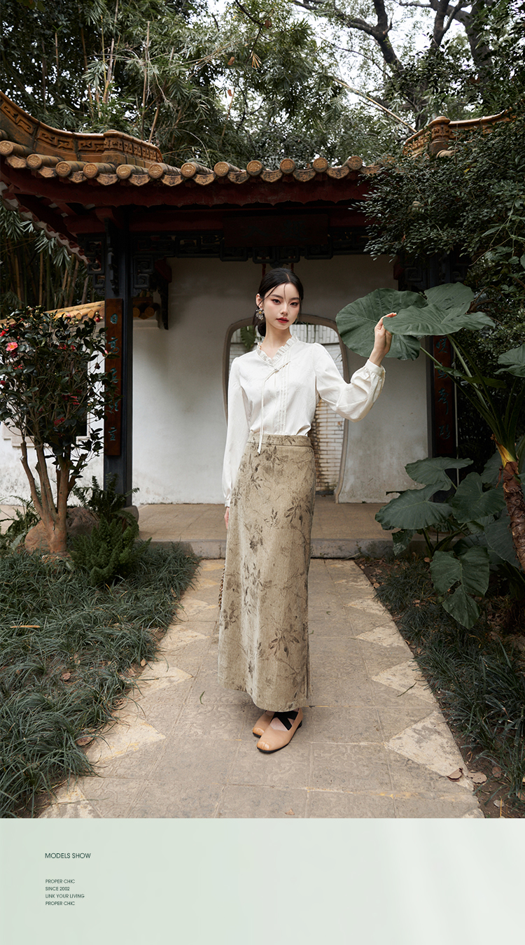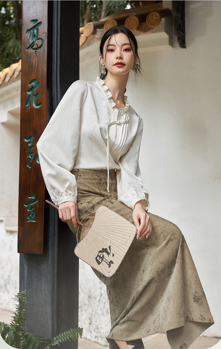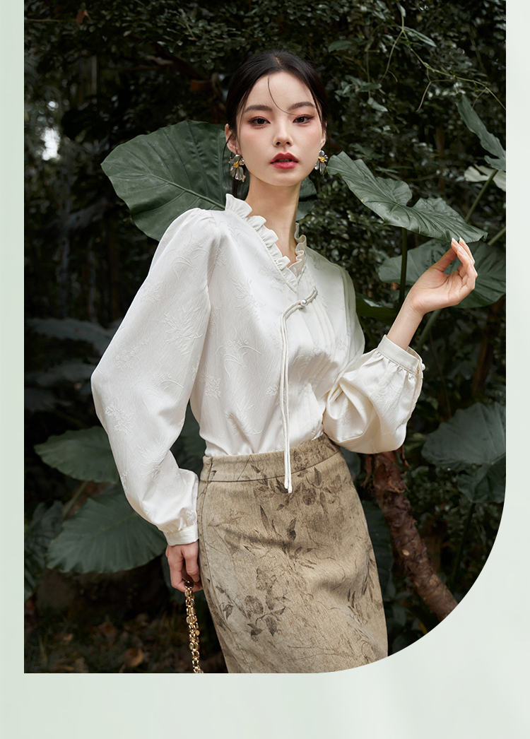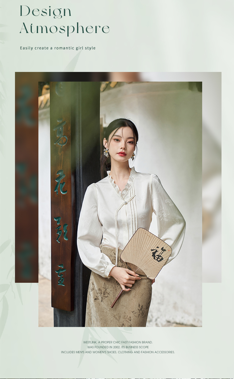 新中式国风古典垂感衬衫女新款流苏盘扣木耳边衬衣V0040956/V0240060