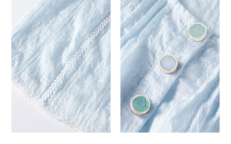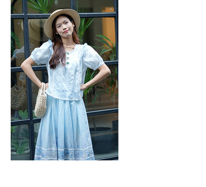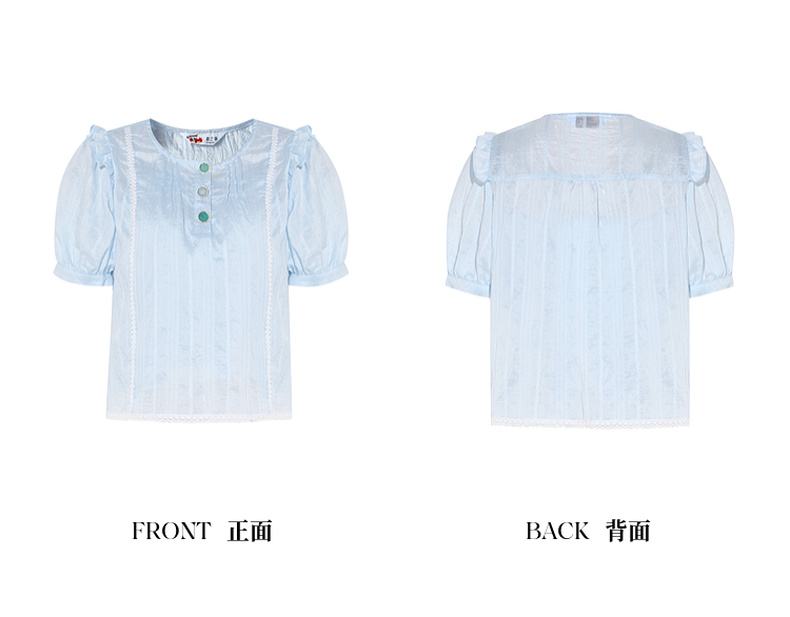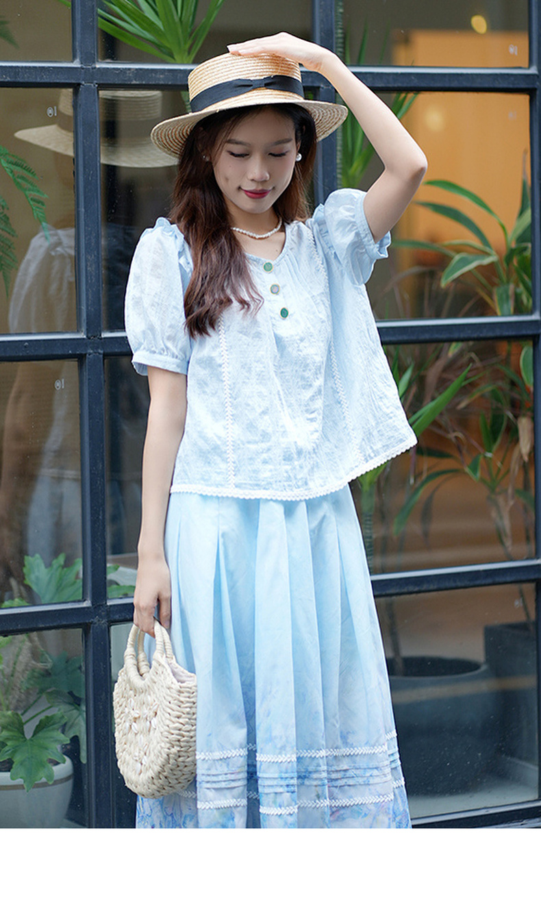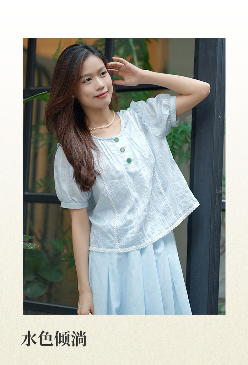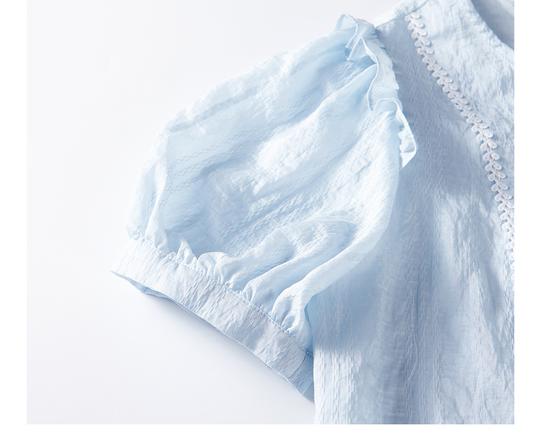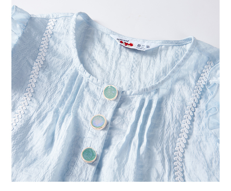 水色倾淌新款织带拼接荷叶边两件套衬衫女