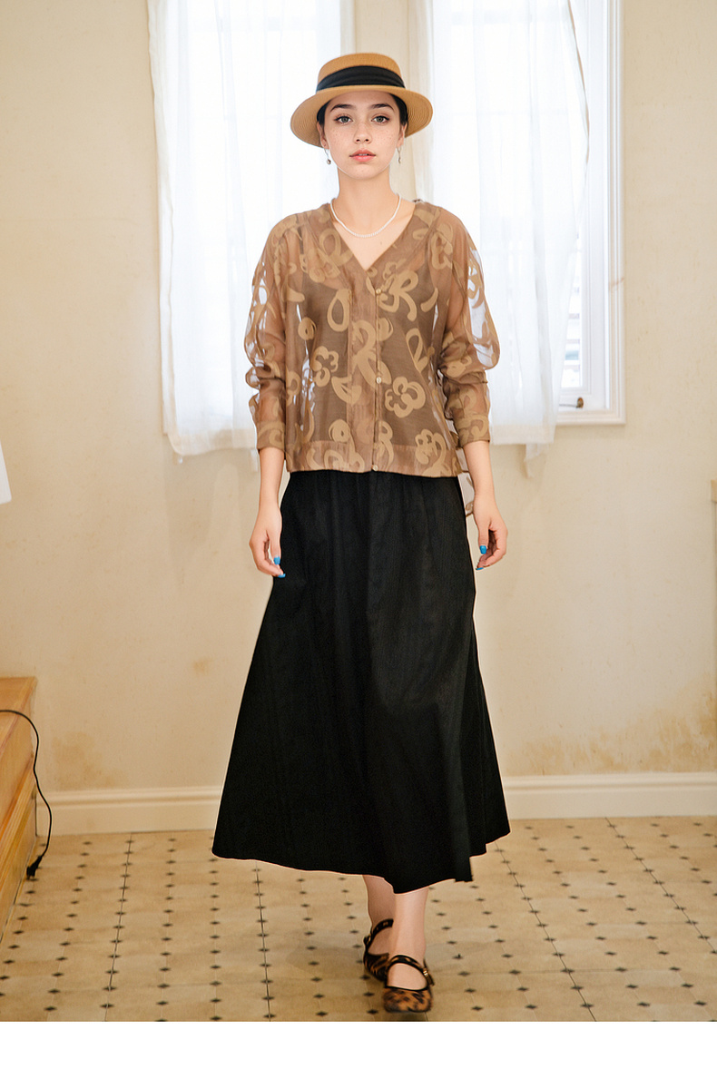 谜底简约半身裙2025秋季新款通勤百搭高腰大摆型长半裙257MB7768