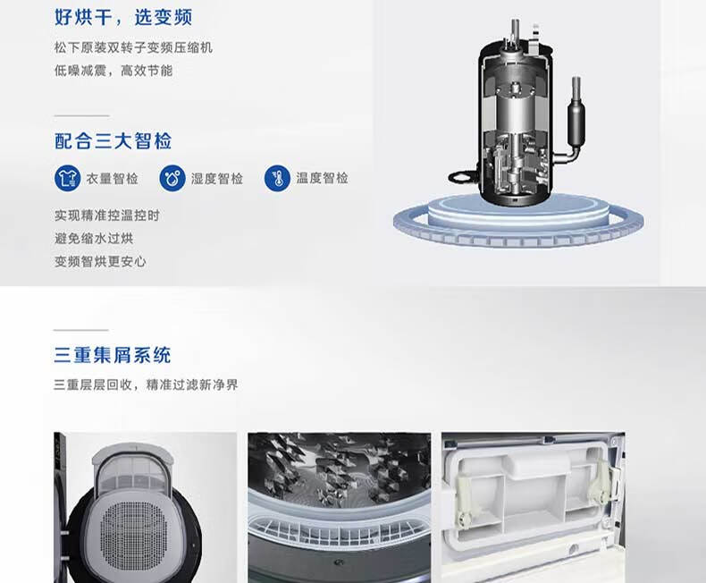 松下全自动烘干机变频热泵烘干机 空净级线屑收集器NH-ER195
