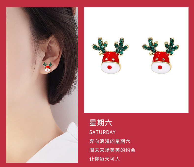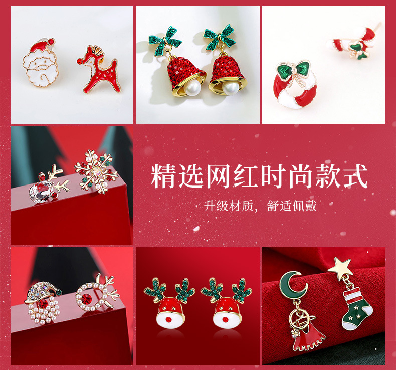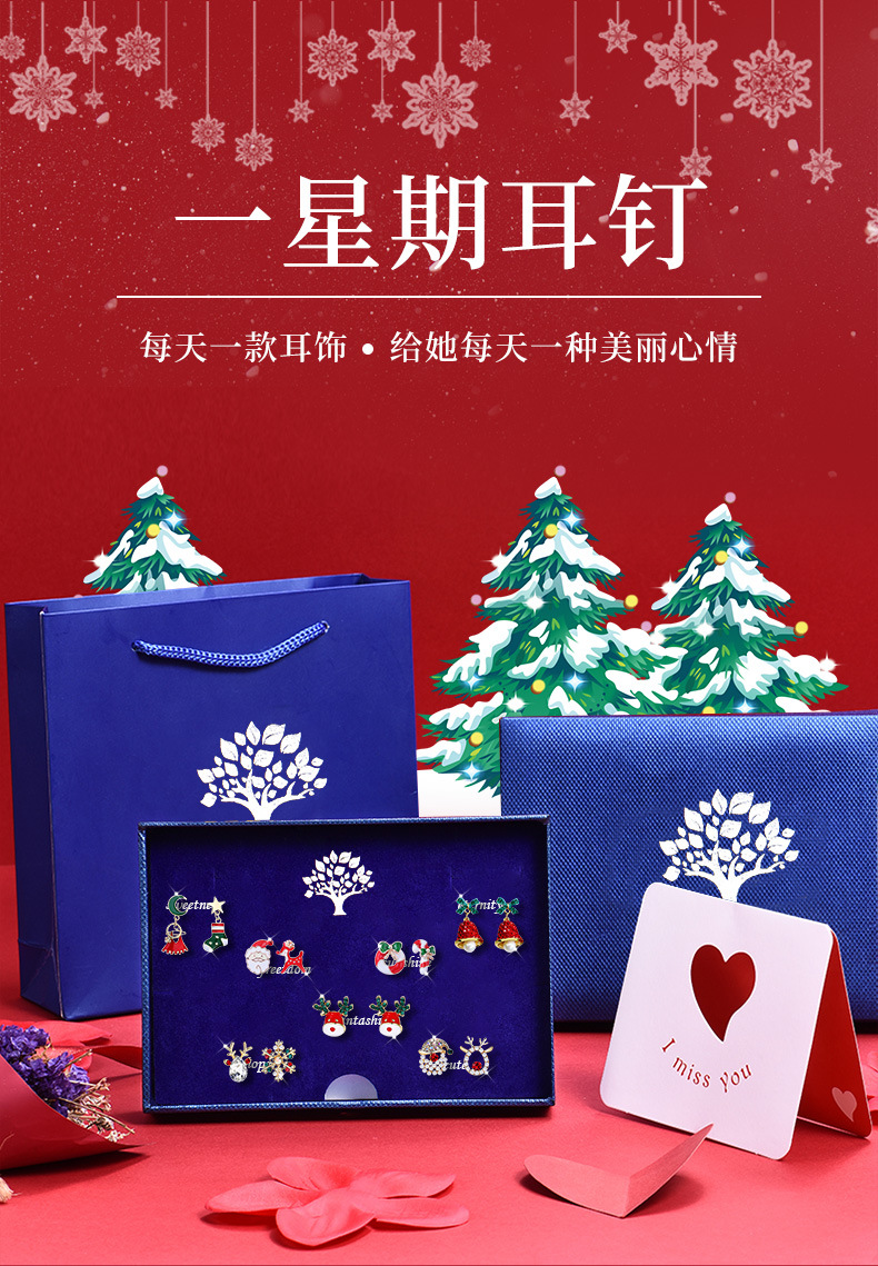 【现货现发】六鑫珠宝礼盒可爱卡通圣诞耳钉套装 S925银针