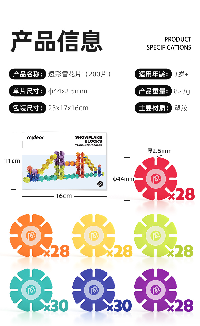 弥鹿mideer MD1212 透彩雪花片-200pcs